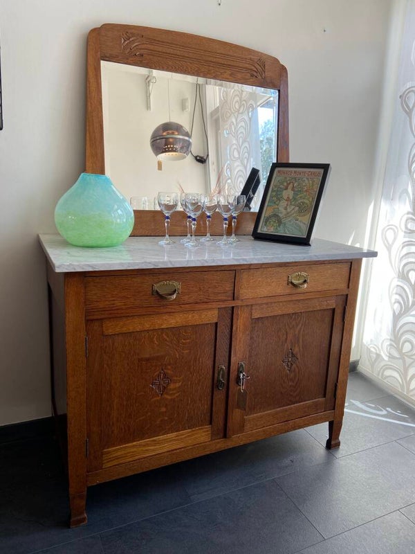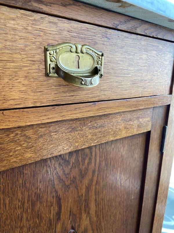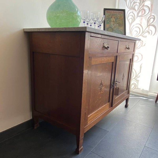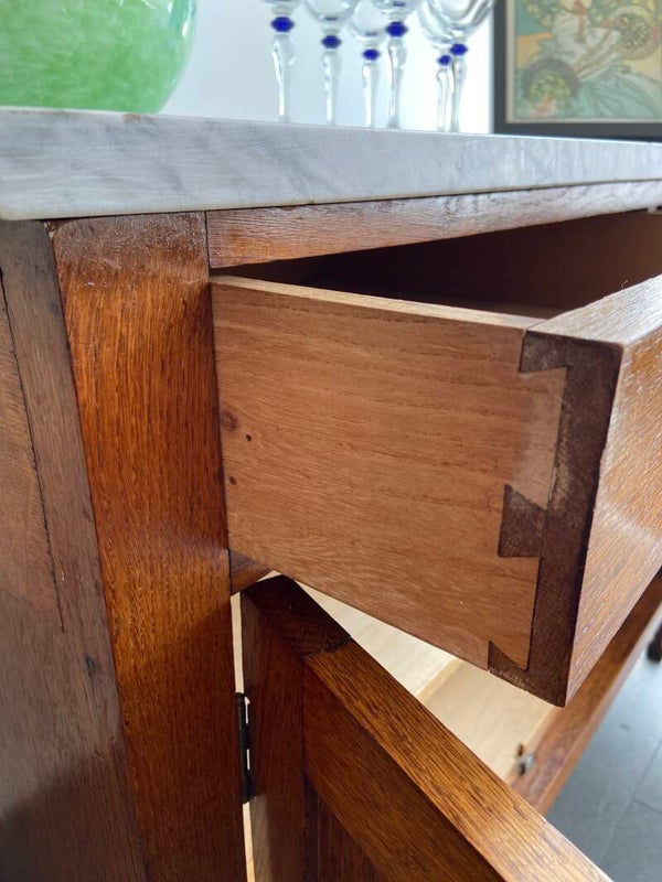 Vintage eiken commode met marmeren blad