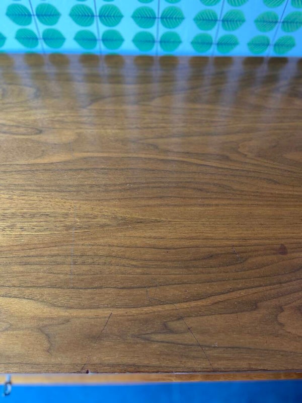 Geweldig dressoir van warm walnoot fineer in een lekker groot formaat. Het dressoir heeft 4 laden, een dubbele kast met legplank in het midden en rechts een enkele kast met plank. De deuren zijn afsluitbaar met de originele sleutels. De kast verkeert in een hele mooie staat en heeft minimale gebruikssporen, passend bij de leeftijd. Let ook op de mooie handgrepen op de laden! De kast heeft wat oppervlakkige krasjes op het bovenblad. De rechter kast heeft aan de binnenzijde wat gebruikssporen. Linksonder aan de hoek is een minimale fineerschade zichtbaar en de laden hebben een vilten bekleding die slijtage heeft en eruit gehaald/vervangen kan worden. De foto's geven een goed beeld en vormen onderdeel van de beschrijving.