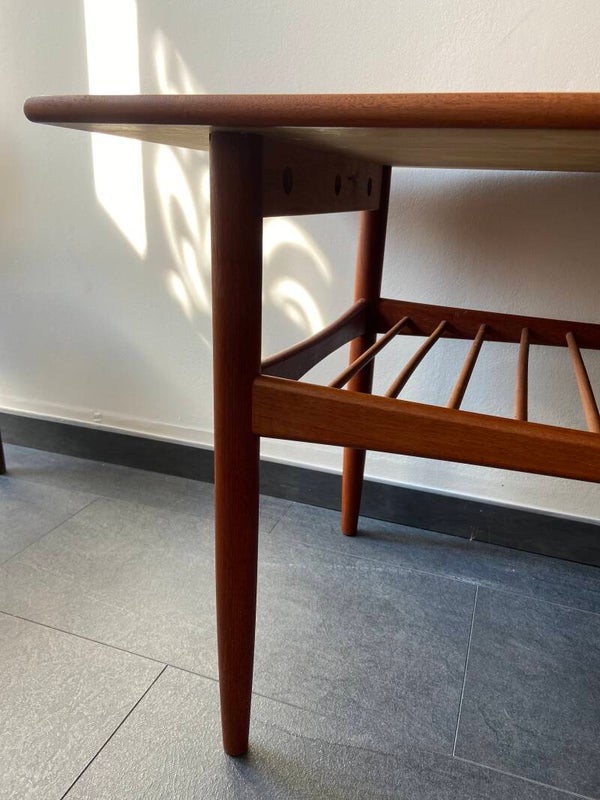 Vintage koffie-/salontafel van teakhout met tijdschriftenrek