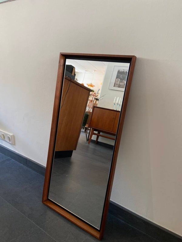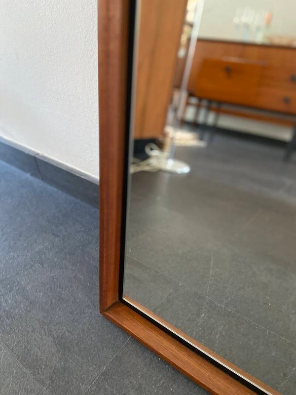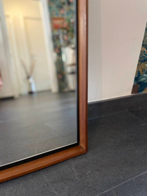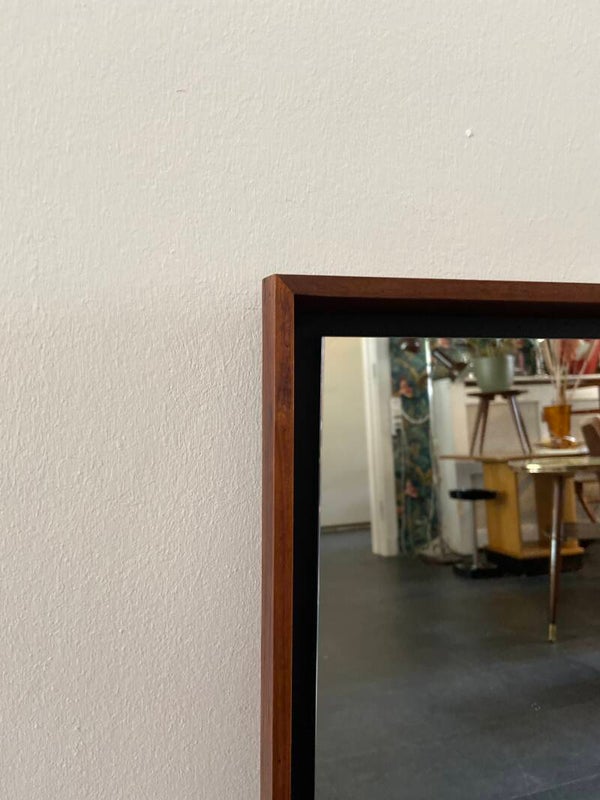 Vintage Deense spiegel in Teakhouten lijst met reliëfrand en zwarte rand