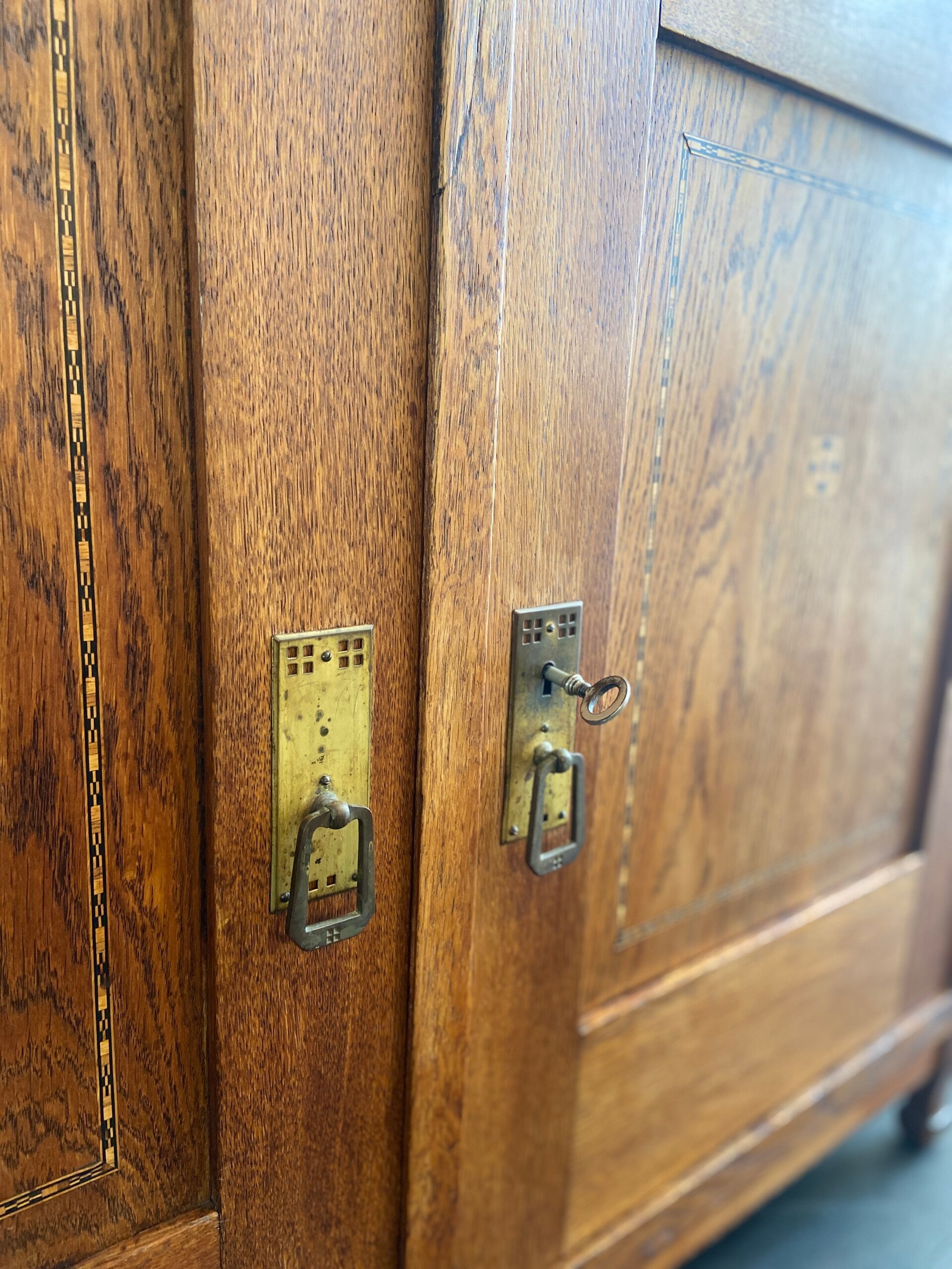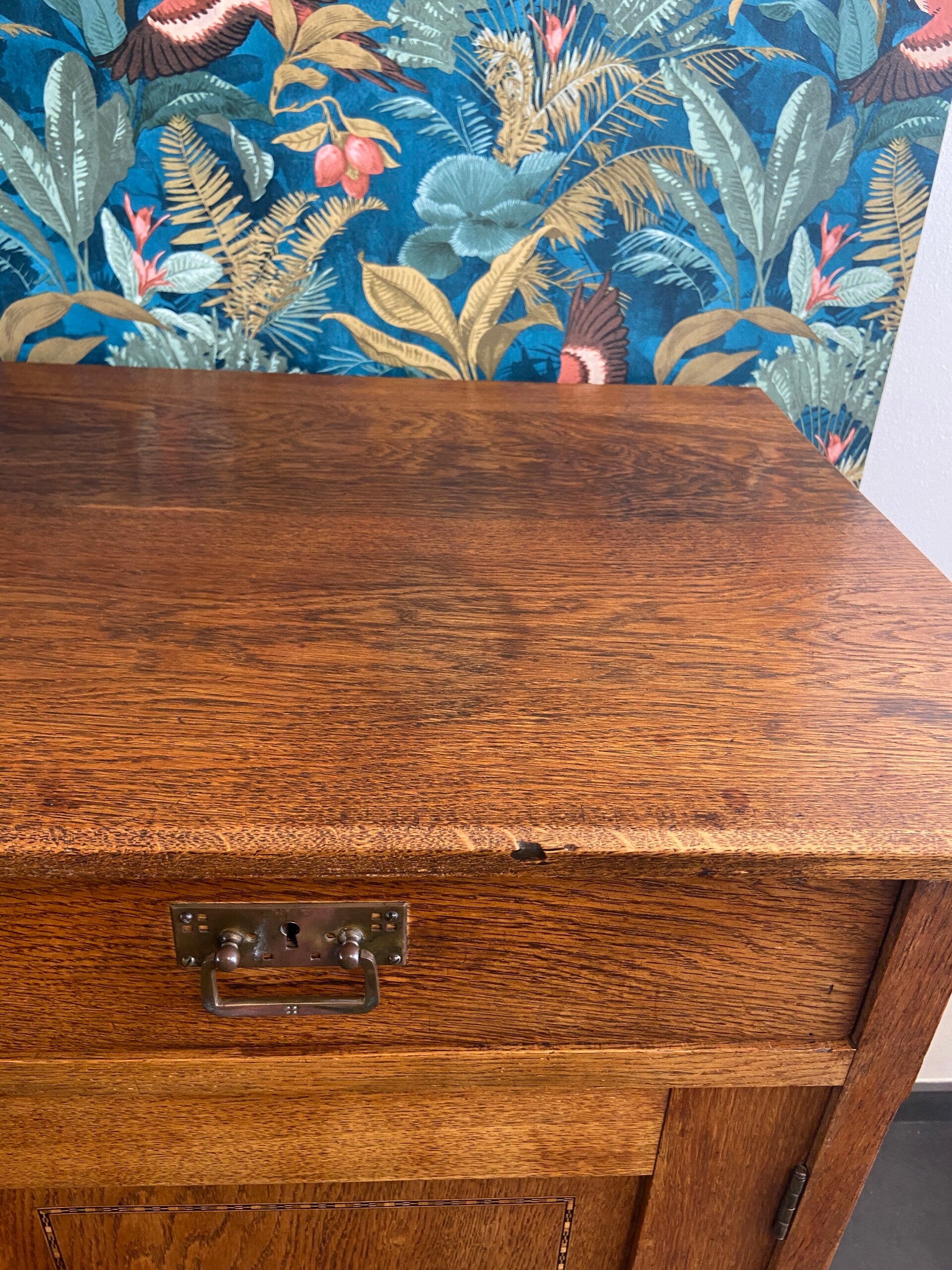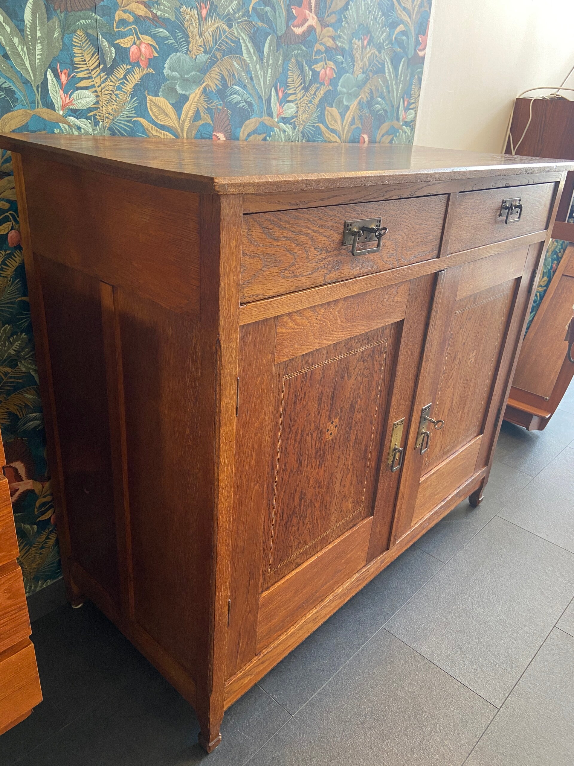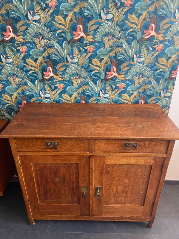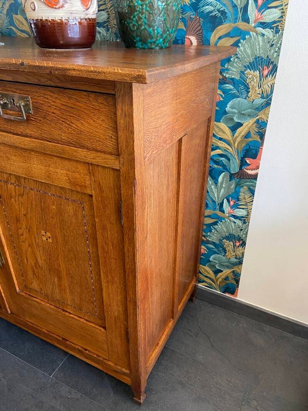 Vintage eiken commode/dressoir met ingelegd hout