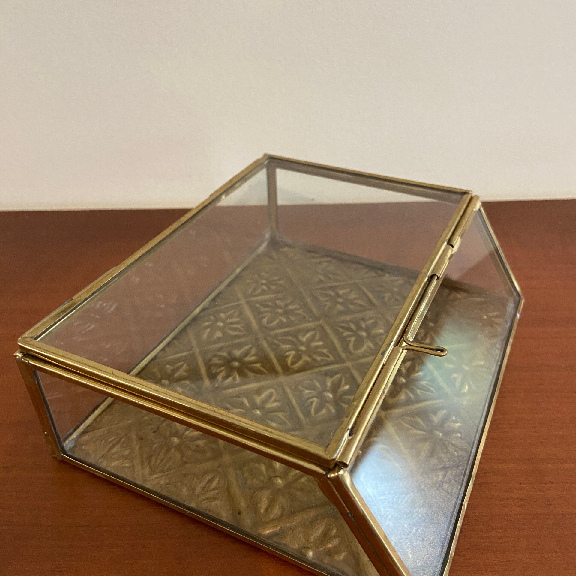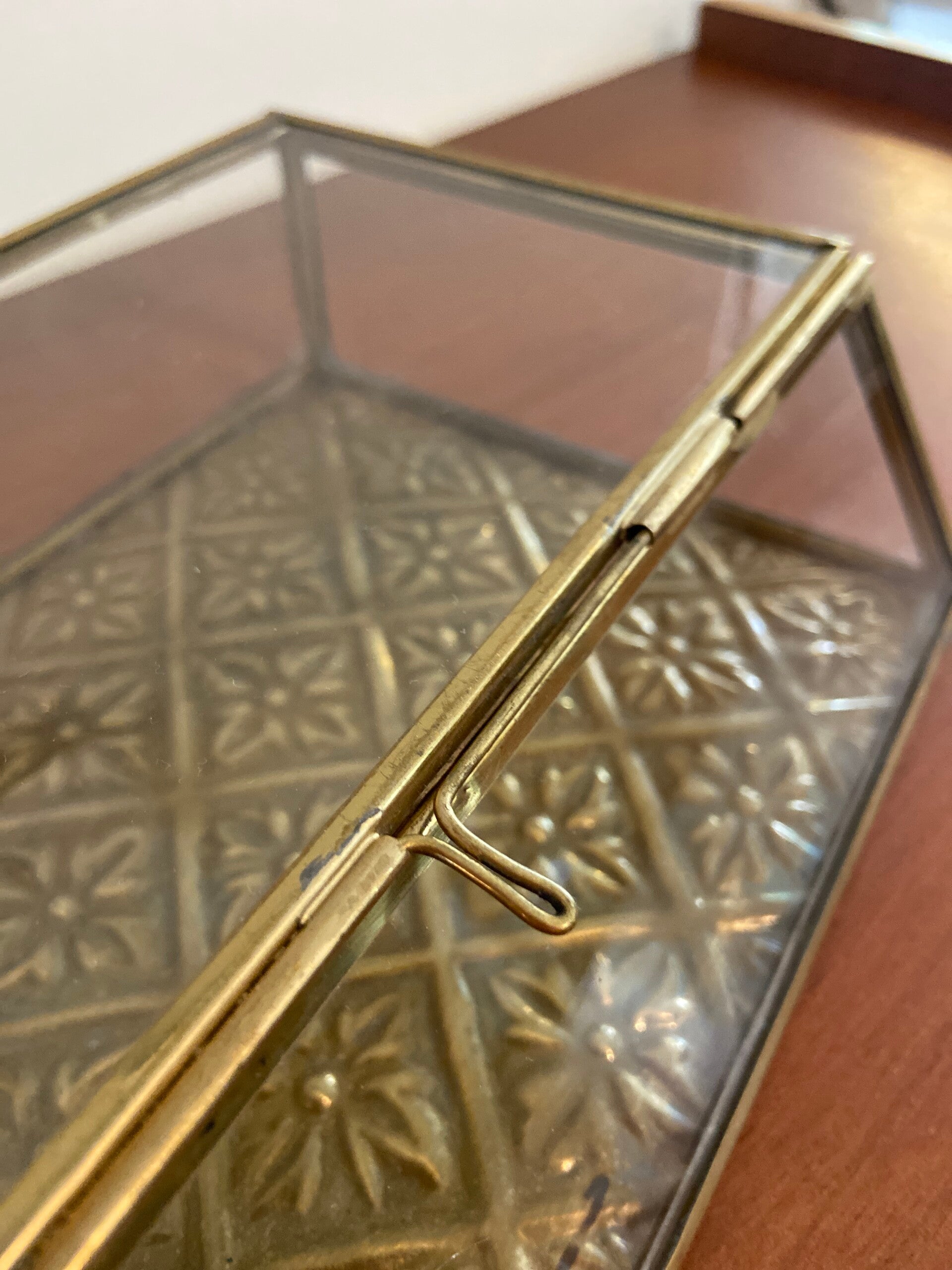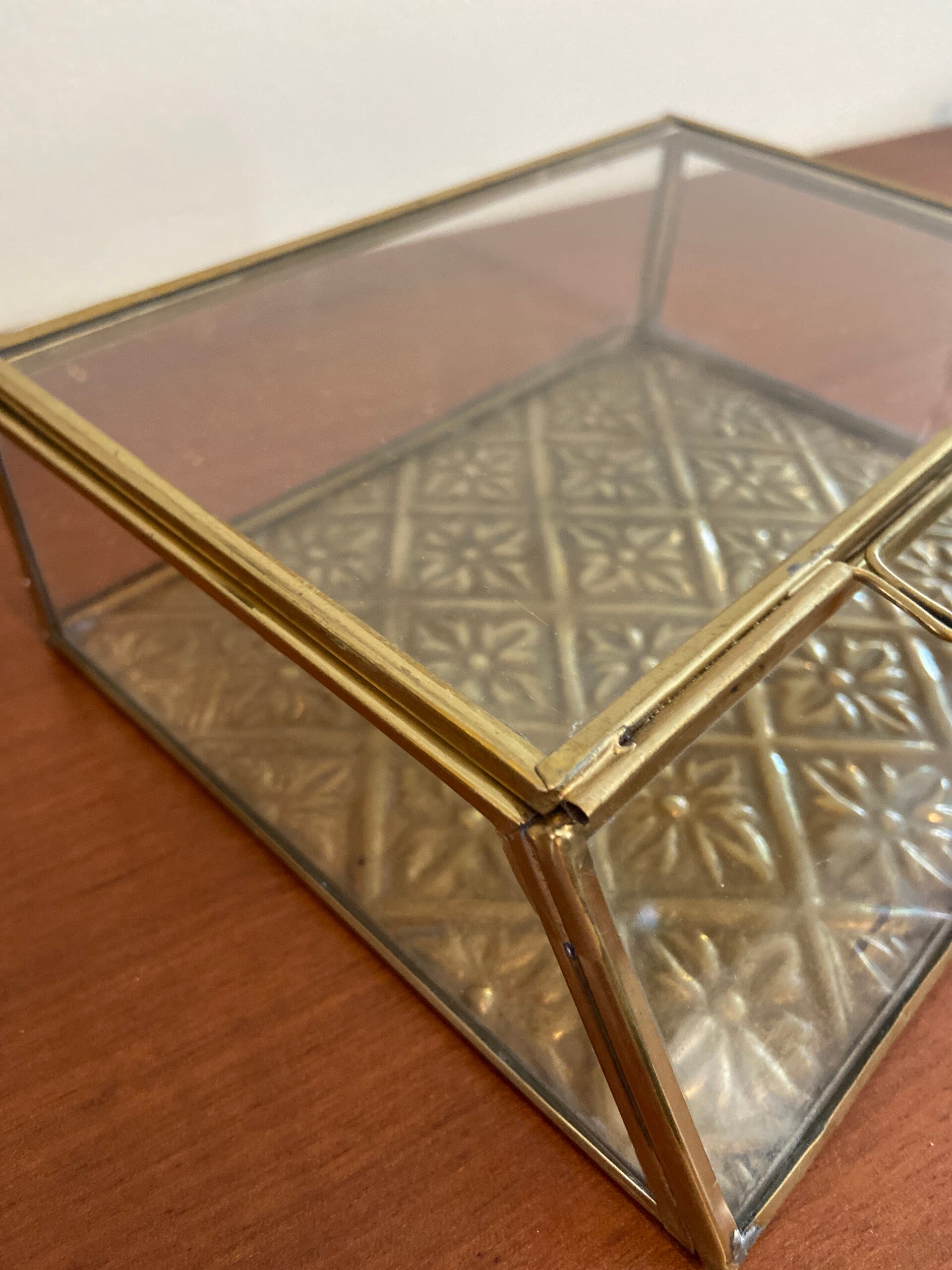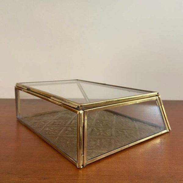 Vintage sieradendoos van glas en messing