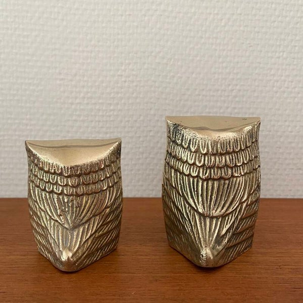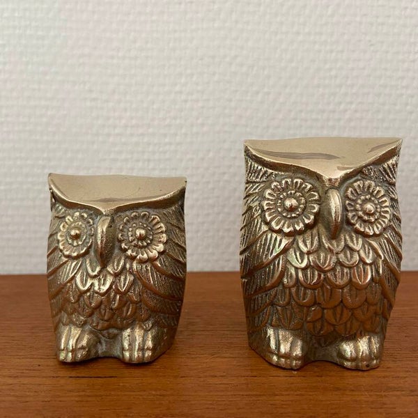 Mooie set van 2 vintage messing uiltjes die steeds moeilijker te vinden zijn. De set verkeert in goede staat en weegt samen maar liefst 380 gram.