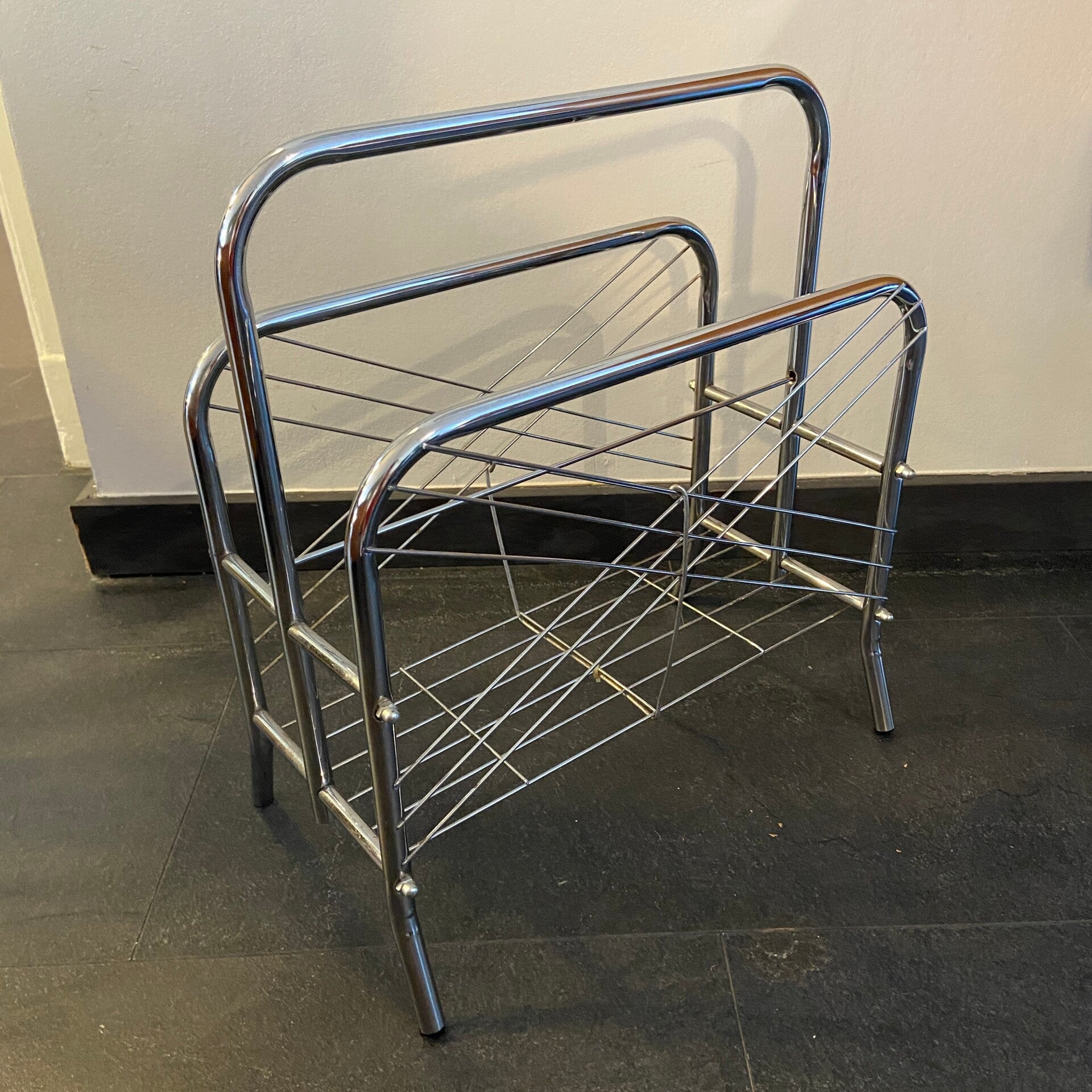 Leuke lectuurbak van chroom. Het chroom is in goede staat. Een poot mist het zwarte vloerdopje. In het midden van de bodem zijn de onderdelen extra vastgezet; zie hiervoor de foto's.