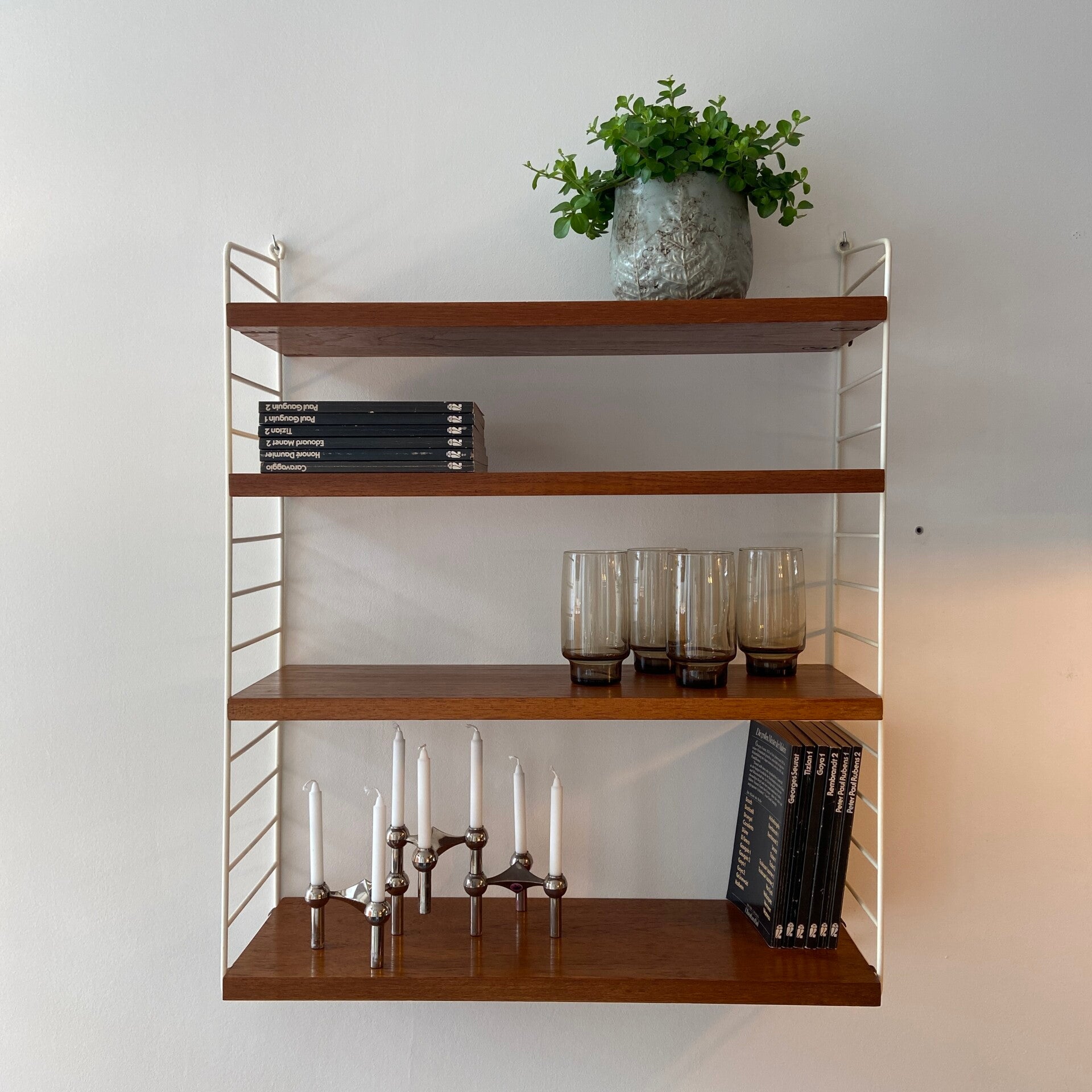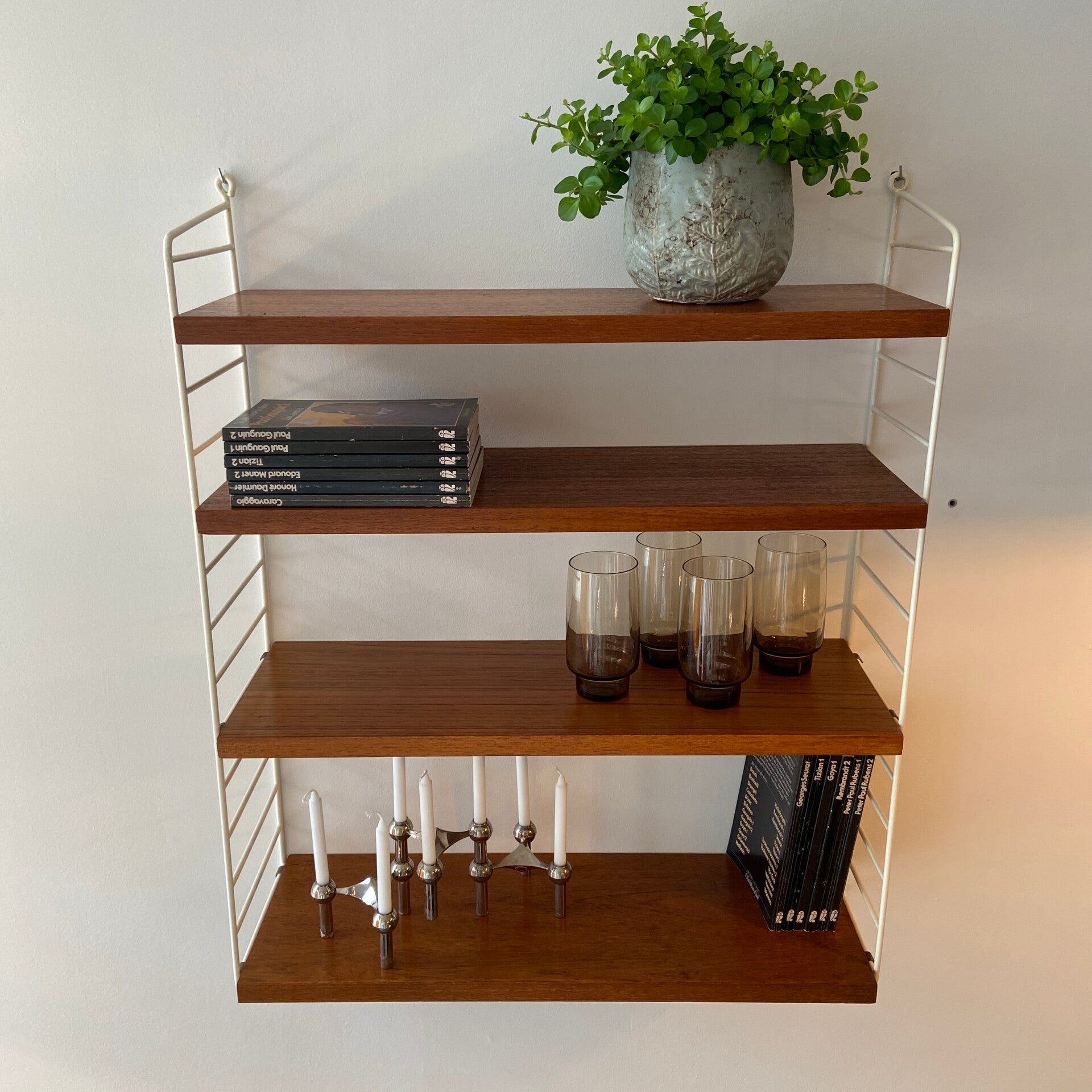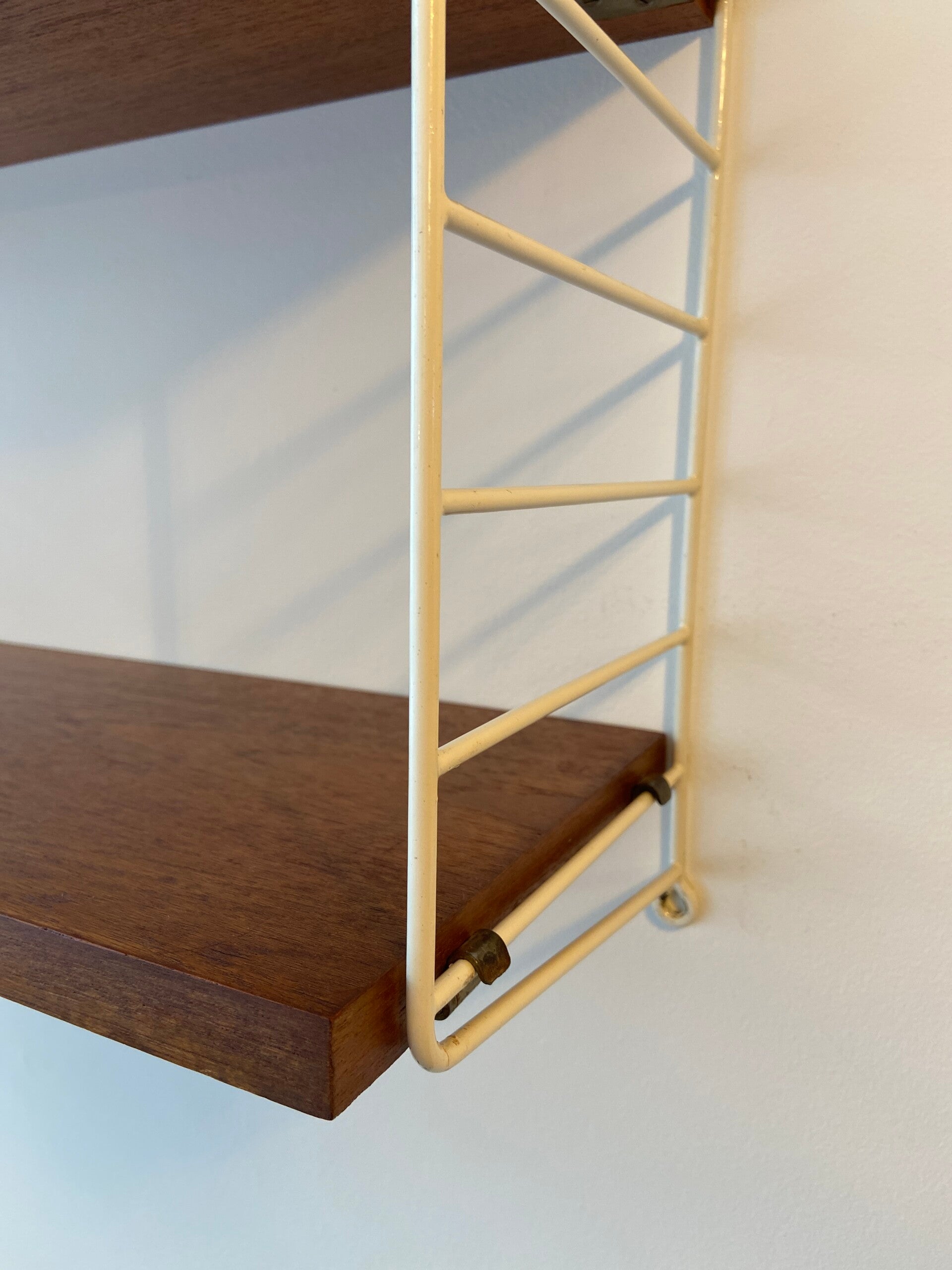 Strak wandrek van Nisse Strinning! Het systeem is in 1949 ontworpen door Kajsa en Nissing Strinning voor String design AB (Zweden) en geproduceerd in de jaren ’60, maar past nog steeds in het interieur vandaag de dag! De planken zijn naar eigen inzicht in hoogte verstelbaar. Het systeem verkeert in goede staat met wat kleine gebruikssporen; zie de foto's die onderdeel zijn van de beschrijving.