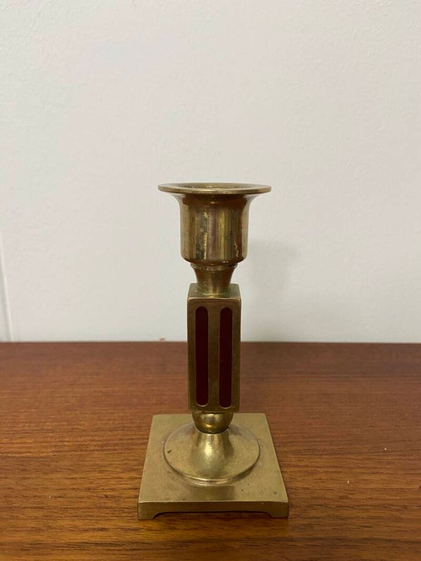 Kandelaar messing met rood gestreepte details