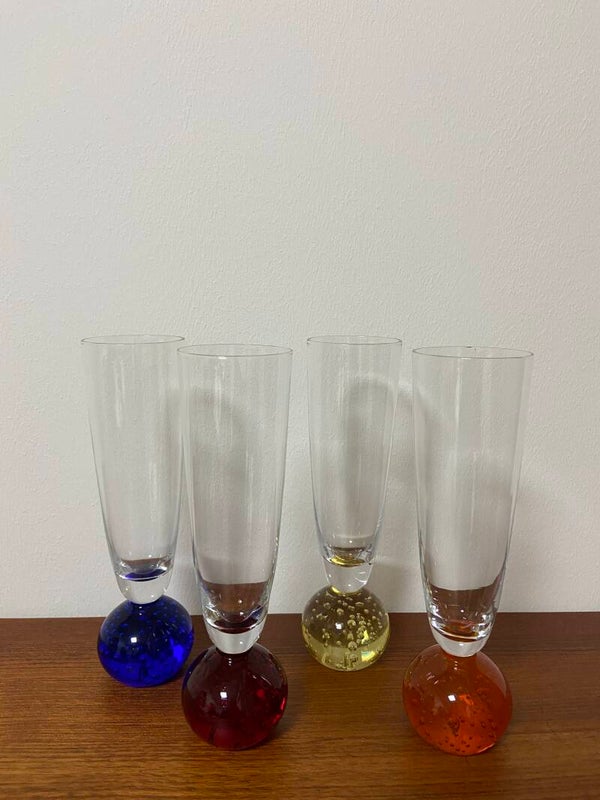 Set van 4 bijzondere Franse champagne flûtes met gekleurde bolvoet