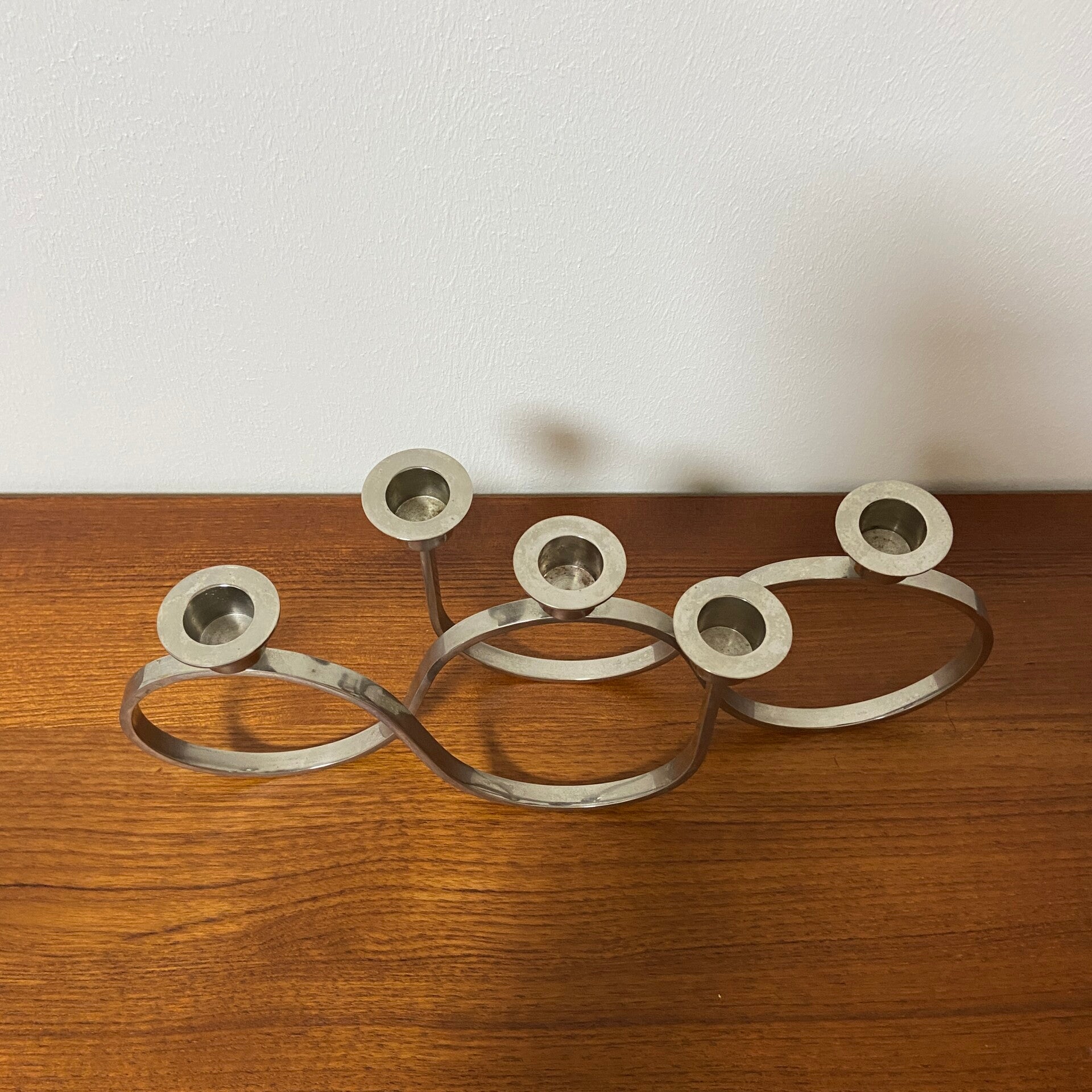 Zeer mooie kaarsenhouder van rvs in een infinity vorm! De kaarsenhouder biedt ruimte aan 5 kaarsen. In zeer goede staat.