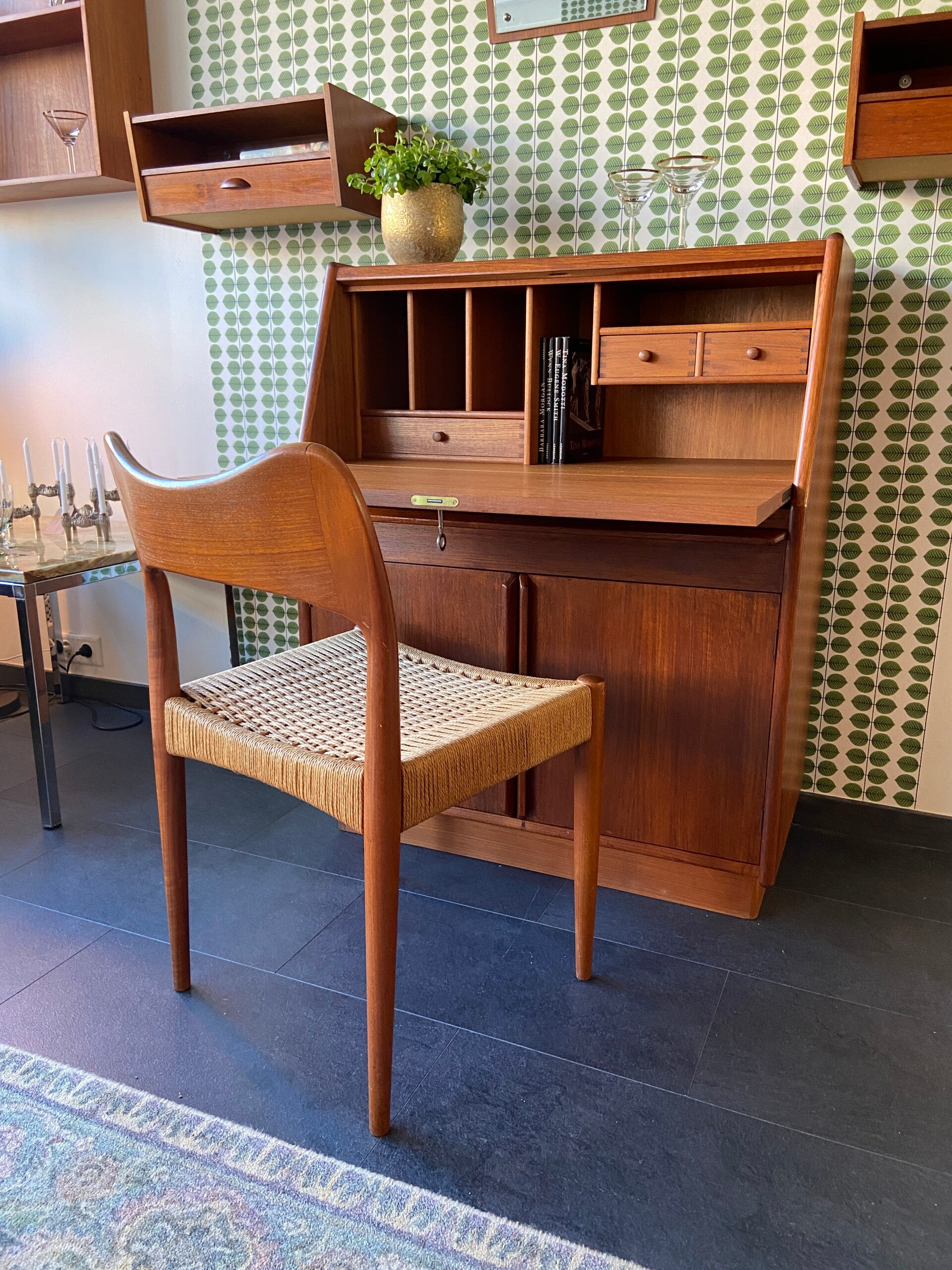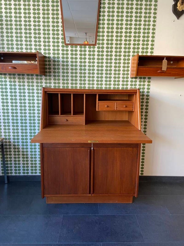 Vintage Deense secretaire van teakhout op sokkel