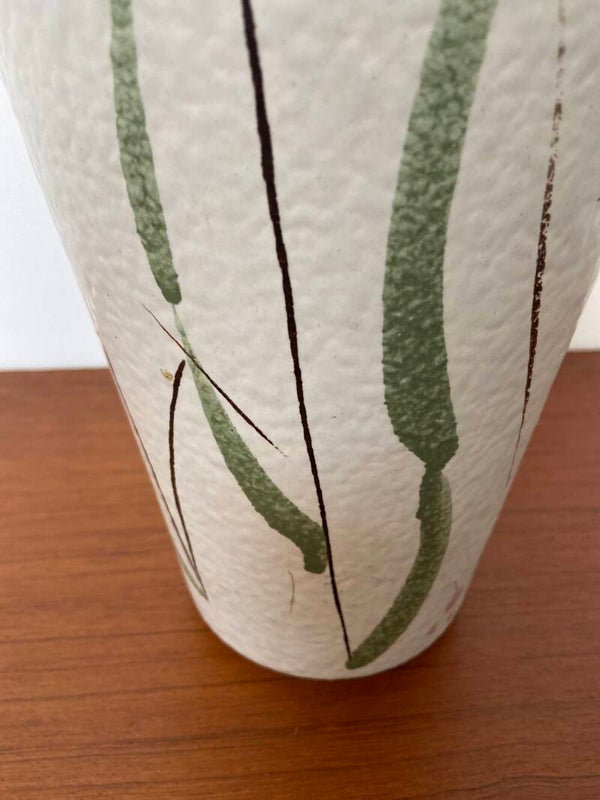 Bijzonder mooie vaas met subtiele bloemdecoraties in groen en pastel lila. De vaas is aan de binnenkant donkerbruin geglazuurd. De conditie is goed.