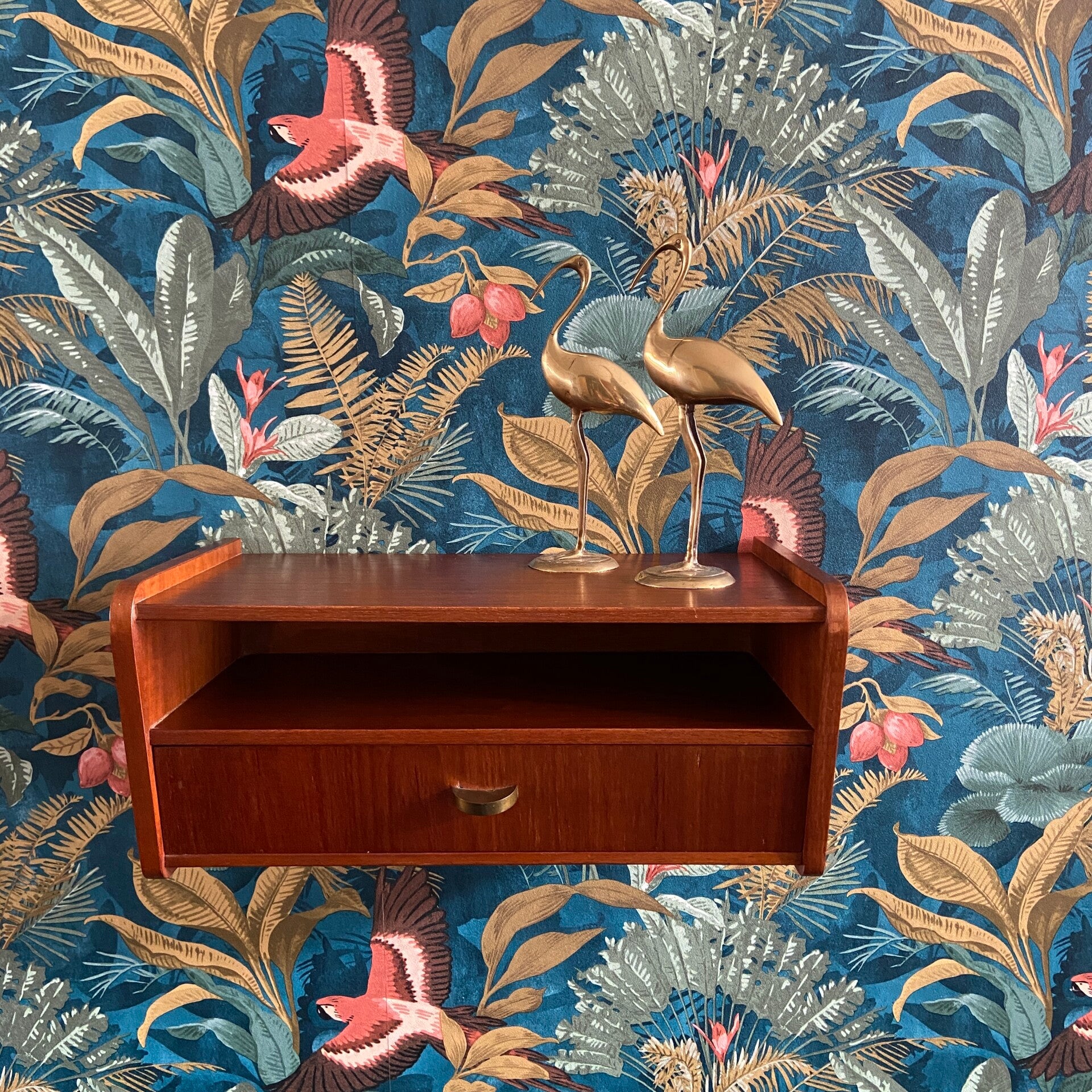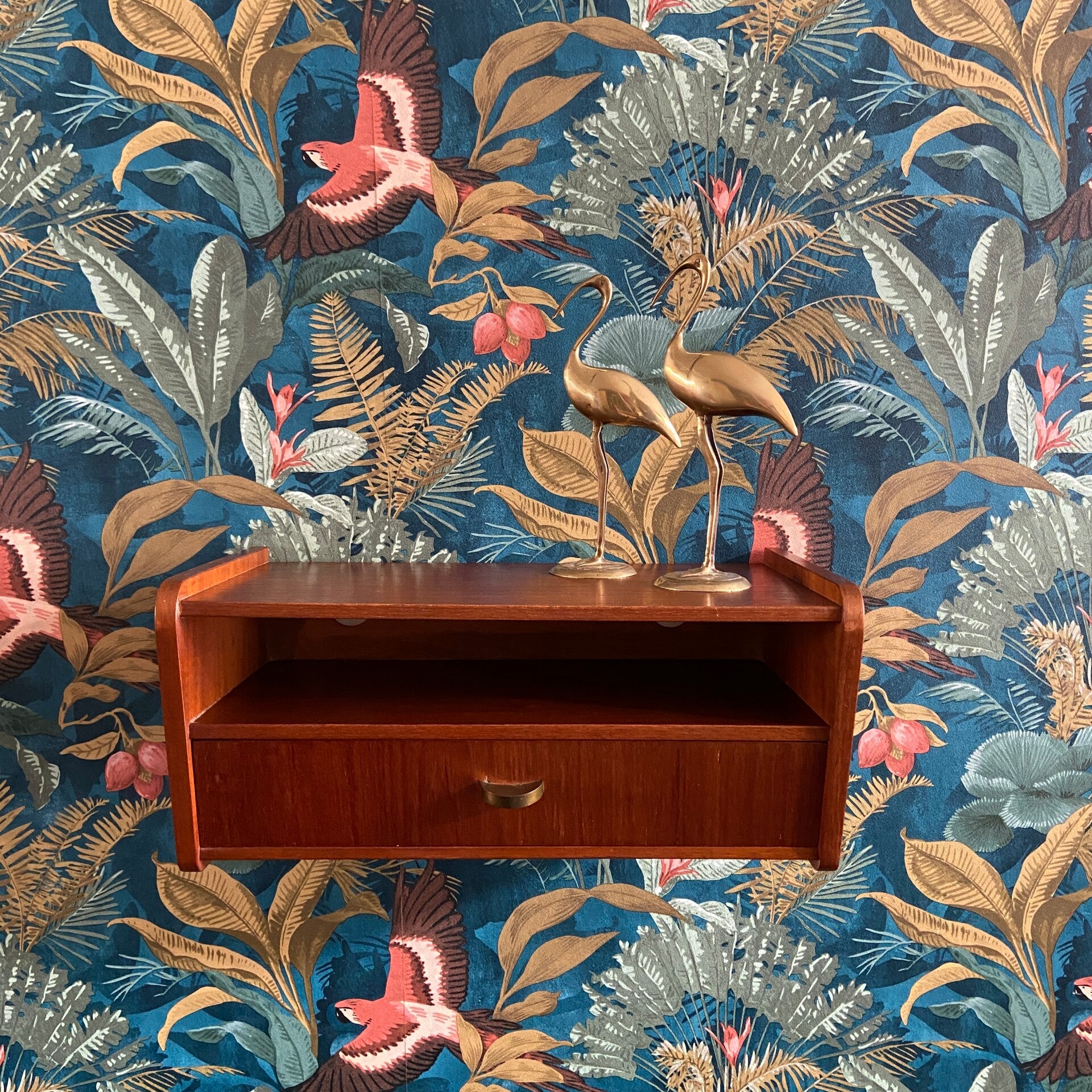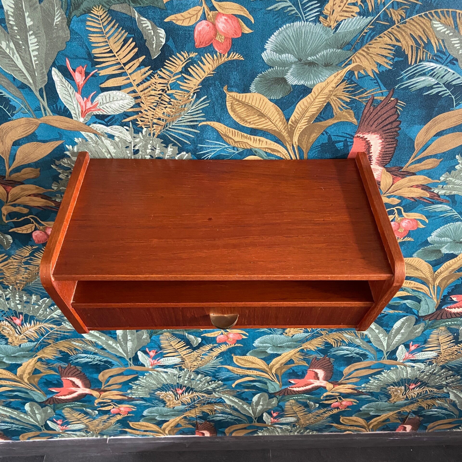 Vintage Deens zwevend hal- of nachtkastje met messing handgreep