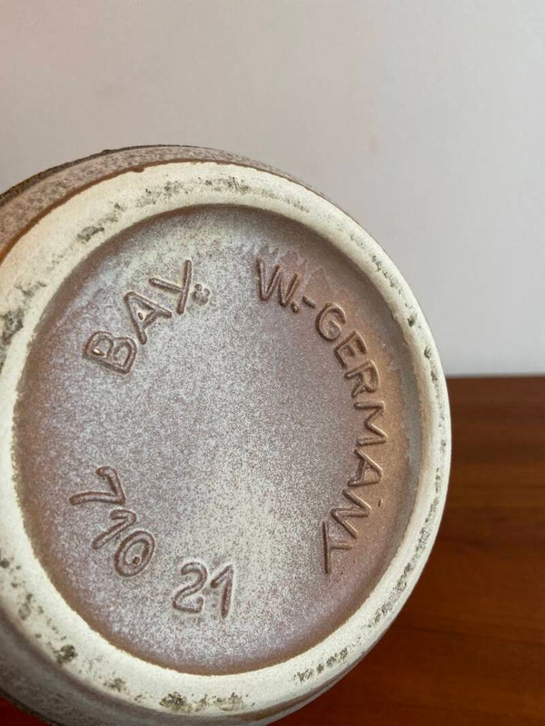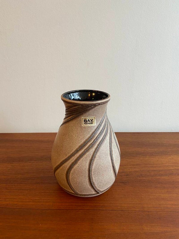 Bijzondere vaas van Bay in gemêleerde zand/bruintinten met een decoratief fat lava patroon. De binnenzijde is donkerbruin geglazuurd. De conditie is zeer goed.