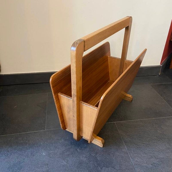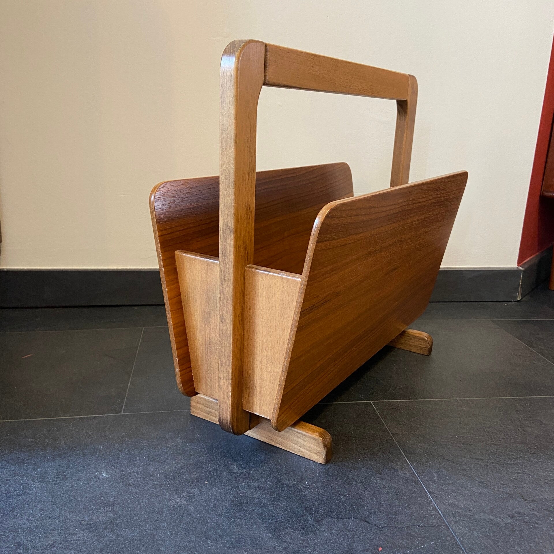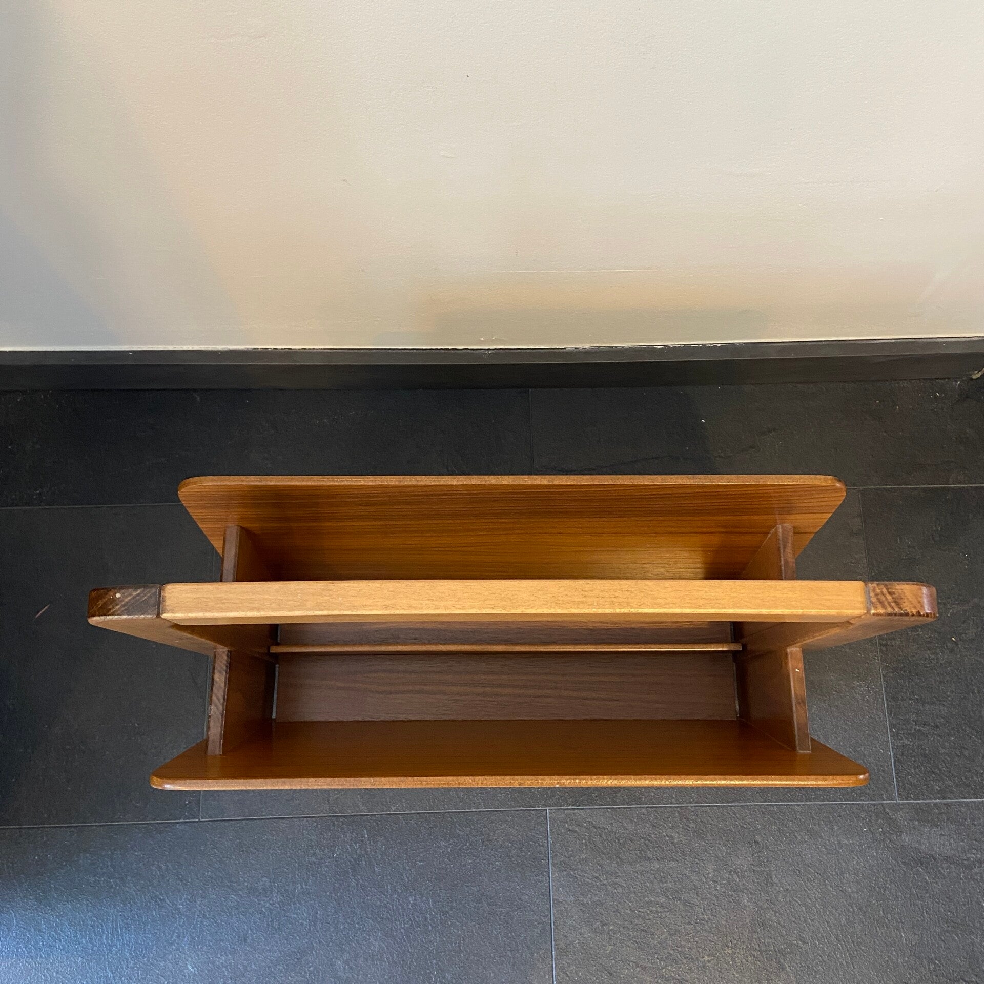 Strakke vintage lectuurbak van teakhout. De lectuurbak verkeert in goede staat zoals op de foto's te zien is.