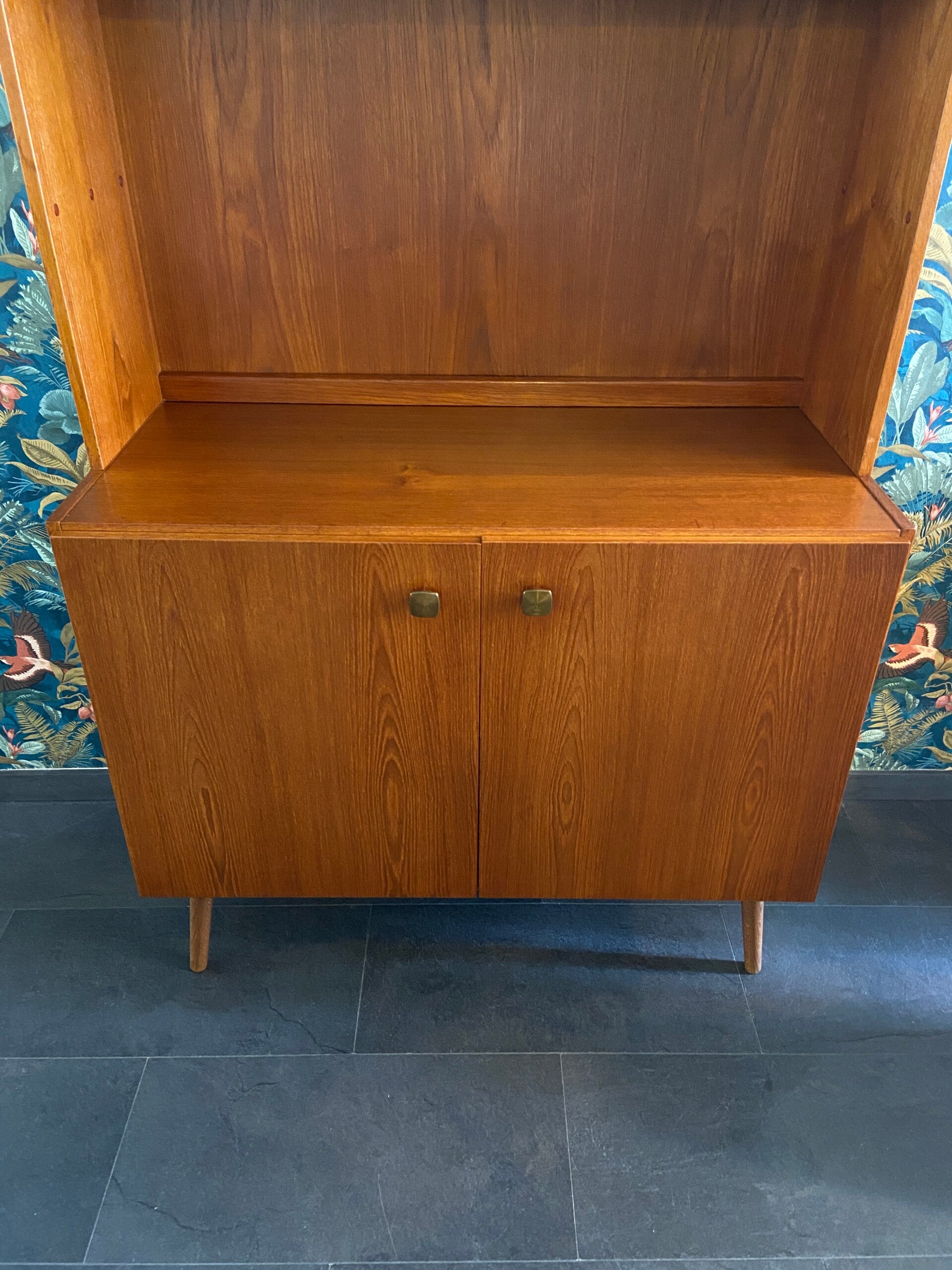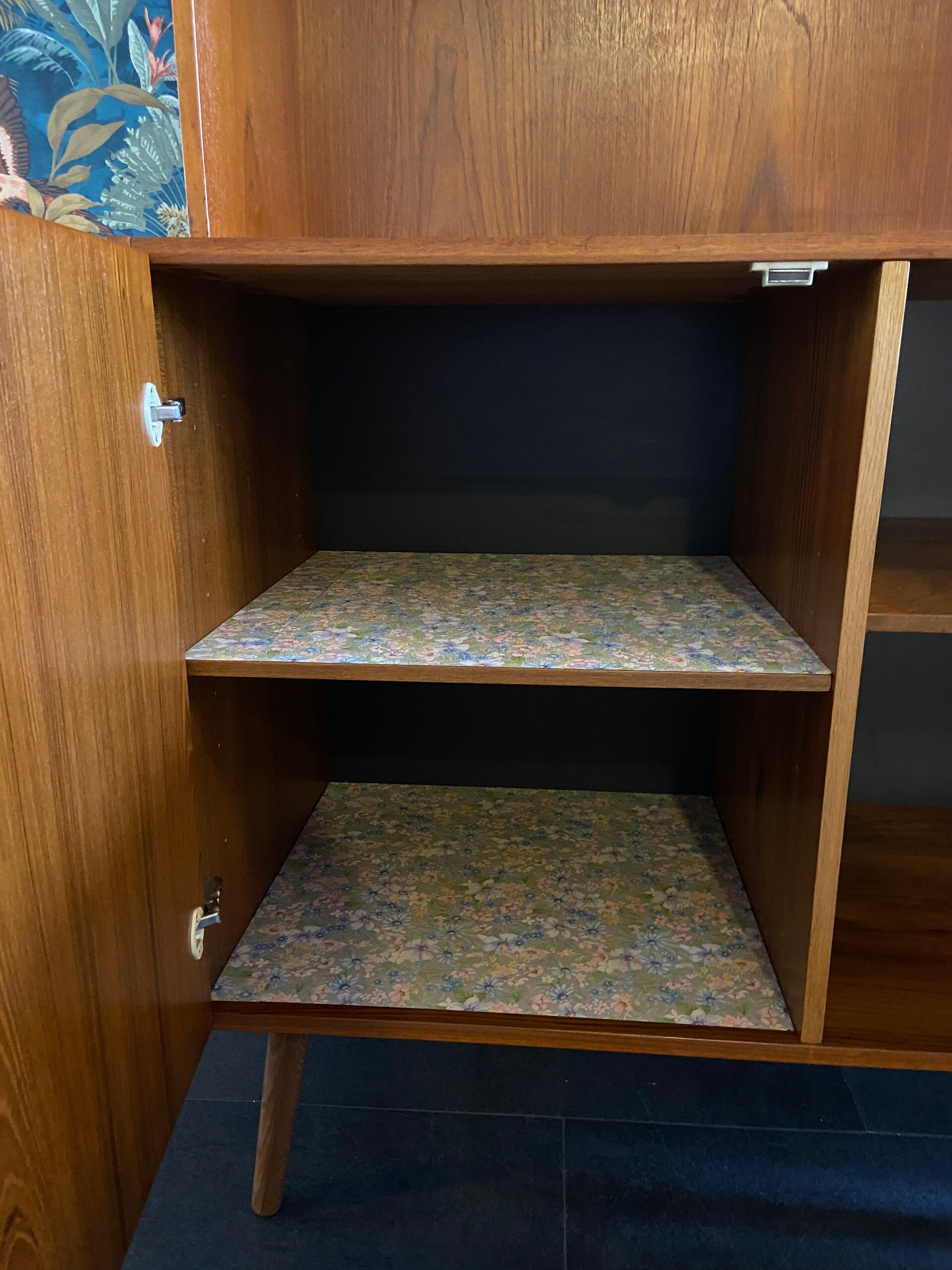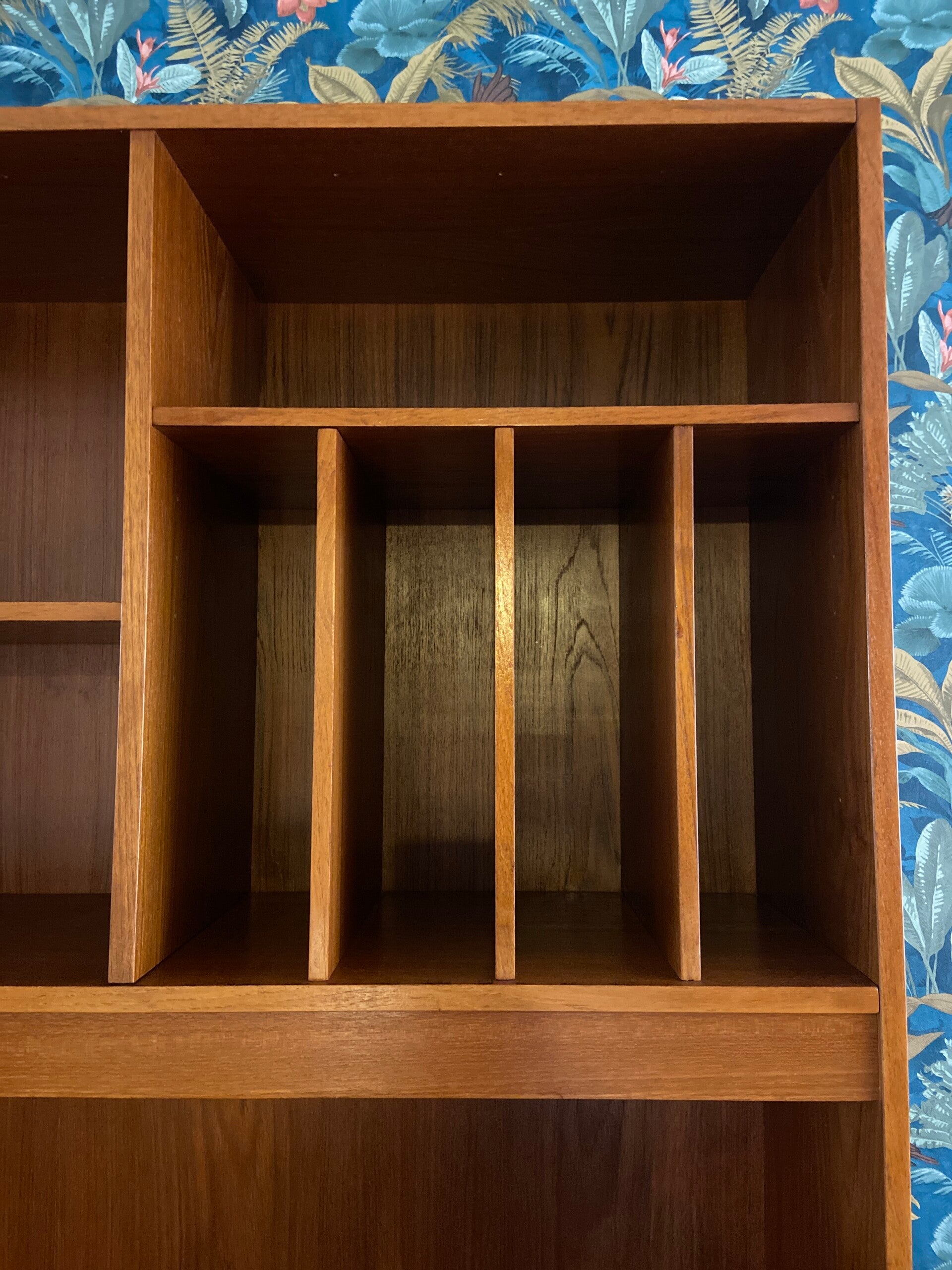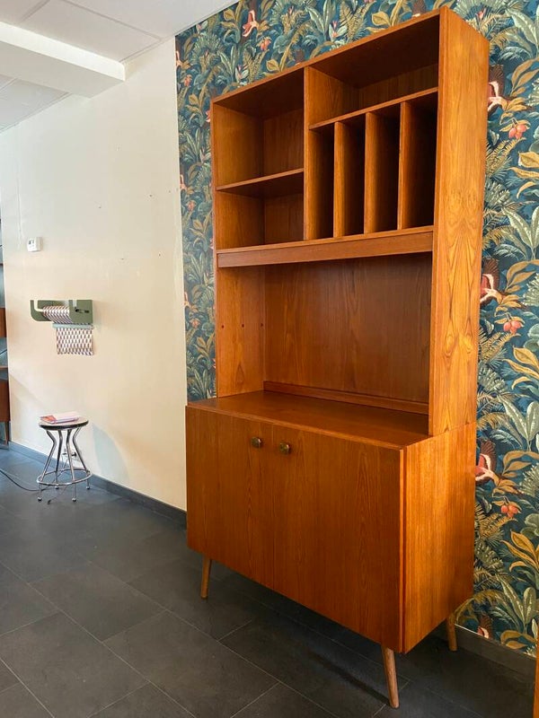 Vintage Deense wandkast in 2 delen met platengedeelte