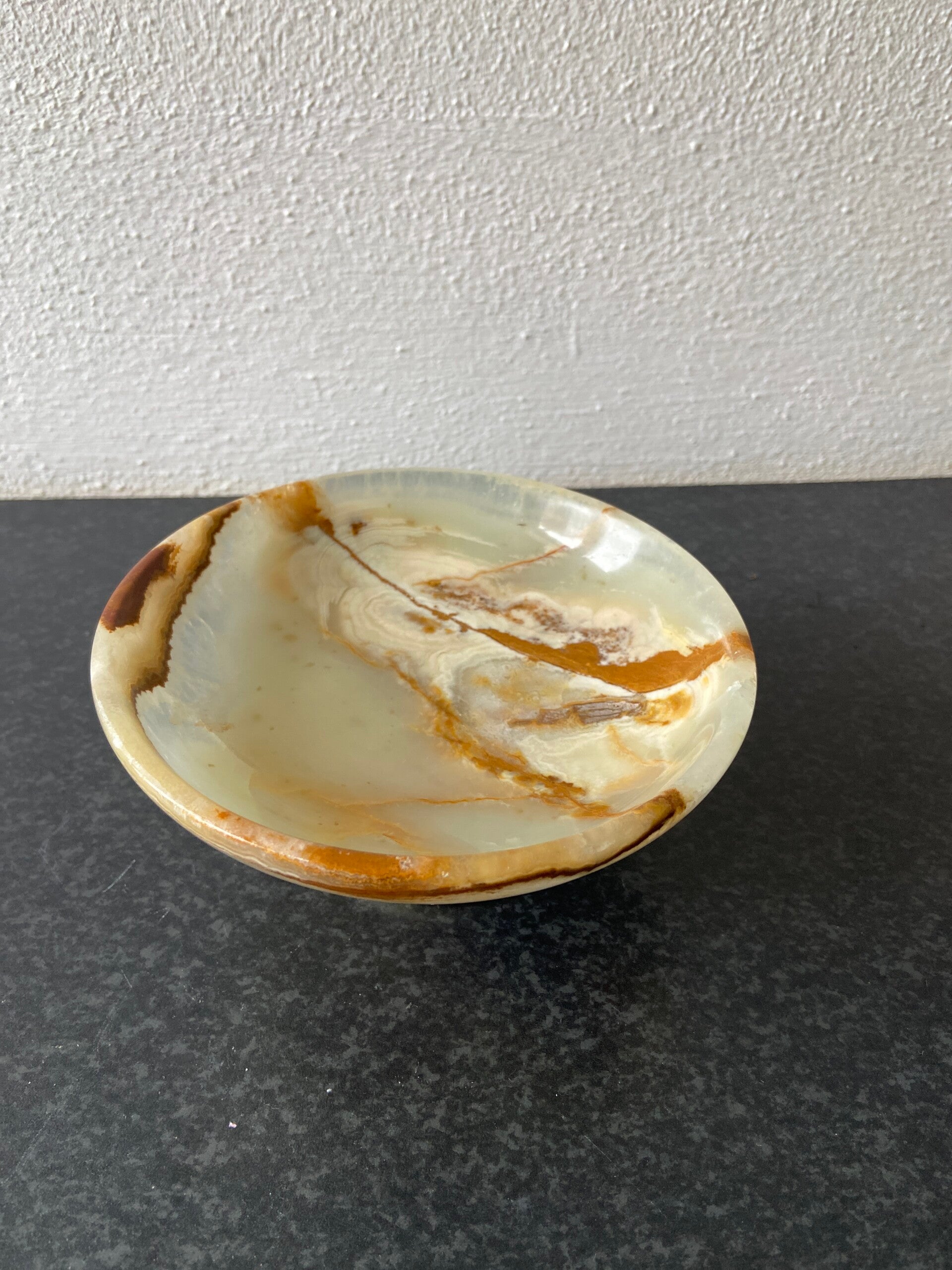Werkelijk prachtig schaaltje van onyx. De schaal staat op een sierlijke voet en verkeert in mooie staat.