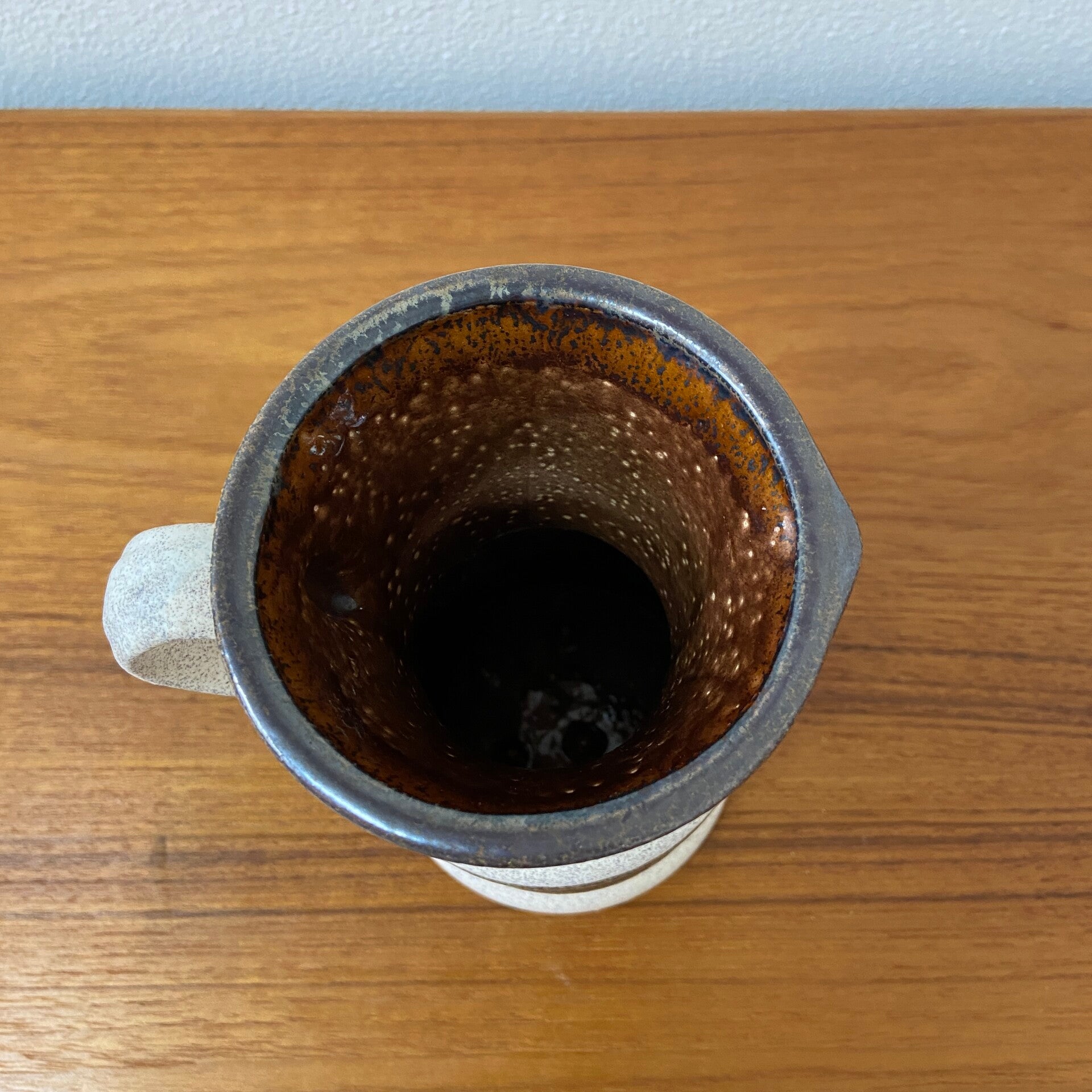 Deze West Germany vaas kom je niet vaak tegen! UItgevoerd in de kleuren zand, caramel, bruin en rood in een combinatie van mat en geglazuurd aardewerk. De conditie is goed.
