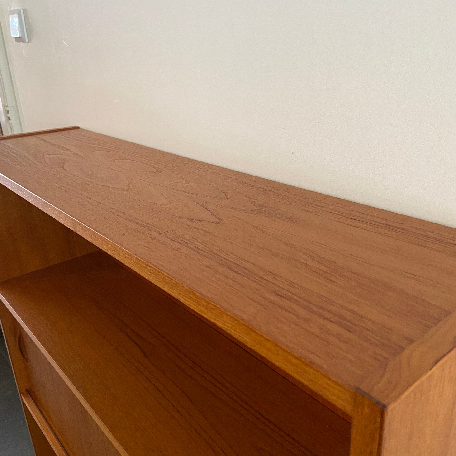 Prachtexemplaar! Deze boekenkast van Clausen en Søn is een aanwinst in zowel de woonkamer, slaapkamer of studeerkamer! Uitgevoerd in warm teak en in zeer goede conditie. Let ook op de mooie afwerking van de hoeken; kleine details waaruit vakmanschap blijkt. Met als kers op de taart die mooie, kenmerkende handgrepen!