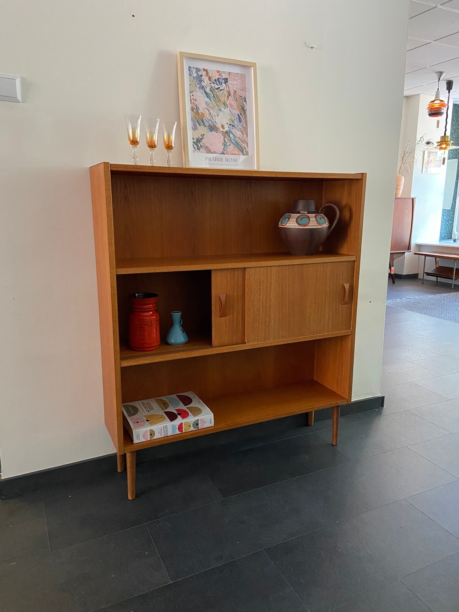 Vintage boekenkast met schuifdeuren van Clausen en Søn