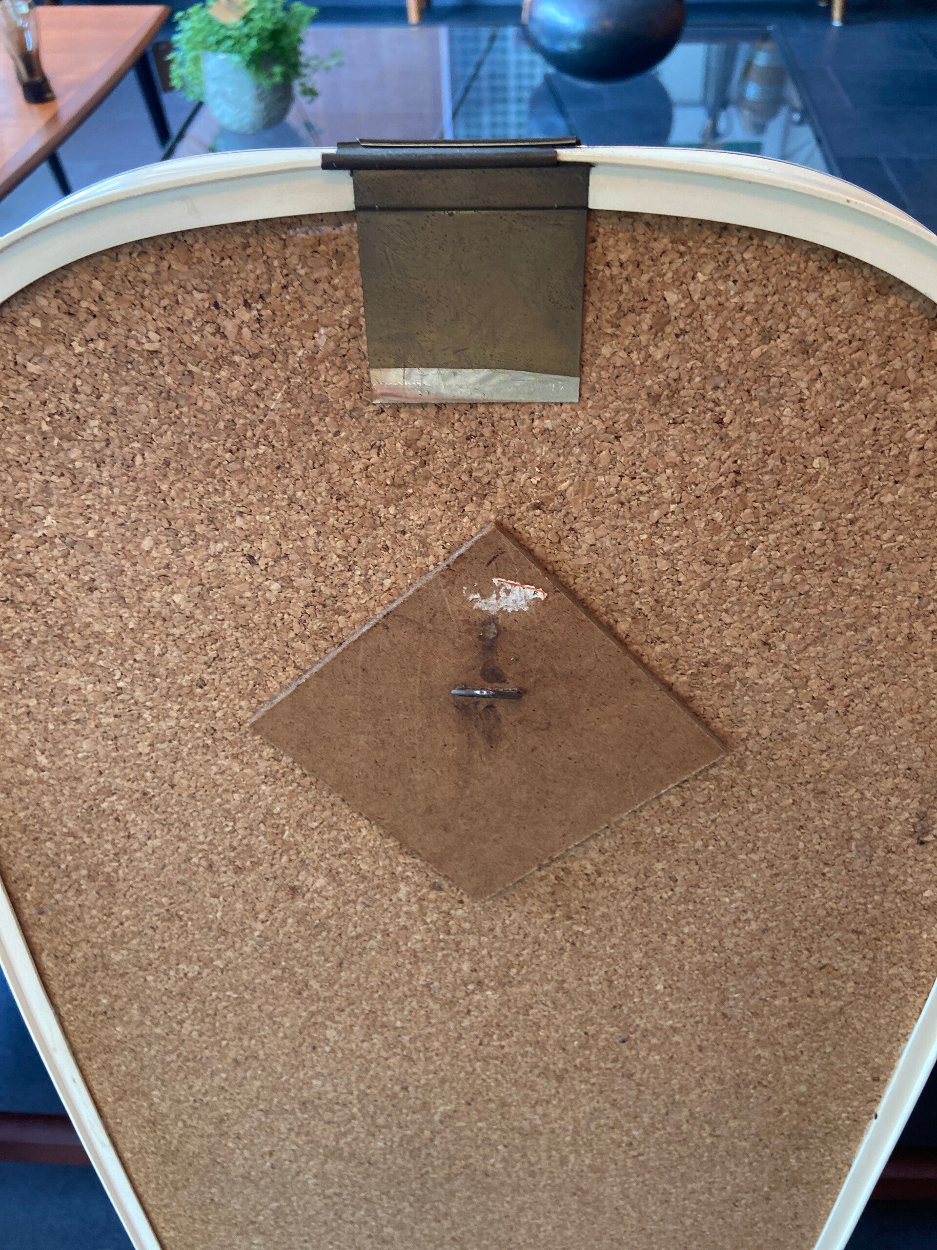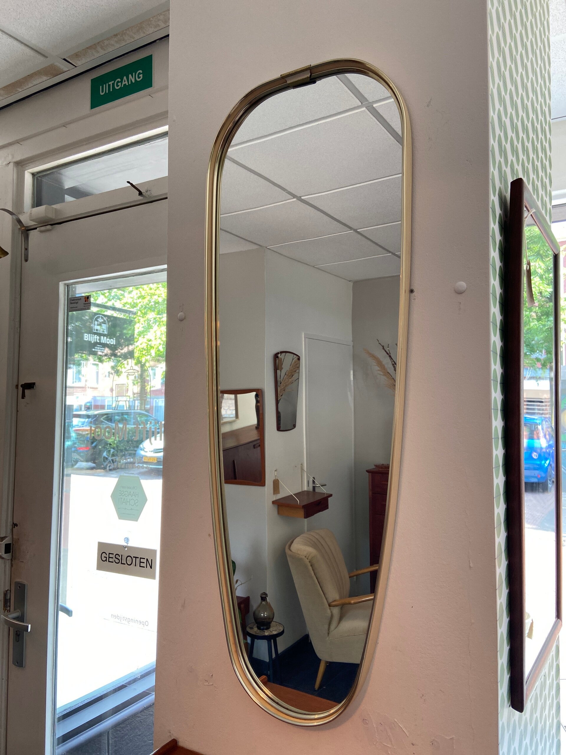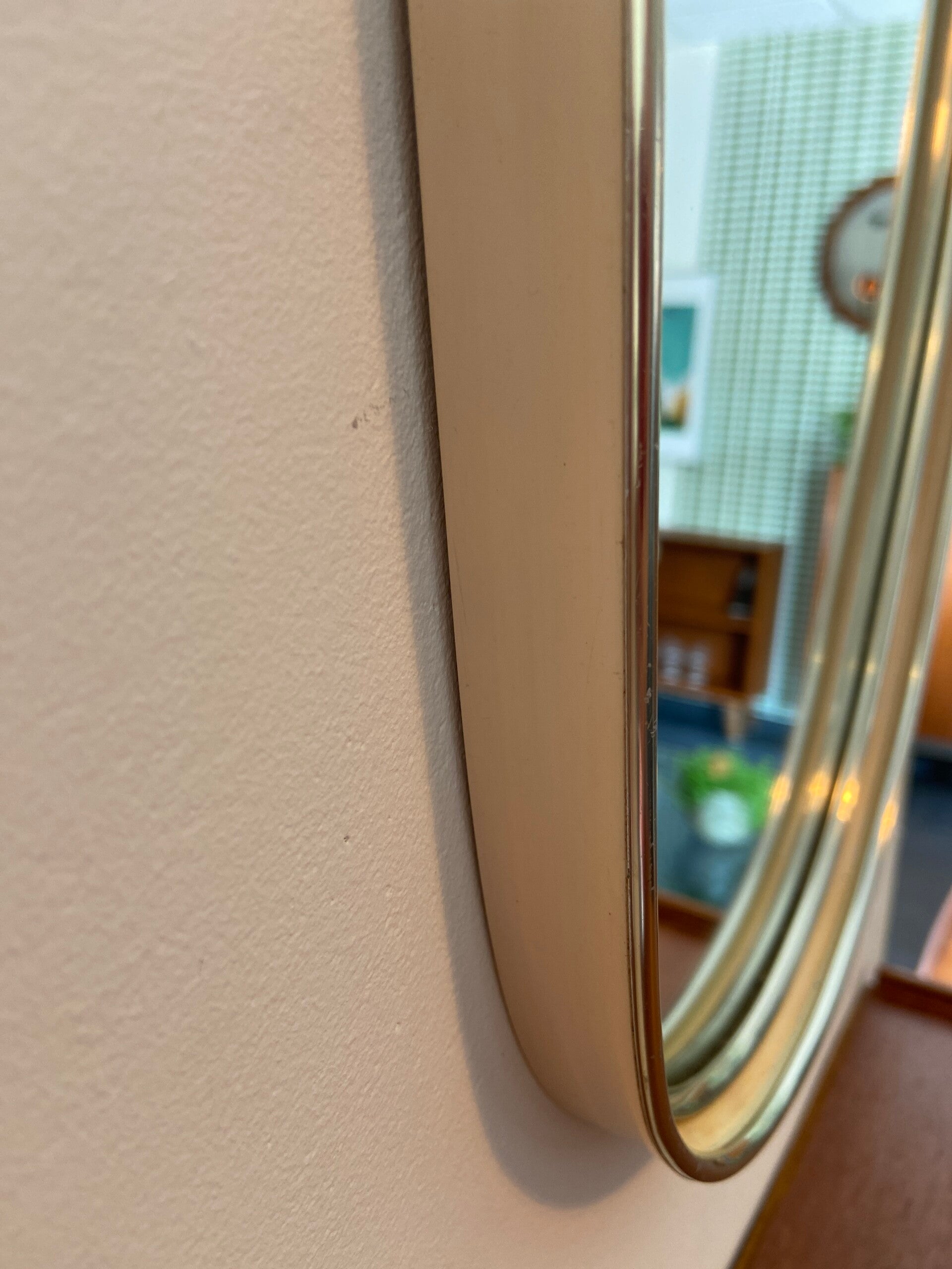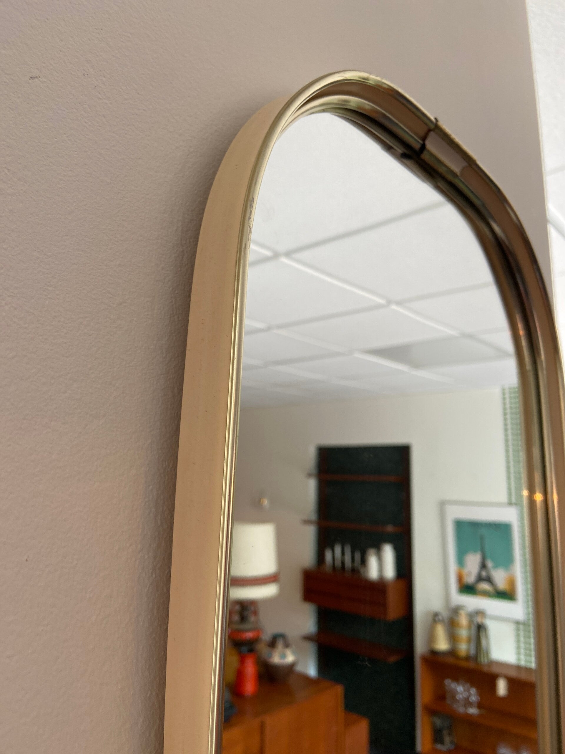 Vintage Trapeziumvormige spiegel met cremekleurige lijst en messing rand