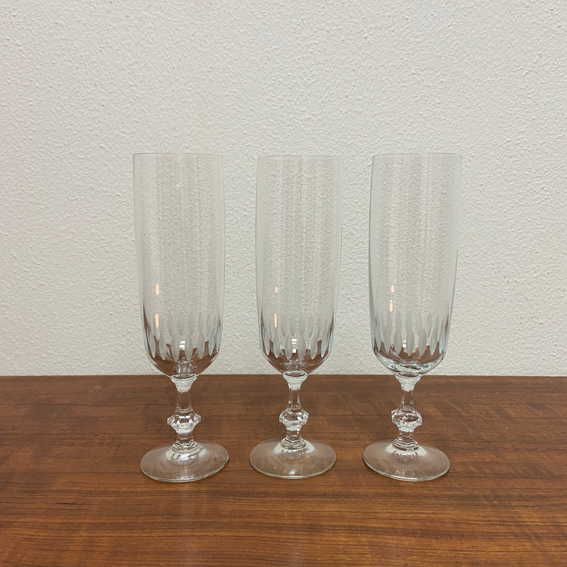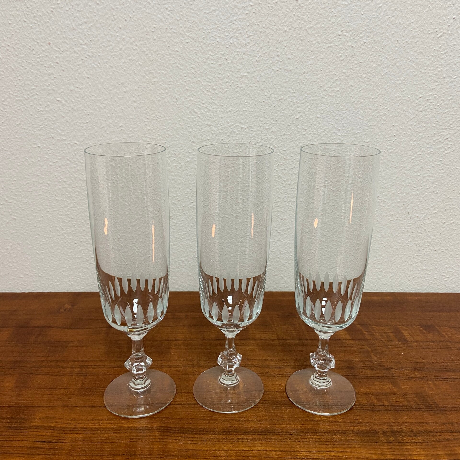 Set van 3 feestelijke glazen met geëtst glas onderaan de kelk en een sierlijk bewerkte steel.