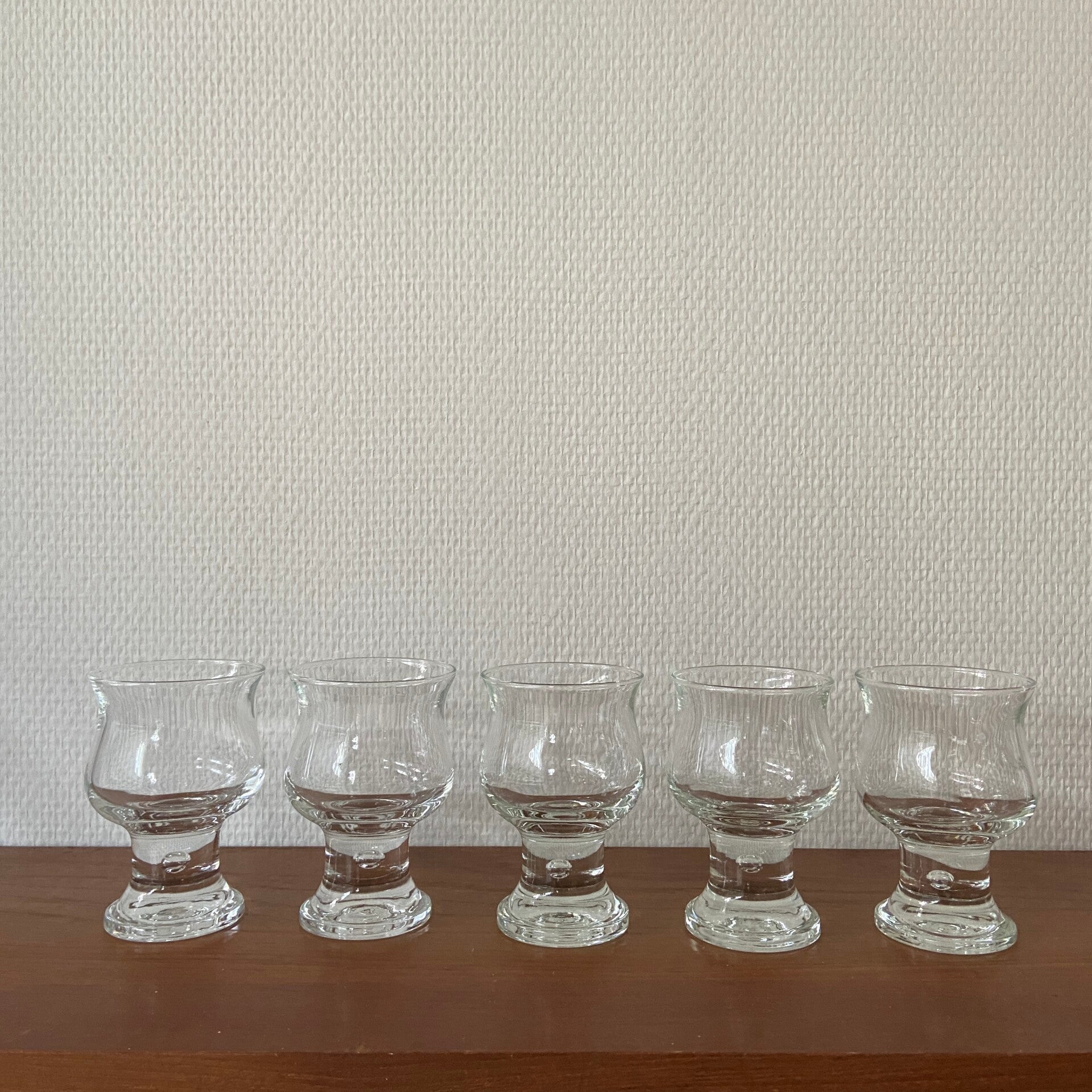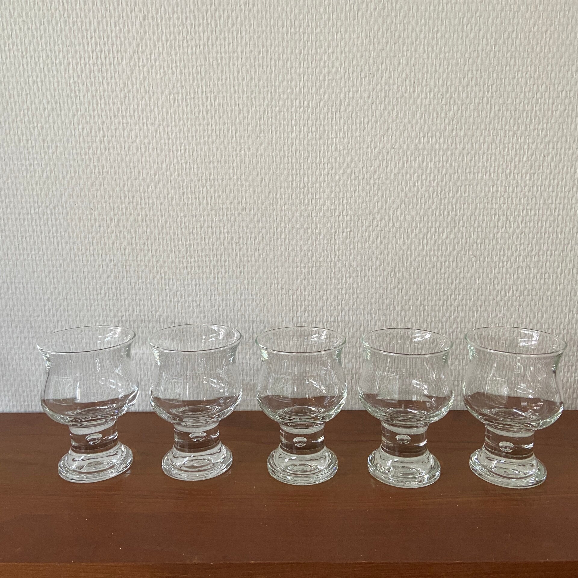 Set van 5 Zweedse likeurglazen van 'bubbelglas'