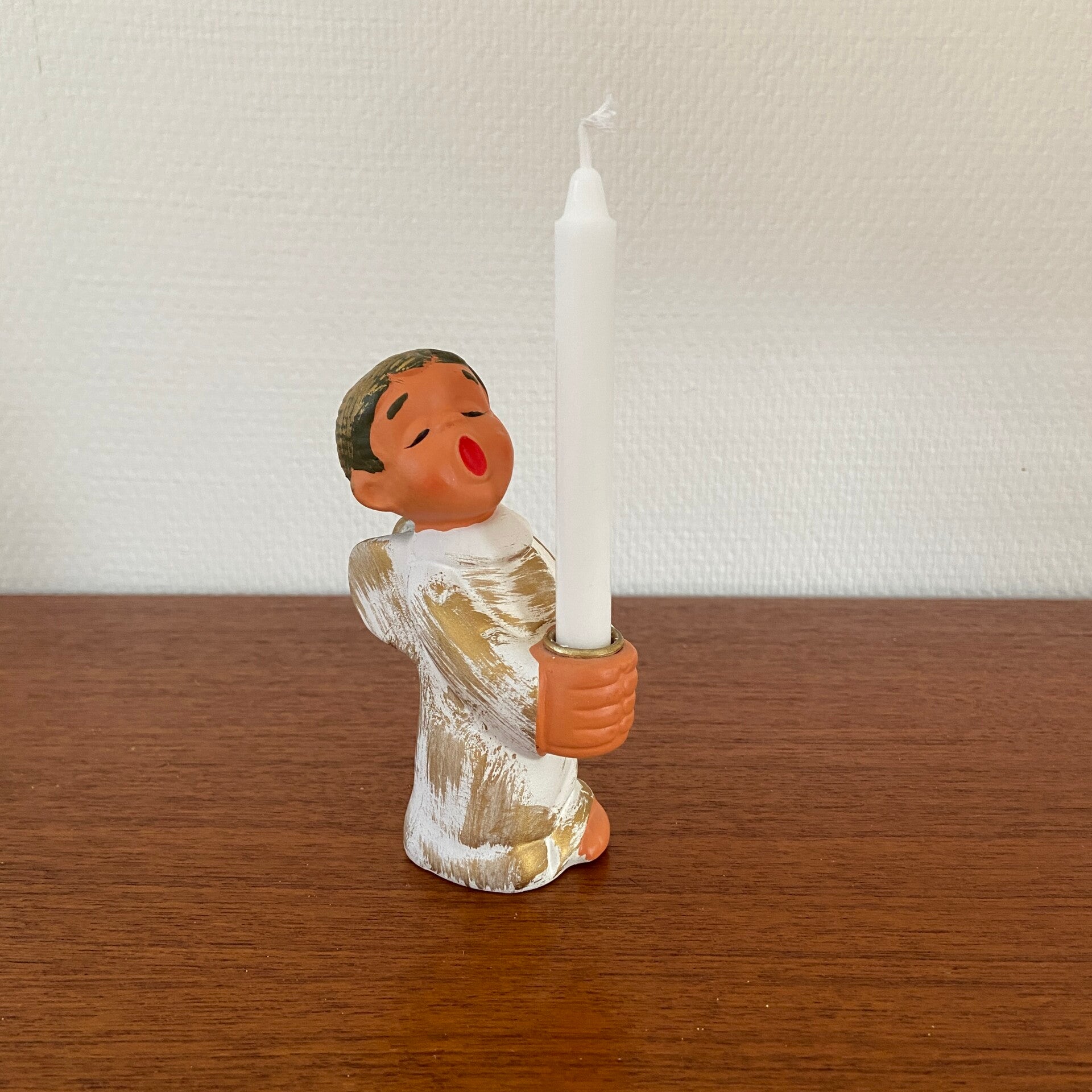 Dit lieve kerstengeltje met kaars is afkomstig uit Duitsland en is leuk op zichzelf of om te combineren met andere engeltjes in de webshop. De conditie is zeer goed.