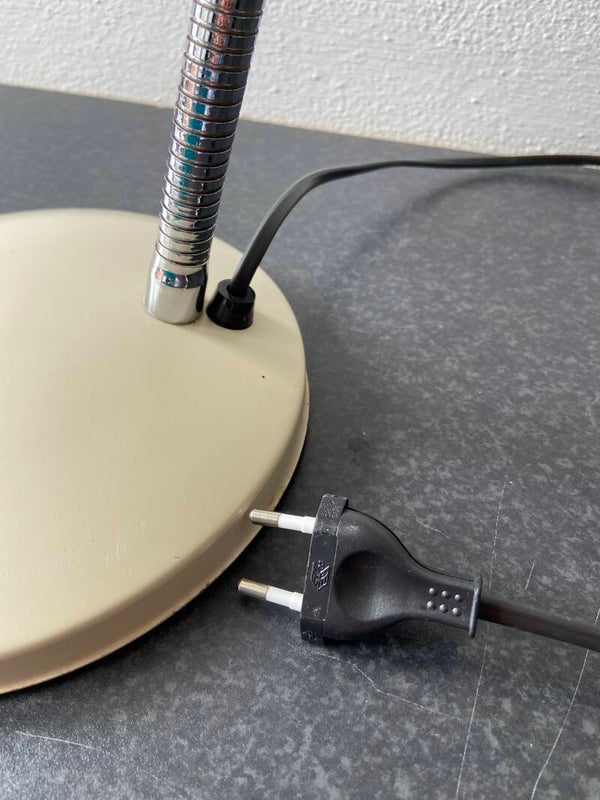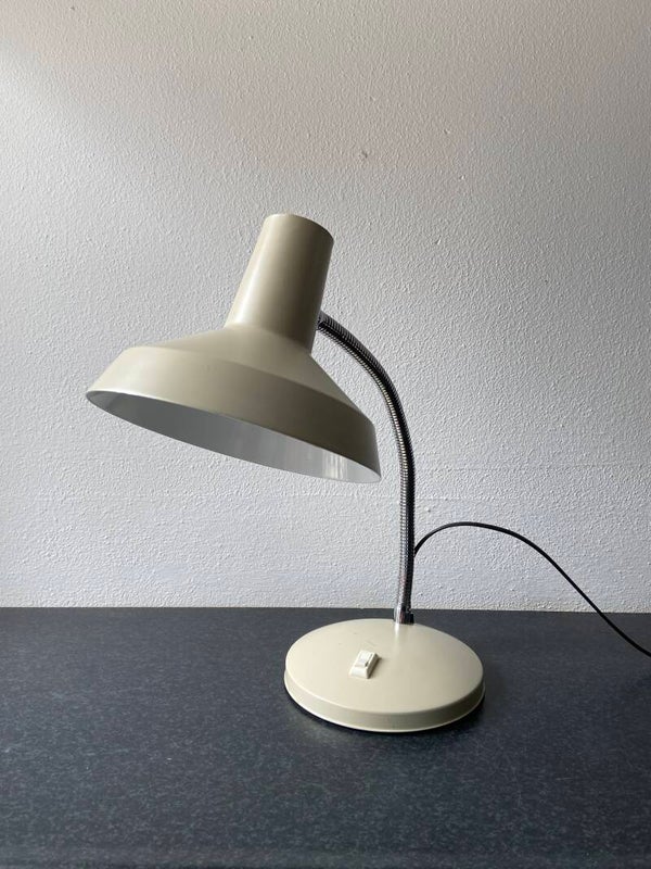Mooie vintage bureaulamp in een neutrale beigetint. De lamp verkeert in mooie vintage staat met wat minimale krasjes op de voet; zie de foto.