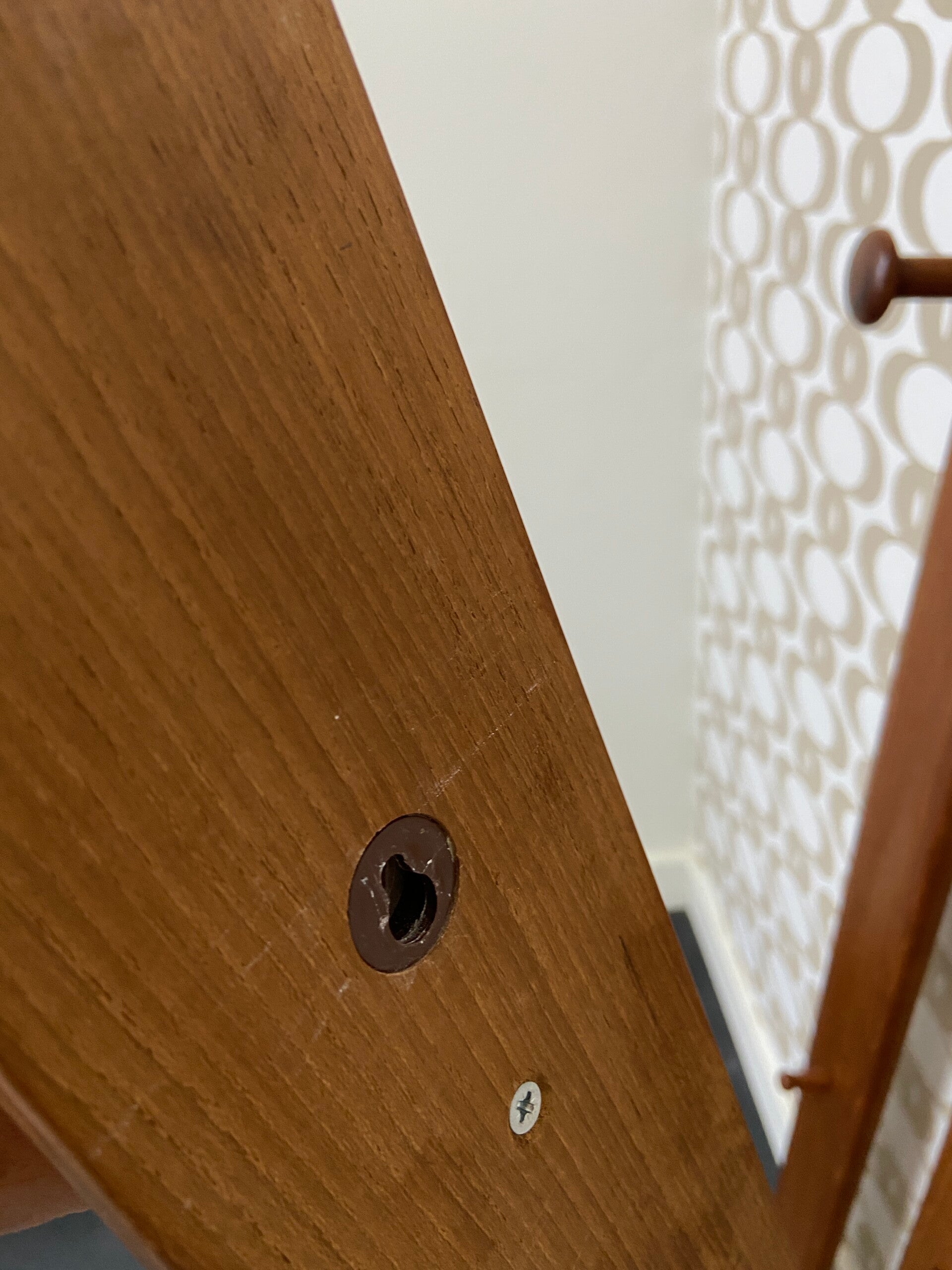 Bijzondere vintage design kapstok in 4 losse delen. De kapstok kan naar eigen inzicht aan de muur worden bevestigd; strak naast elkaar maar ook leuk om hem in hoogte te laten verspringen. De conditie is zeer goed.