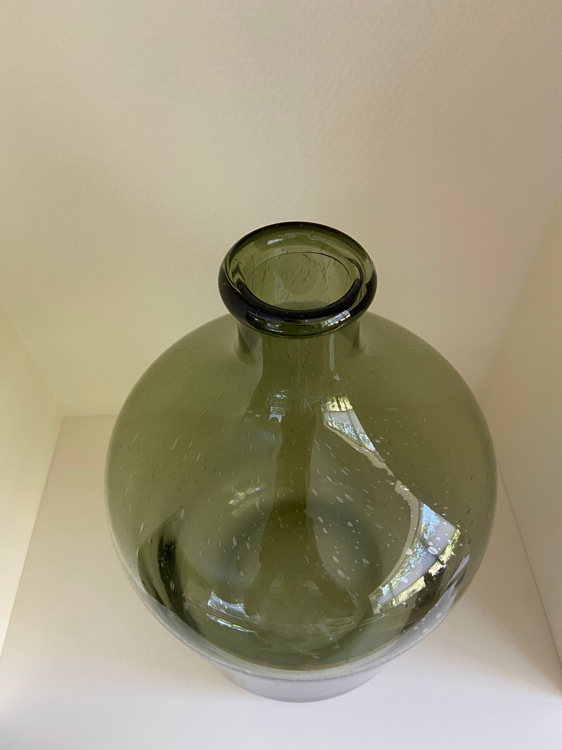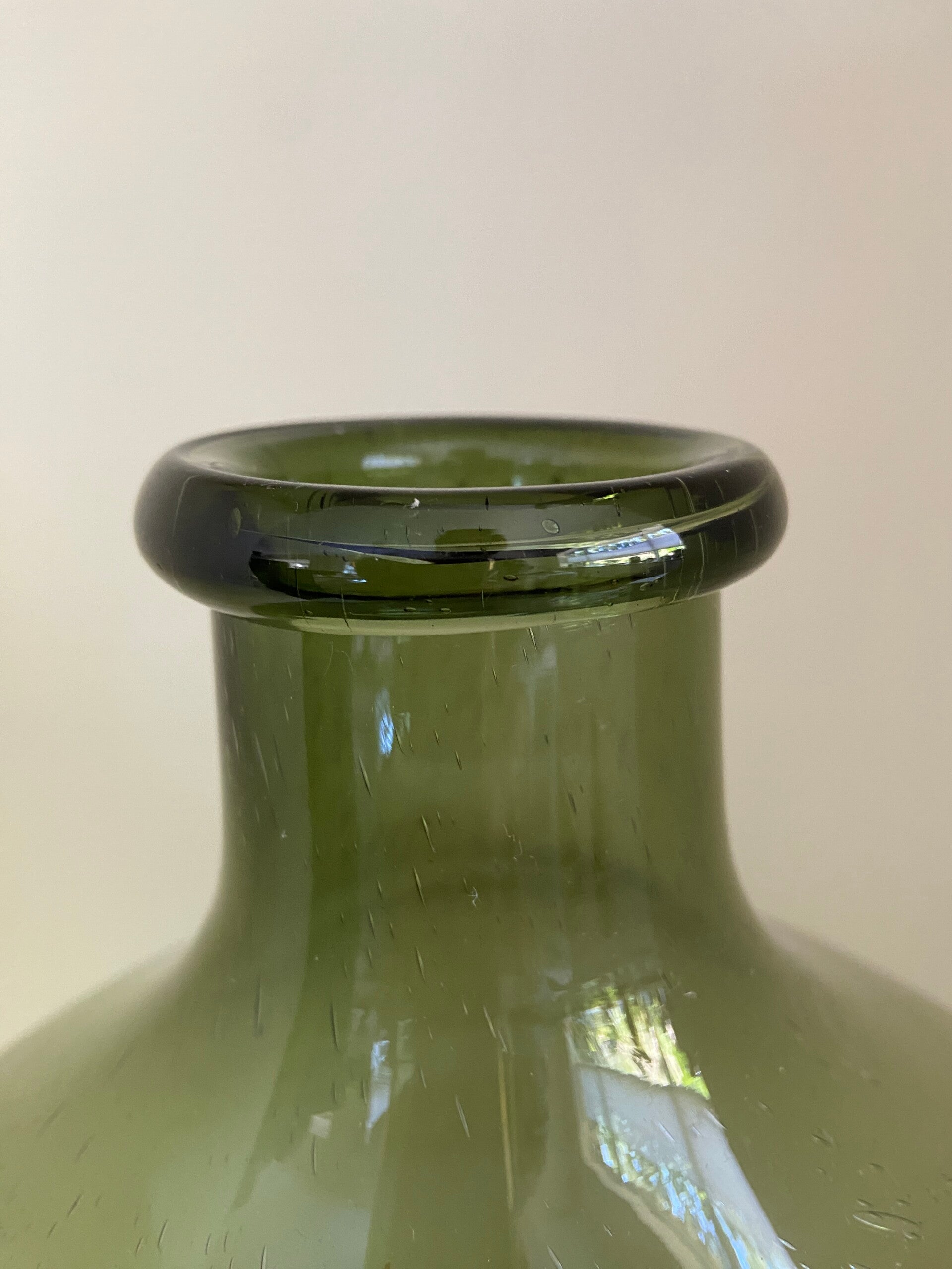 Sfeervolle Franse vintage glazen vaas. Erg leuk met een enkele tak of pluim erin.