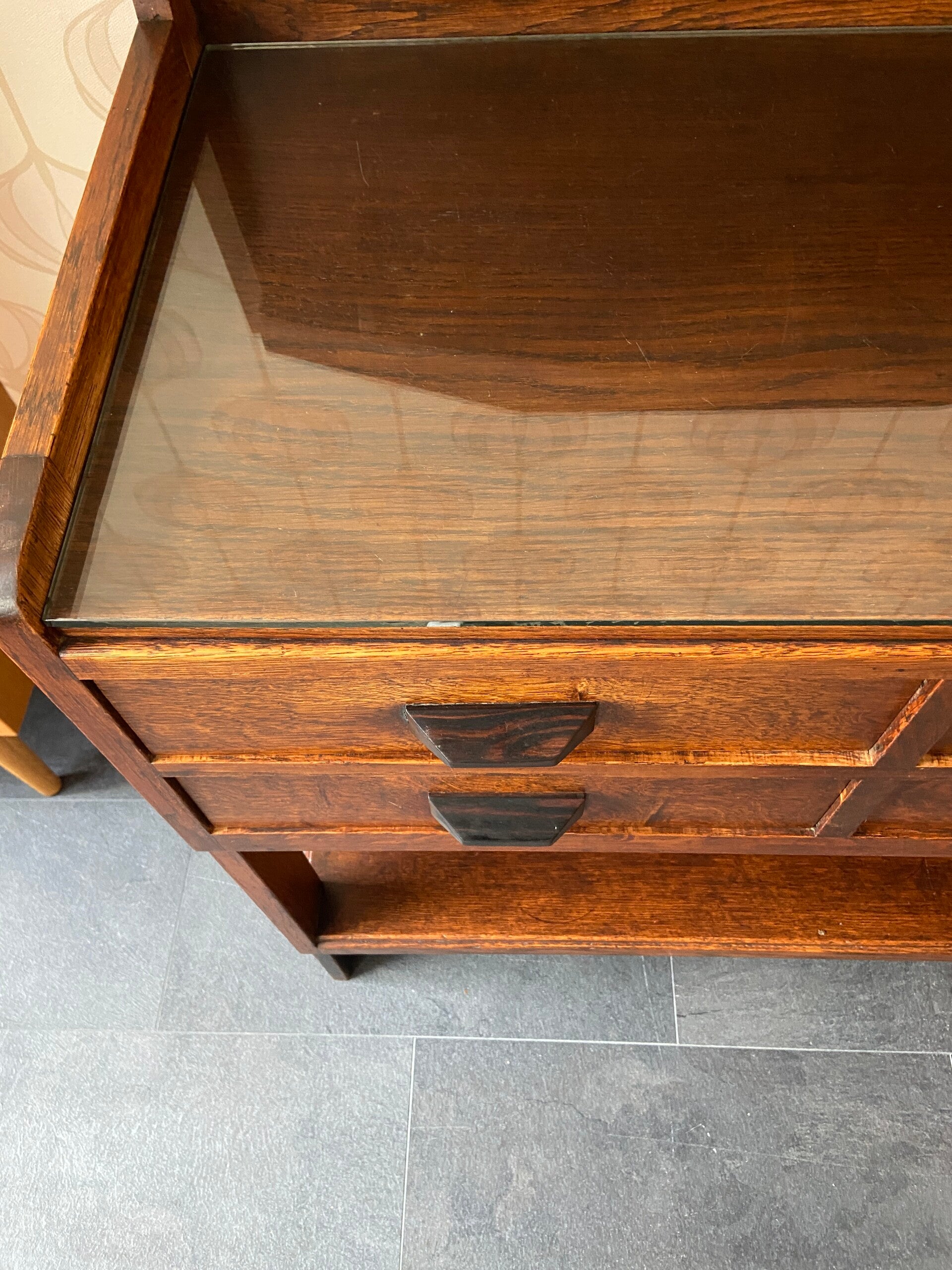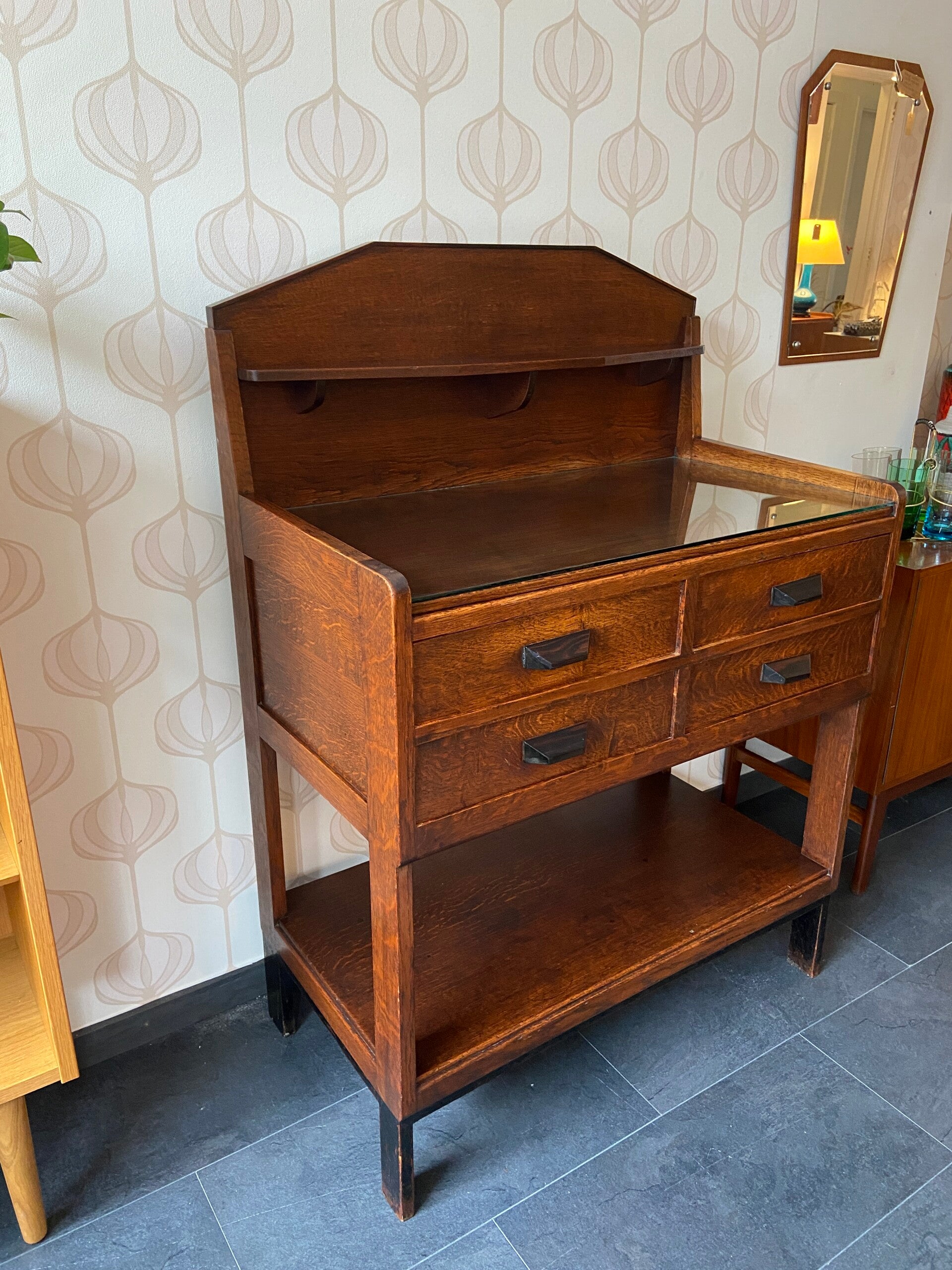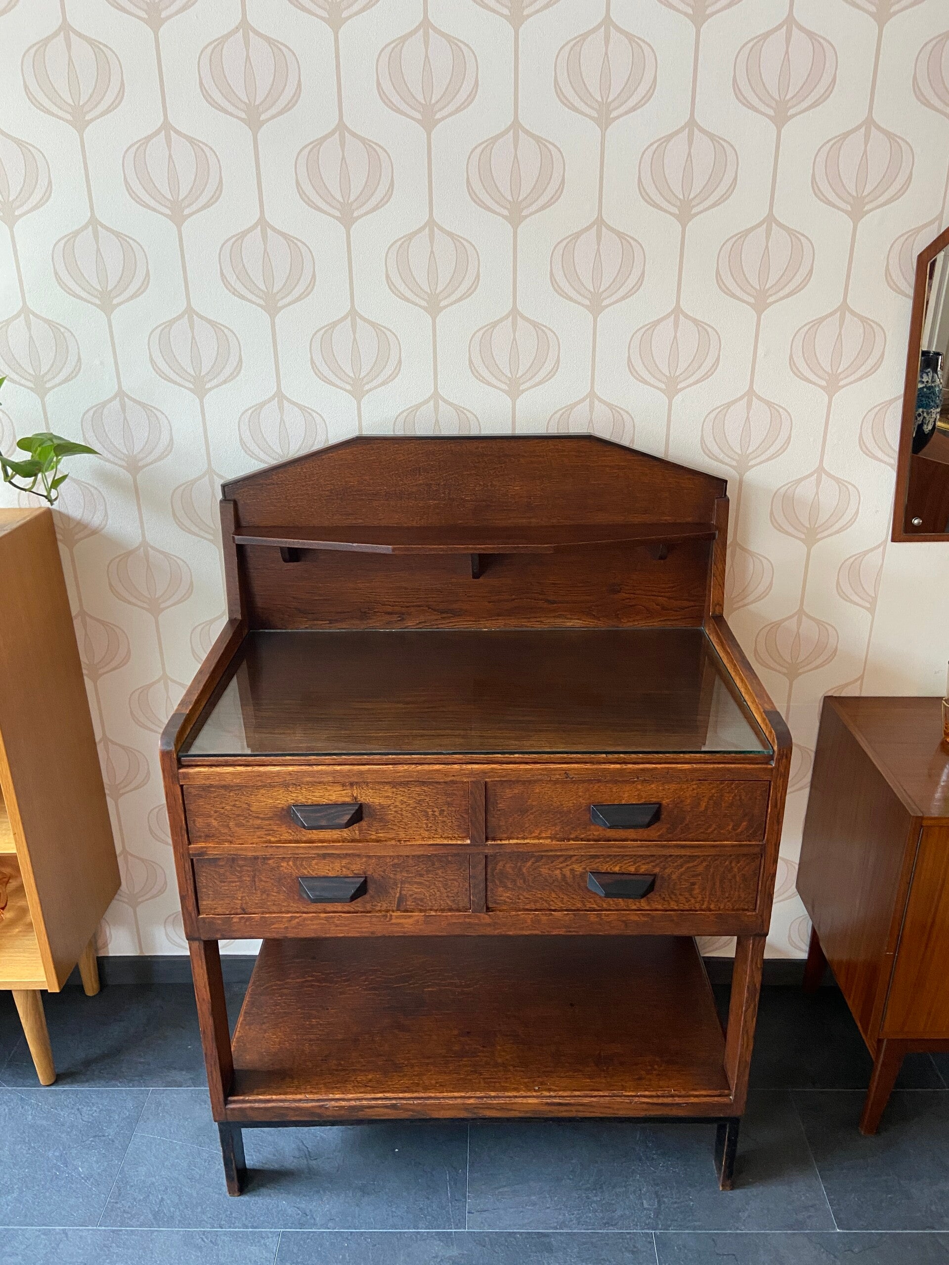 Art Deco Buffetkast met glasplaat en 4 laden