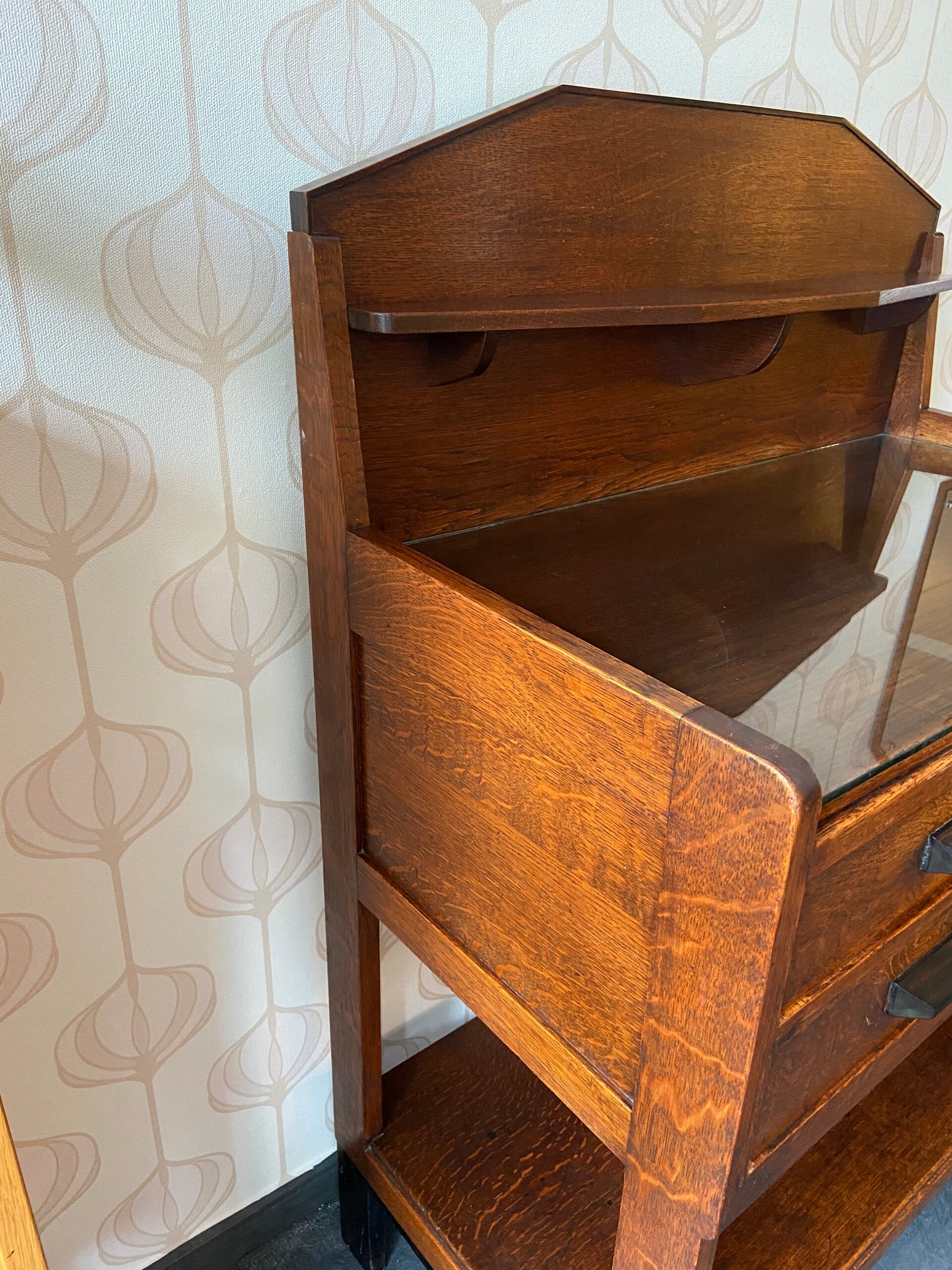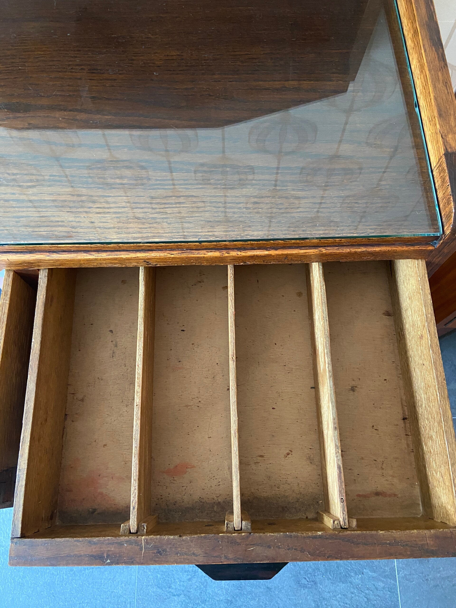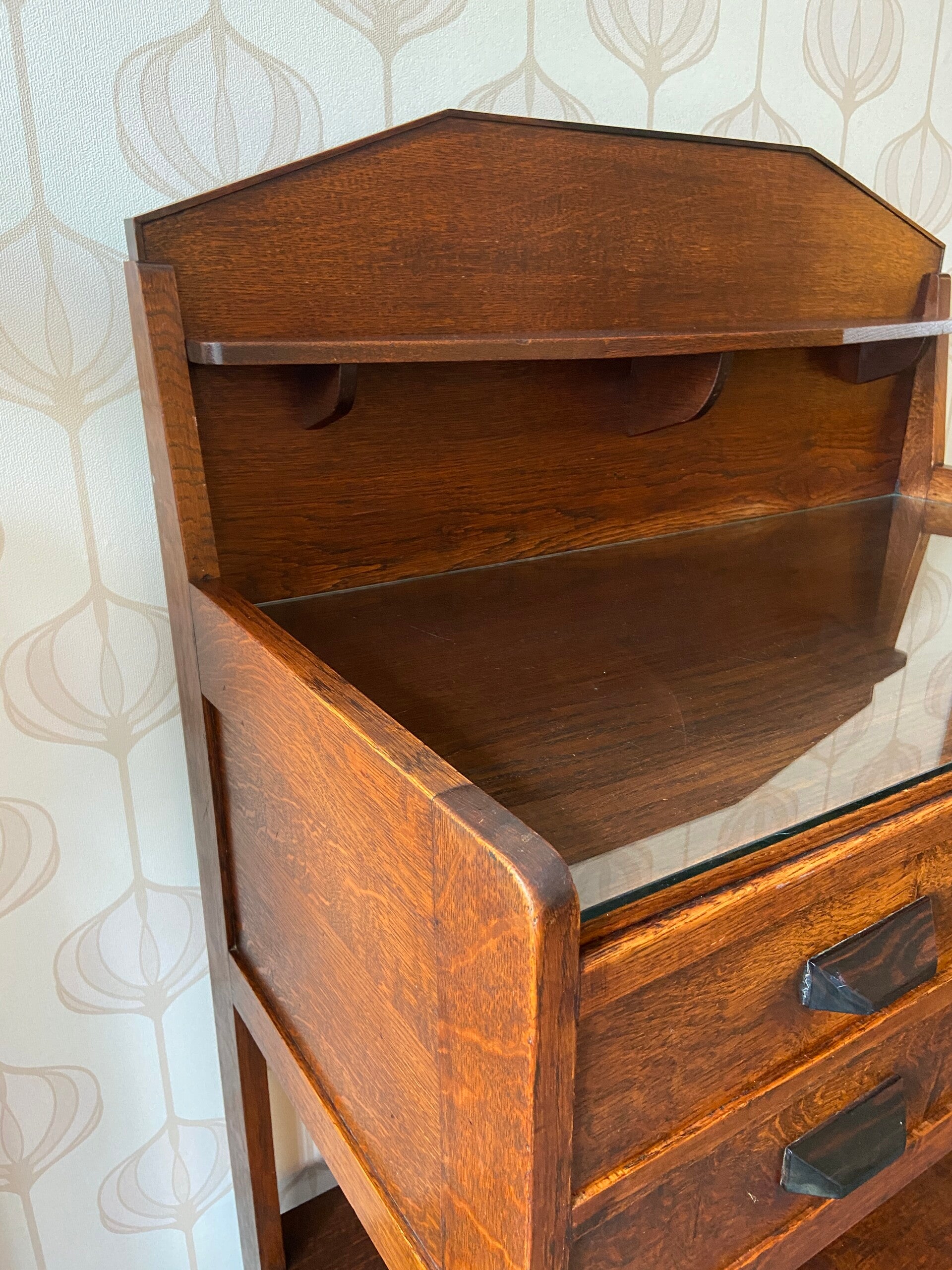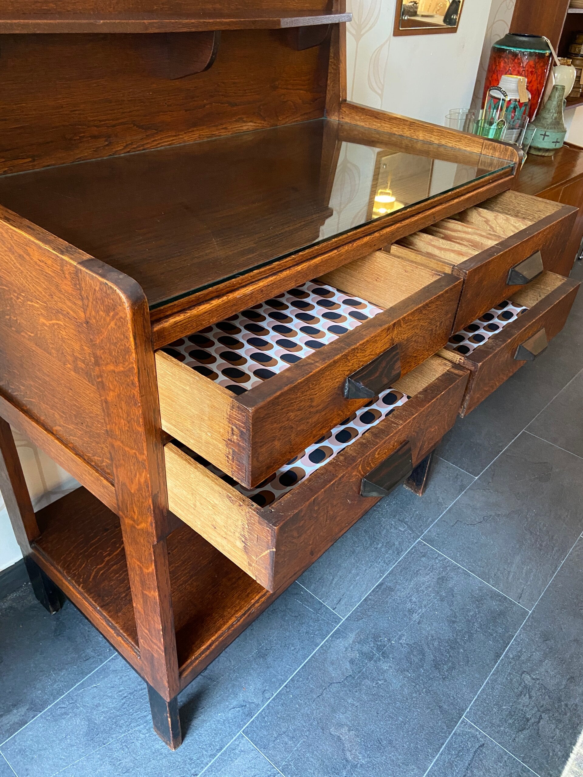 Art Deco Buffetkast met glasplaat en 4 laden