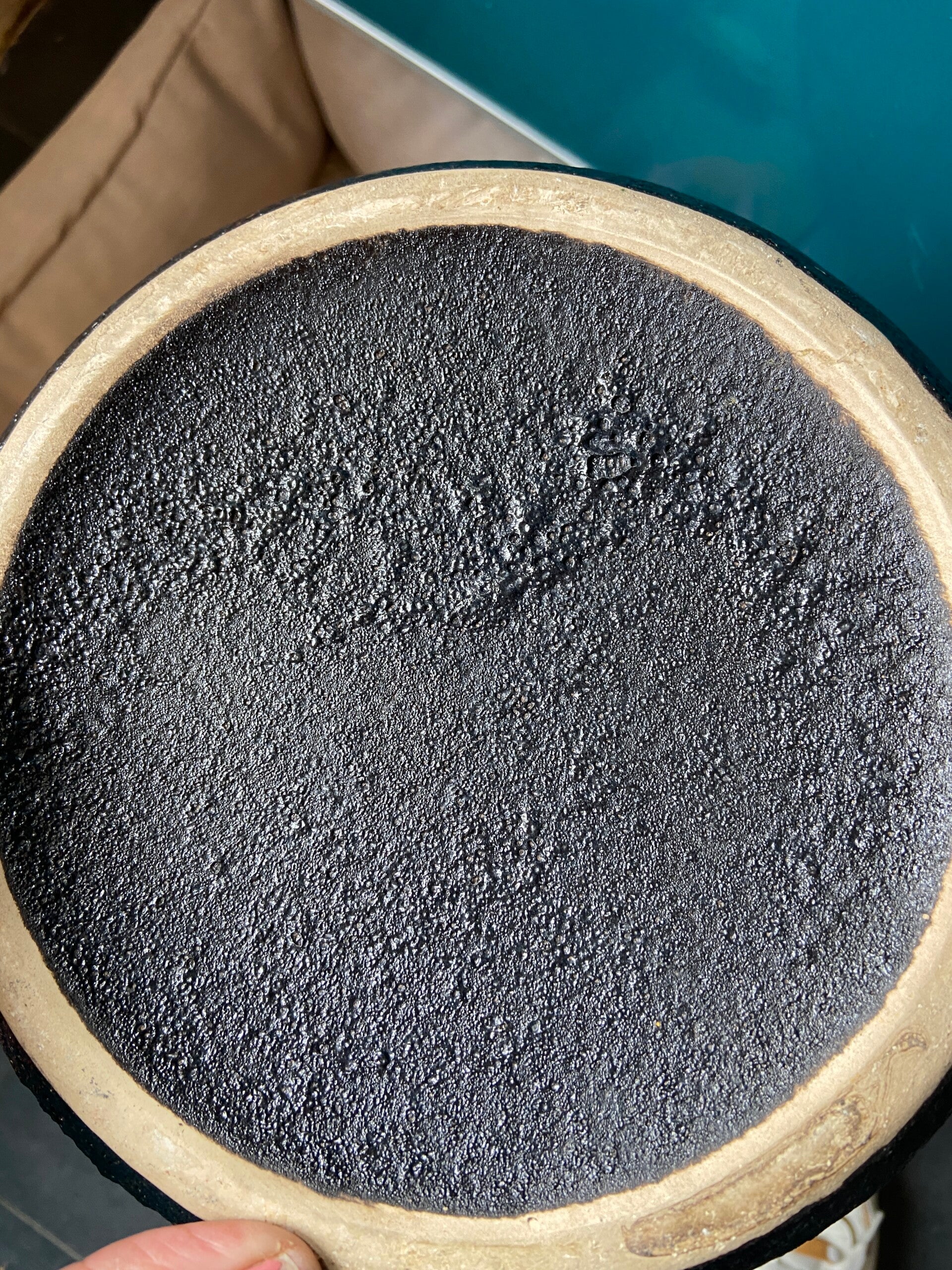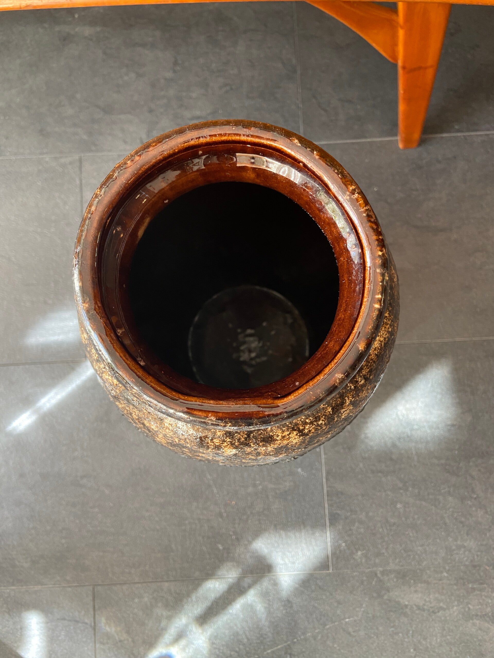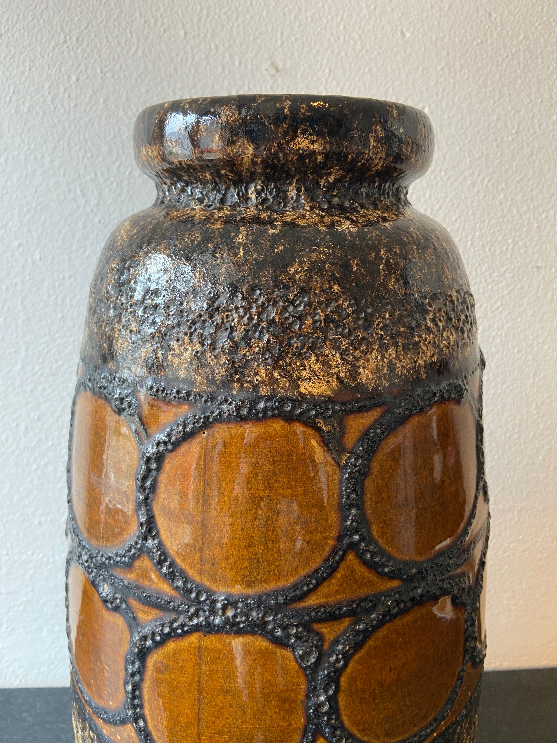 Werkelijk prachtige vloervaas van Scheurich! Uitgevoerd in zwart, zand en caramelkleurig keramiek met fat lava vormen. De vaas verkeert in goede staat. De vaas is gemerkt, maar dit is niet helemaal goed leesbaar.