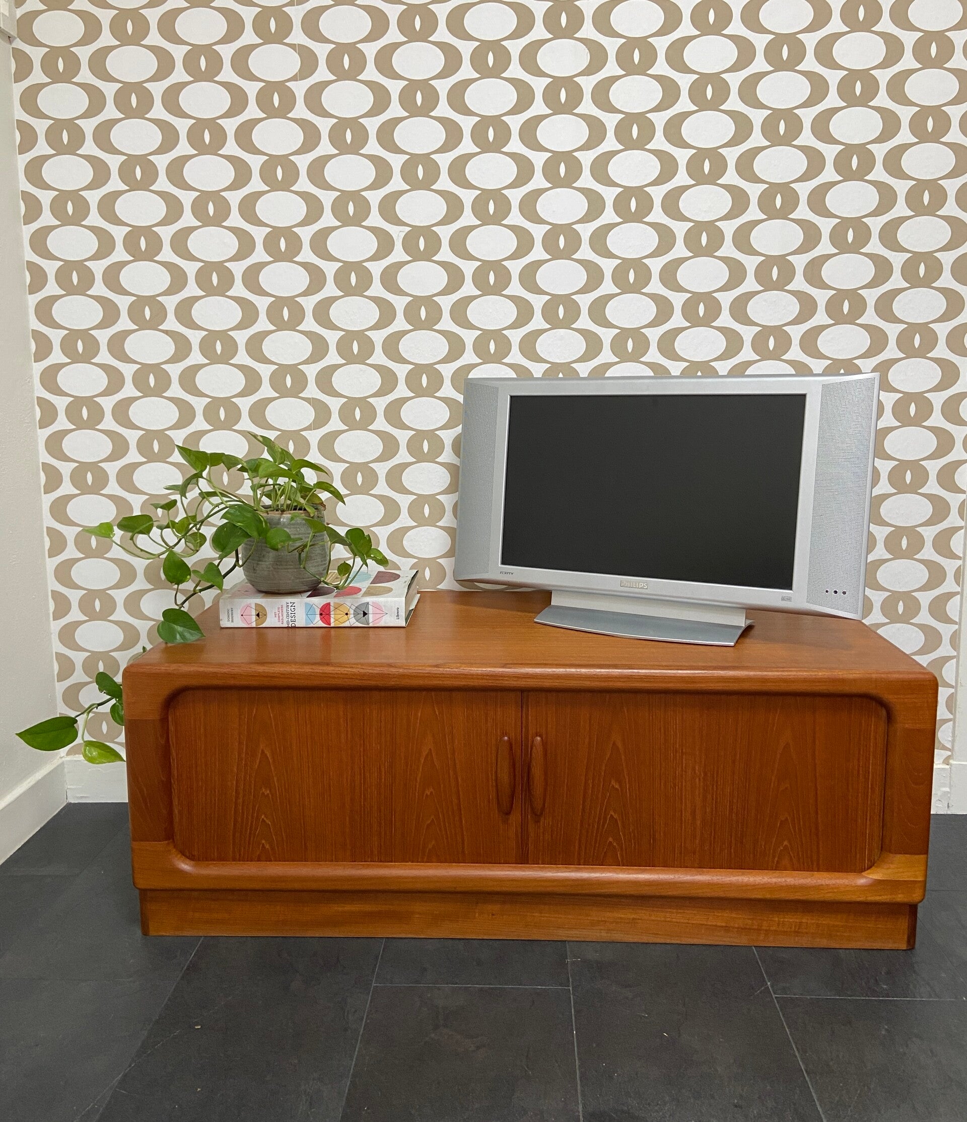 Vintage Deens lowboard/tv-meubel van Dyrlund met tambourdeuren