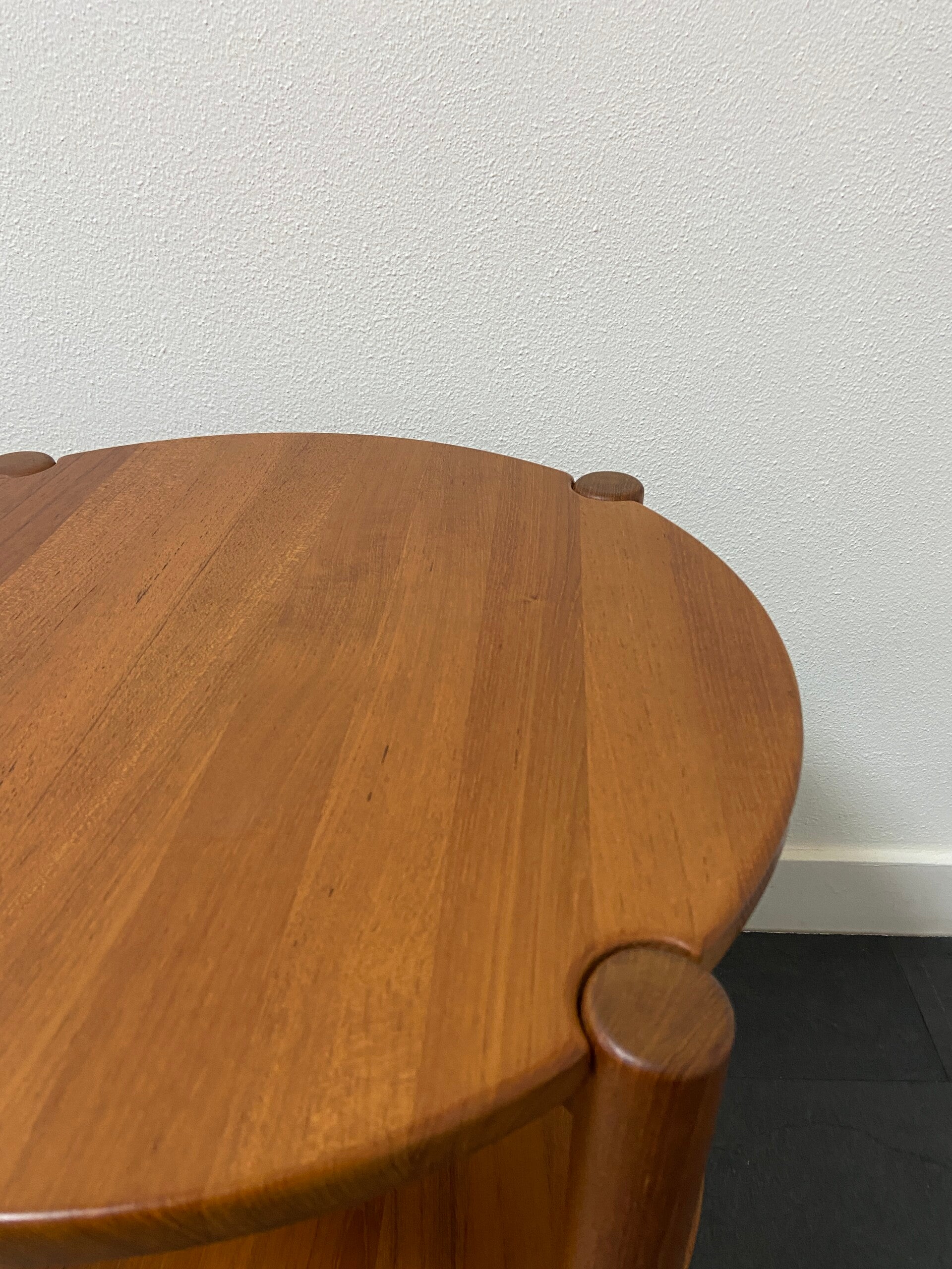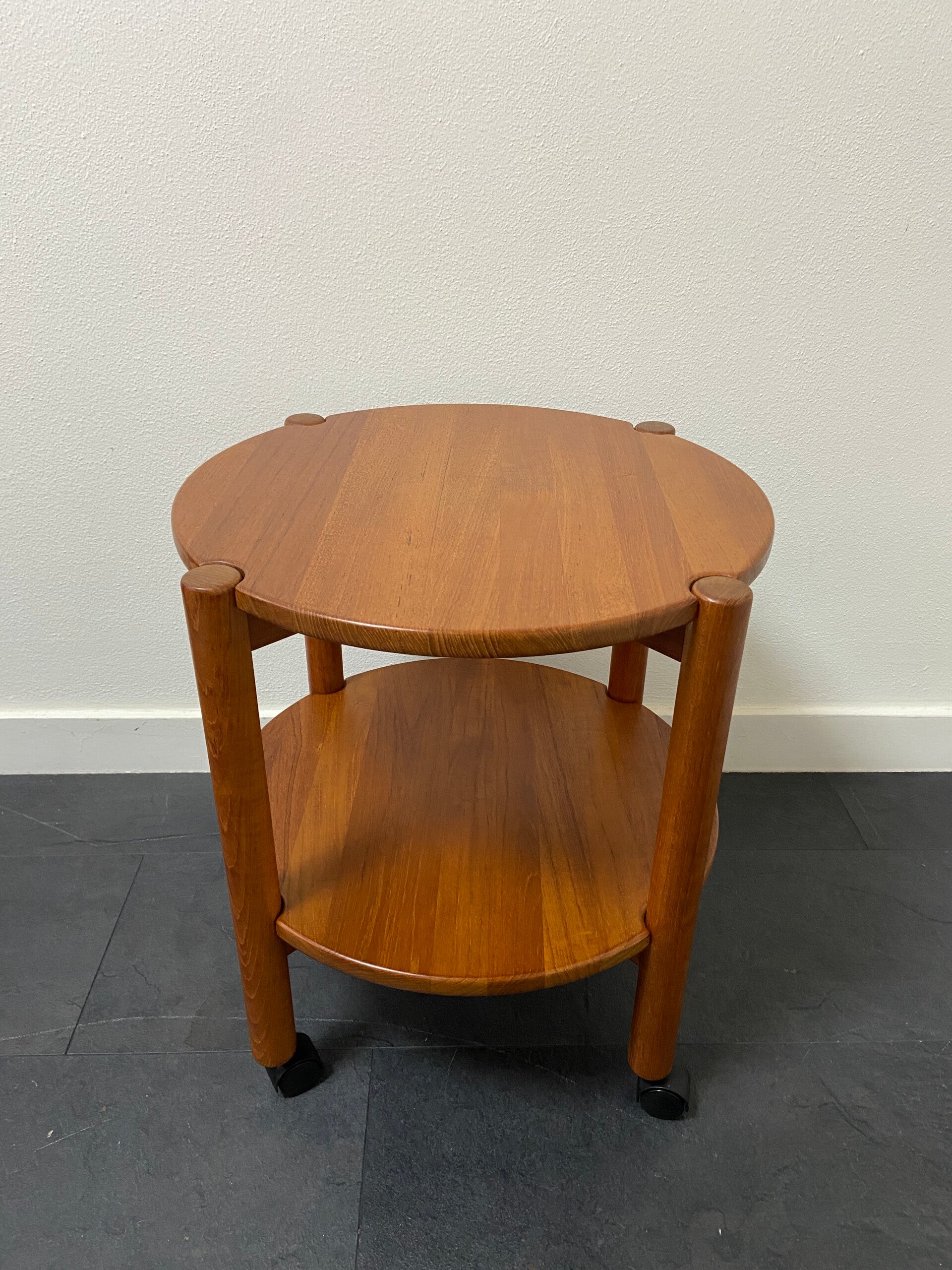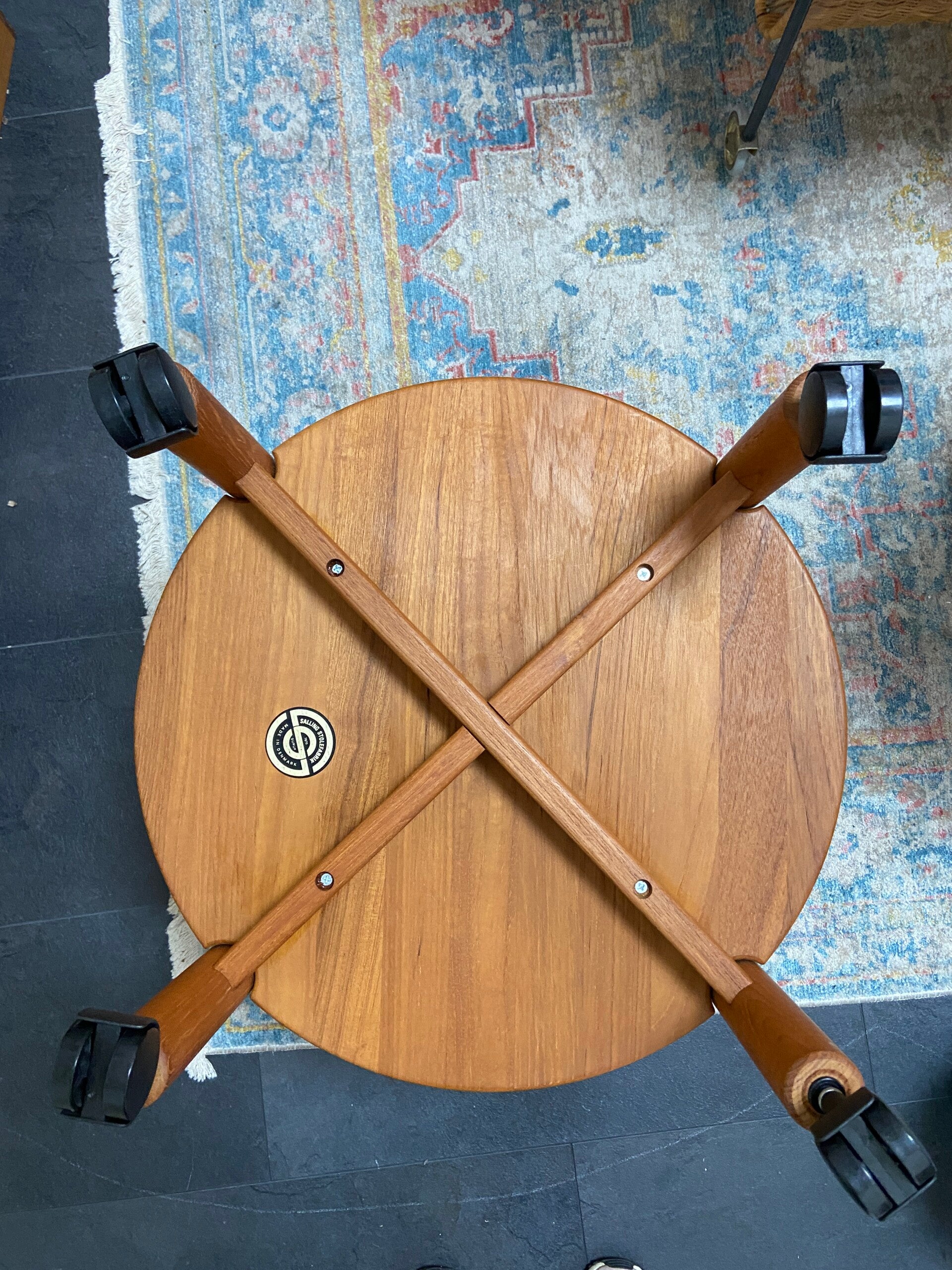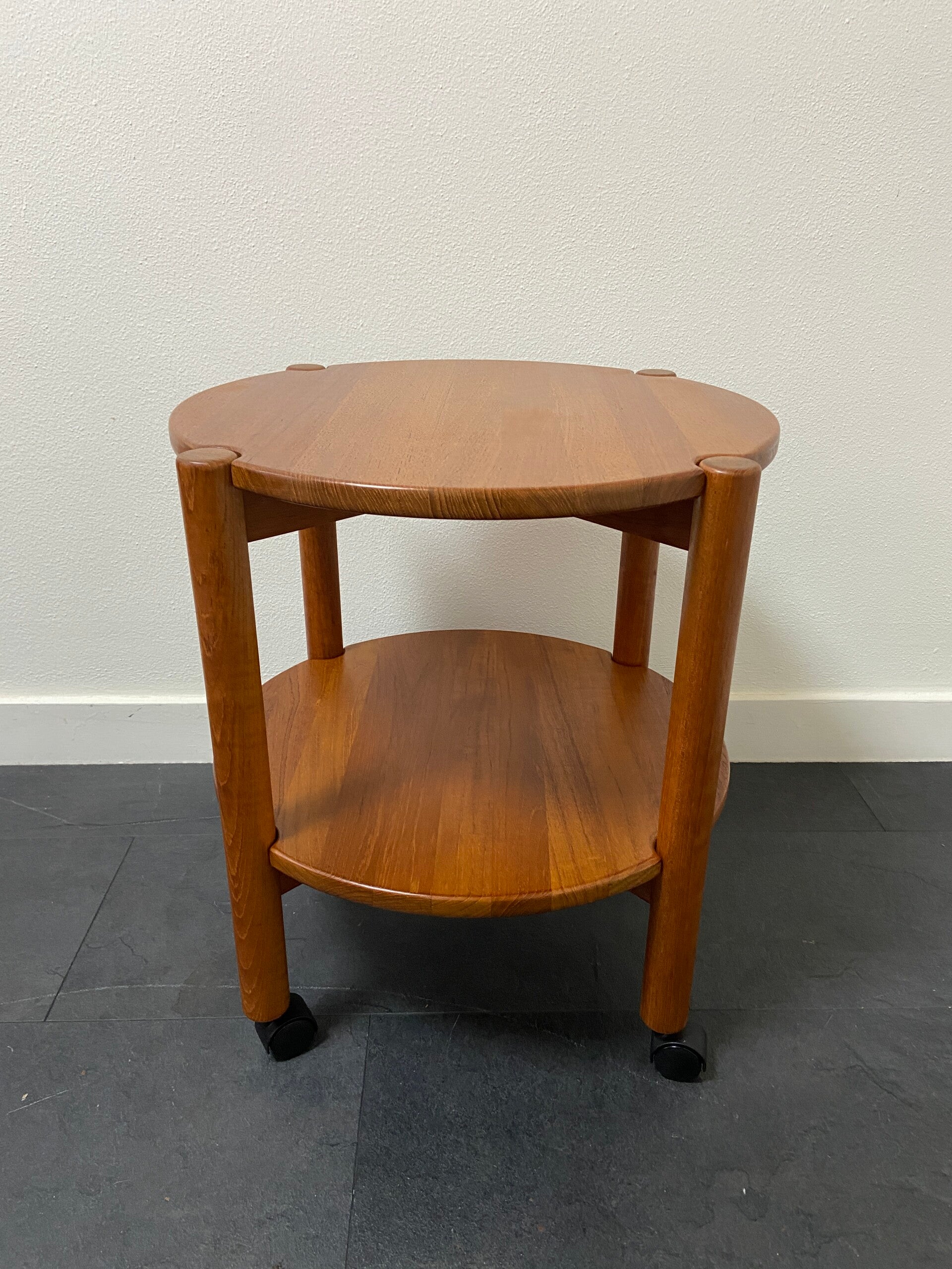Geweldige zware kwaliteitstafel van Salling Stolefabrik, Durup van massief teakhout.De tafel staat op soepellopende wielen en verkeert in uitstekende staat.