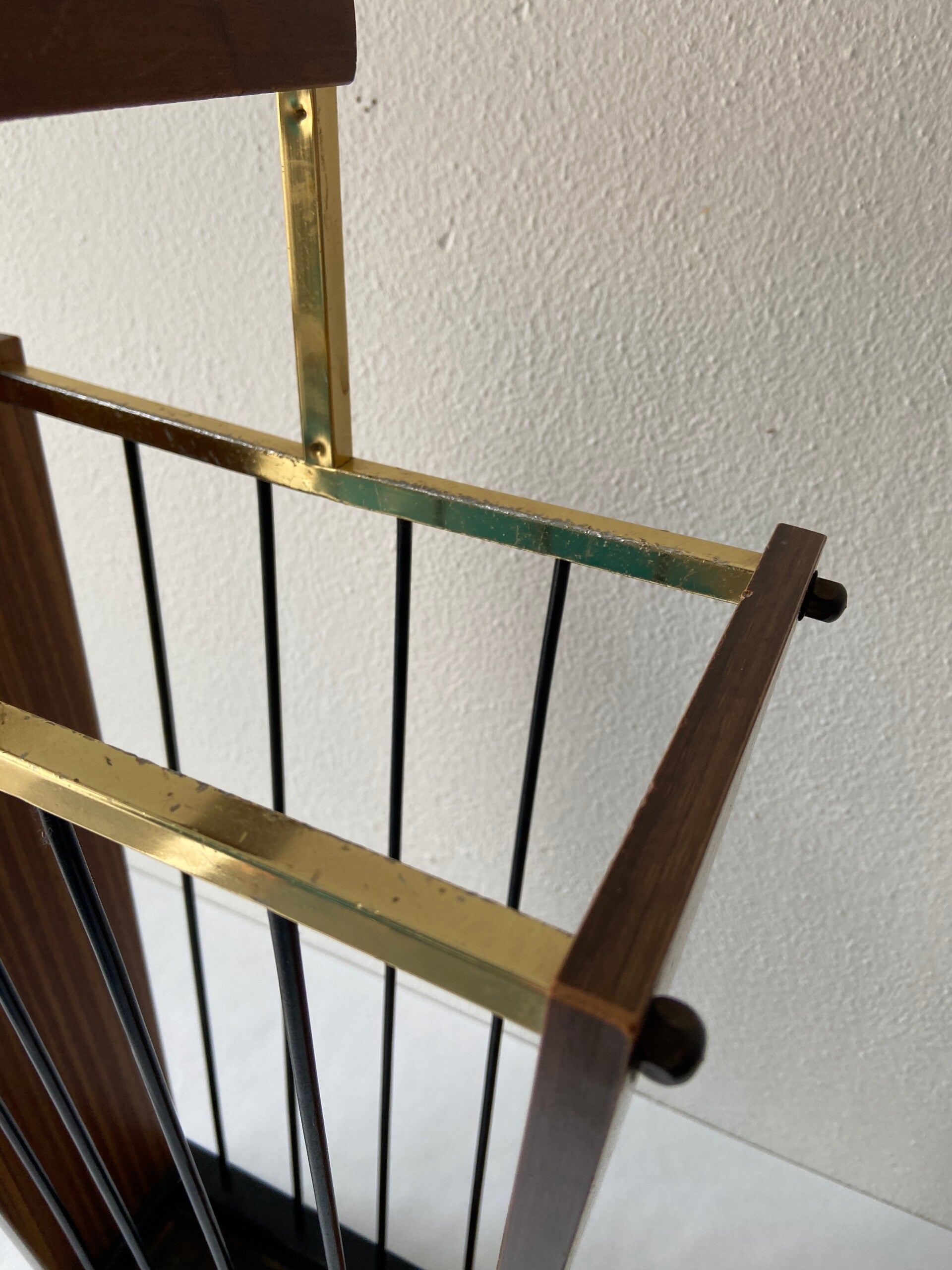 Vintage parapluhouder van teakfineer en messing frame
