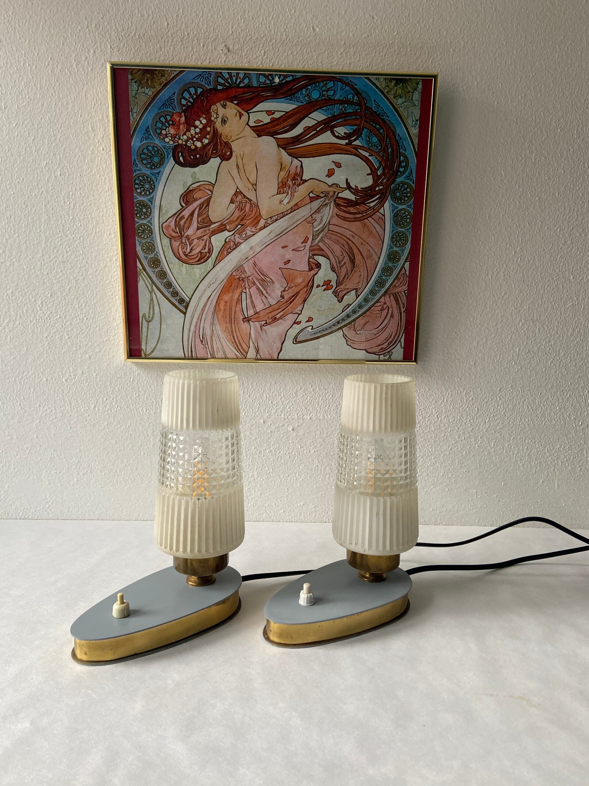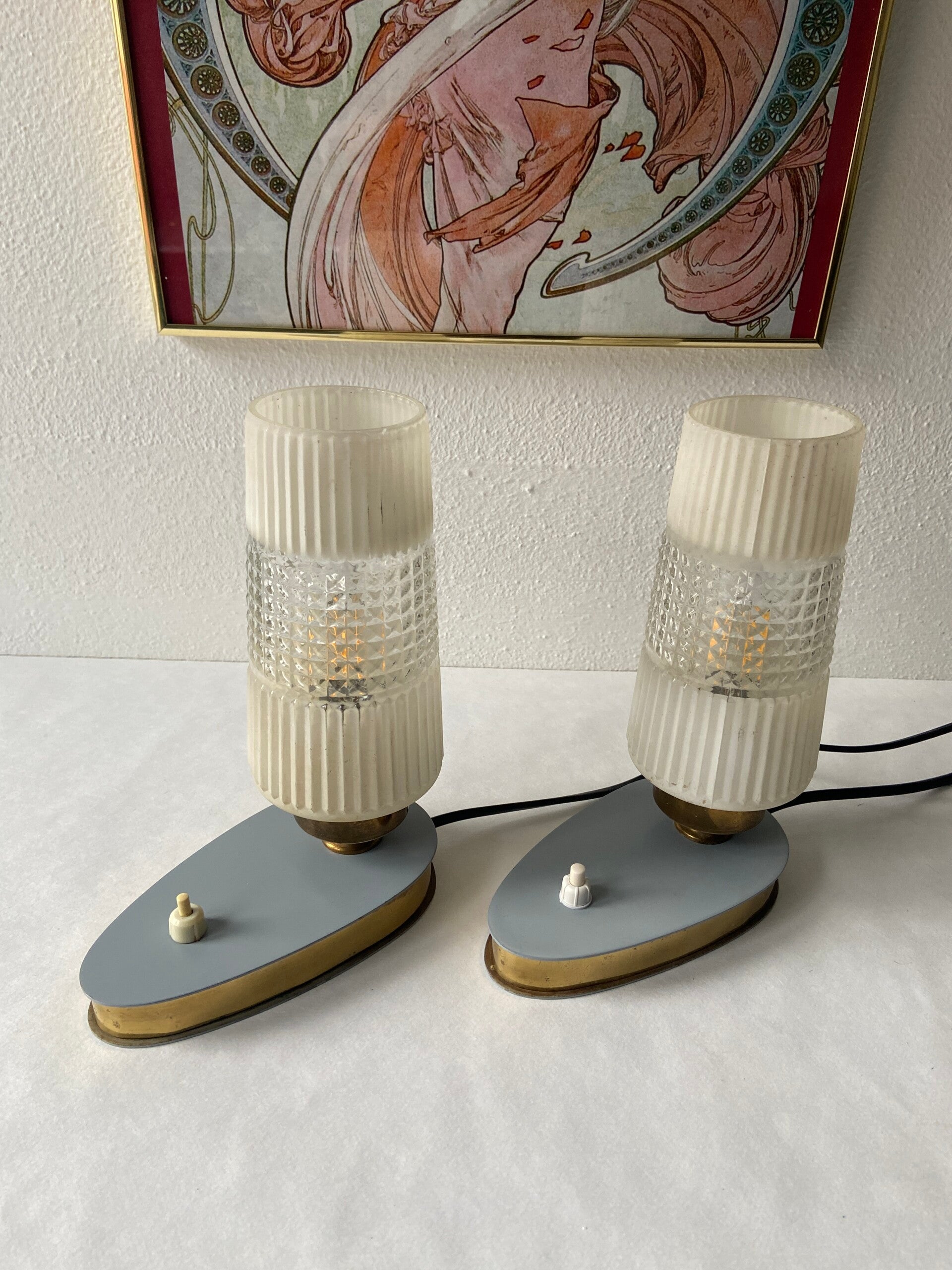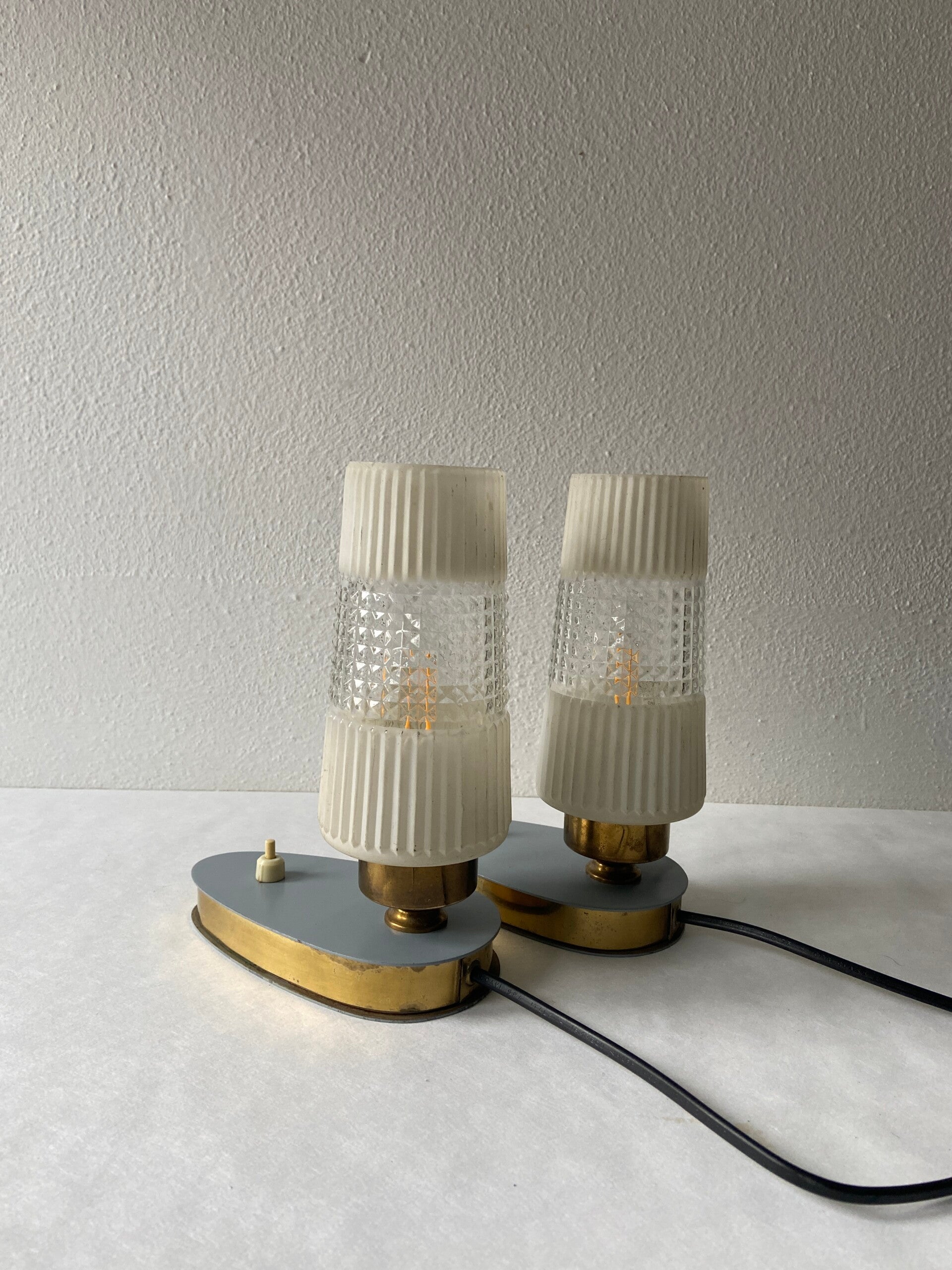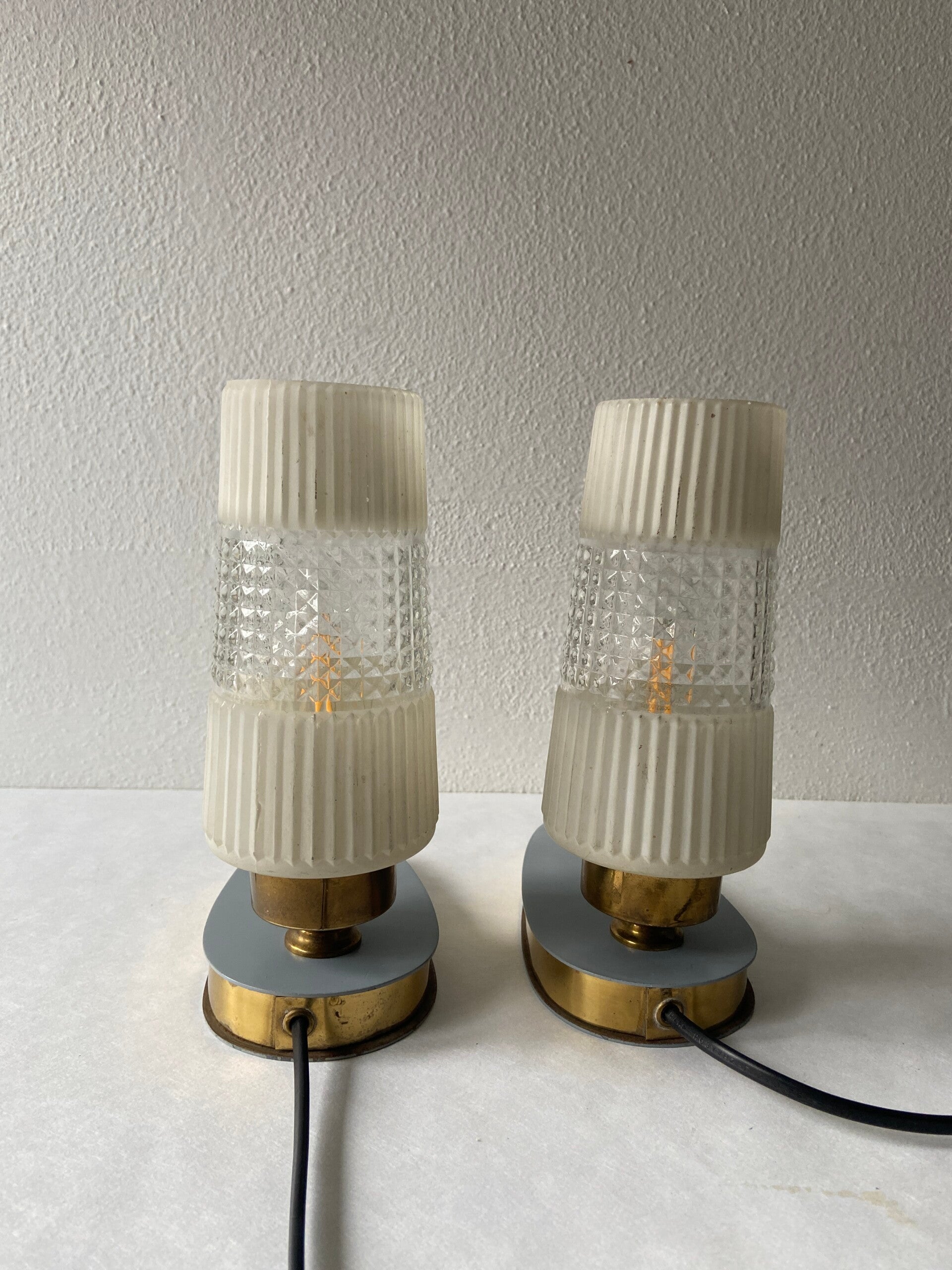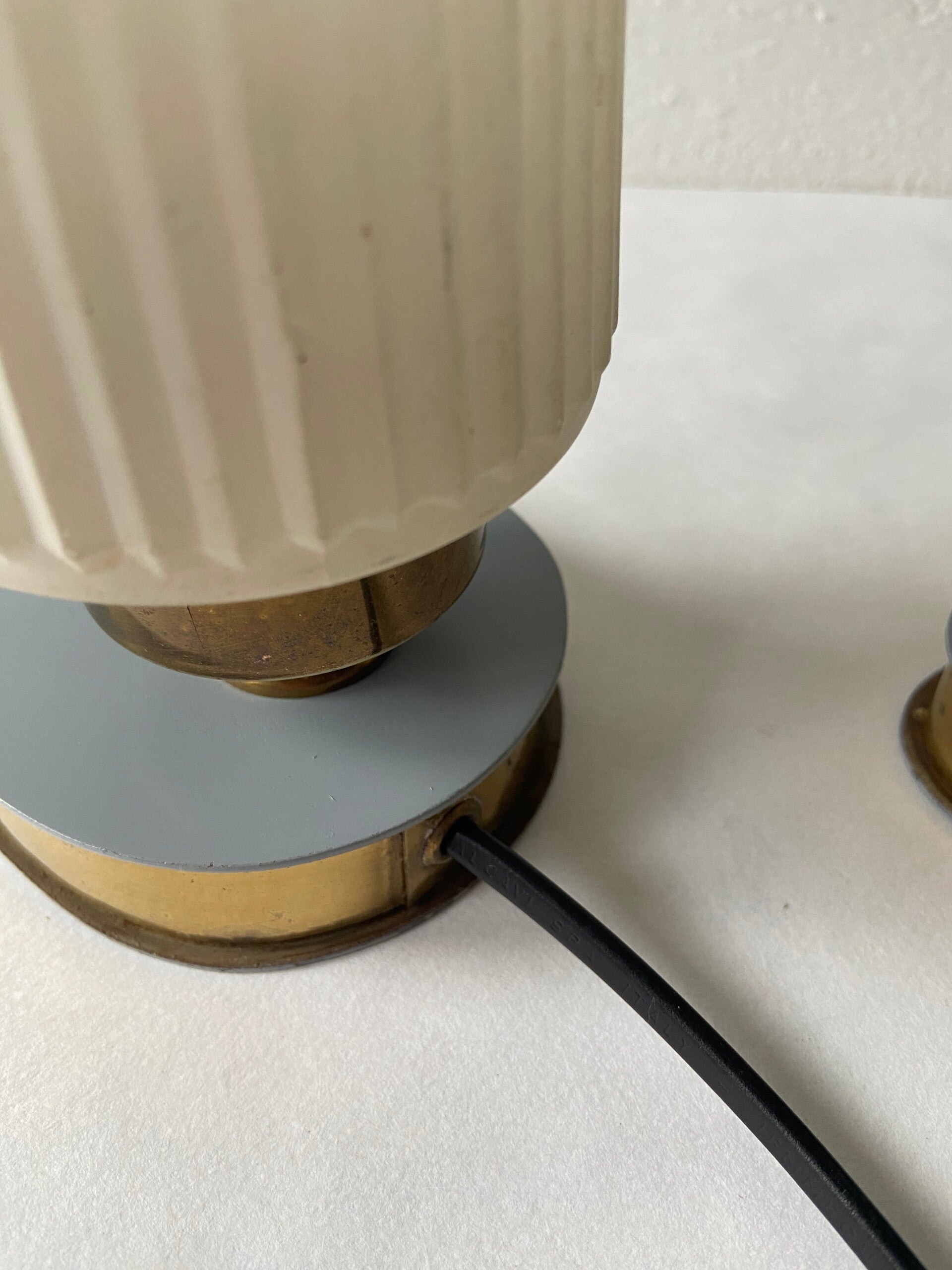 Set van 2 vintage bedlampjes met opaalglas kapjes en messing details