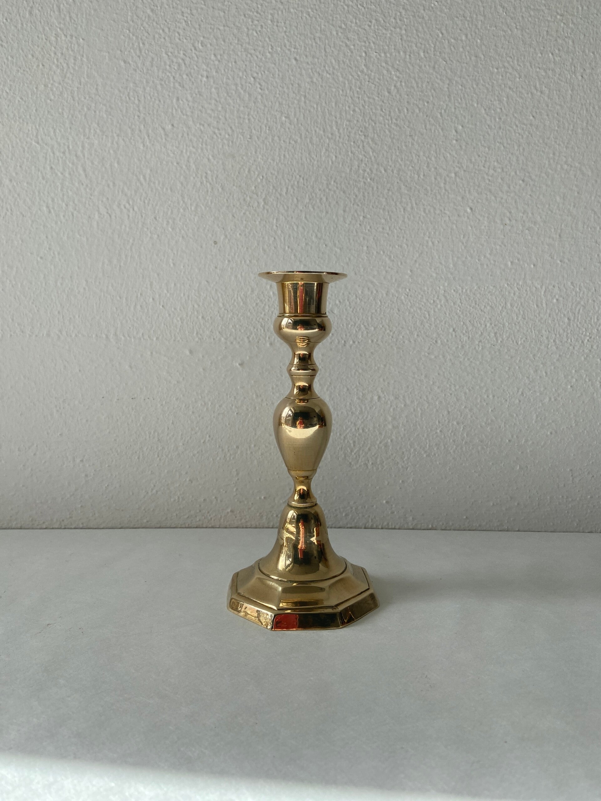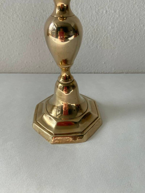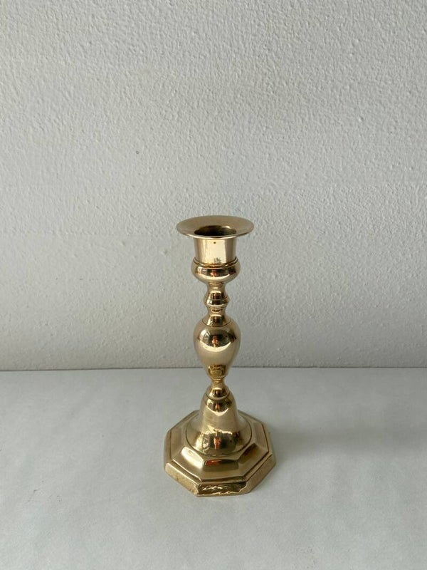 Vintage messing kandelaar met 8-kantige voet