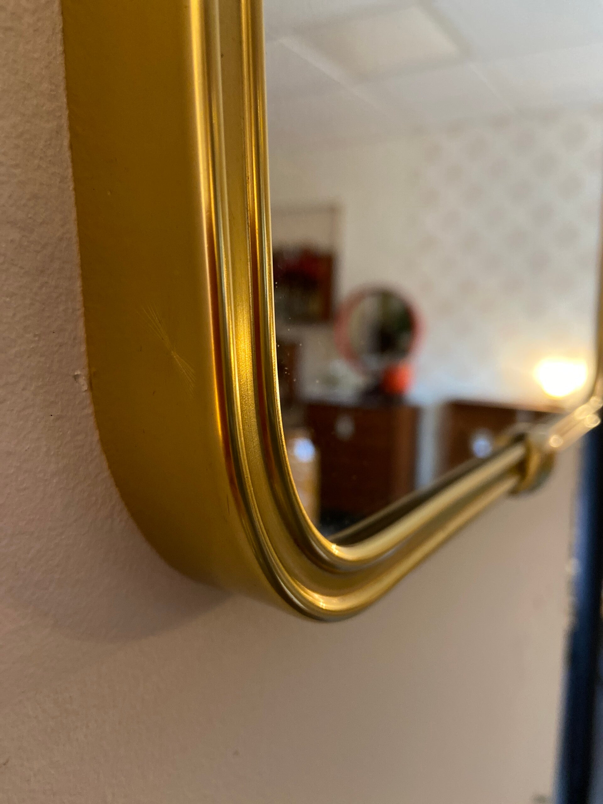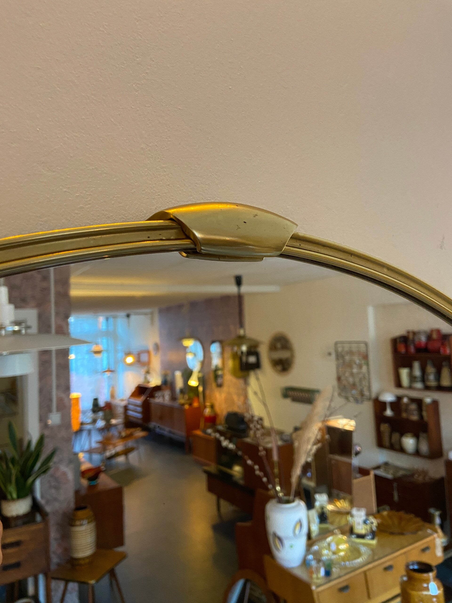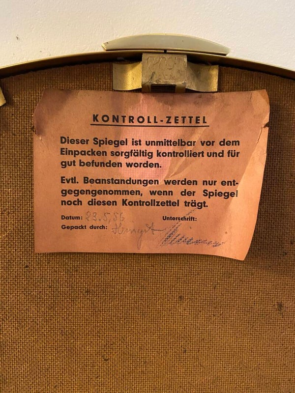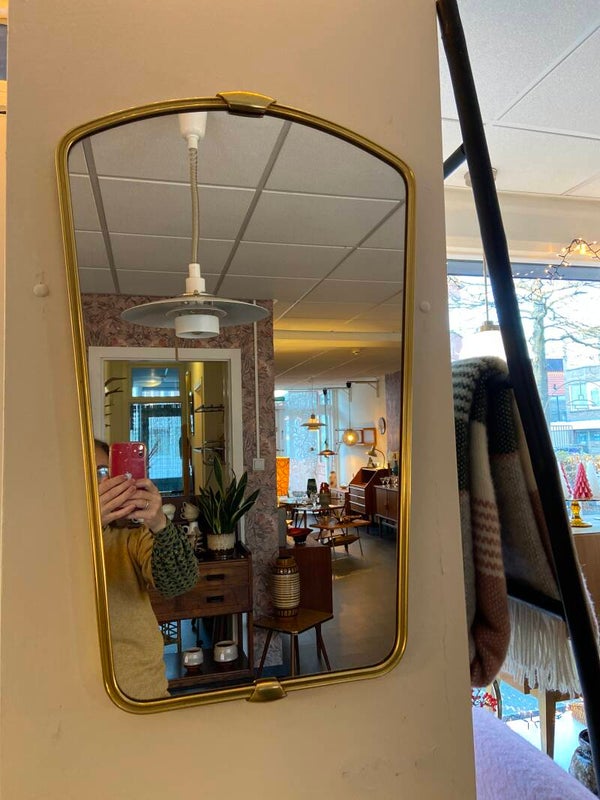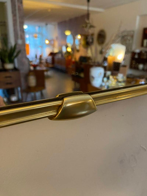 Prachtige messing spiegel van zware kwaliteit uit de jaren '50. De spiegel heeft een messing lijst met ingefreesde sierrand en 2 sierlijke sluitclips. De spiegel verkeert in zeer mooie staat.