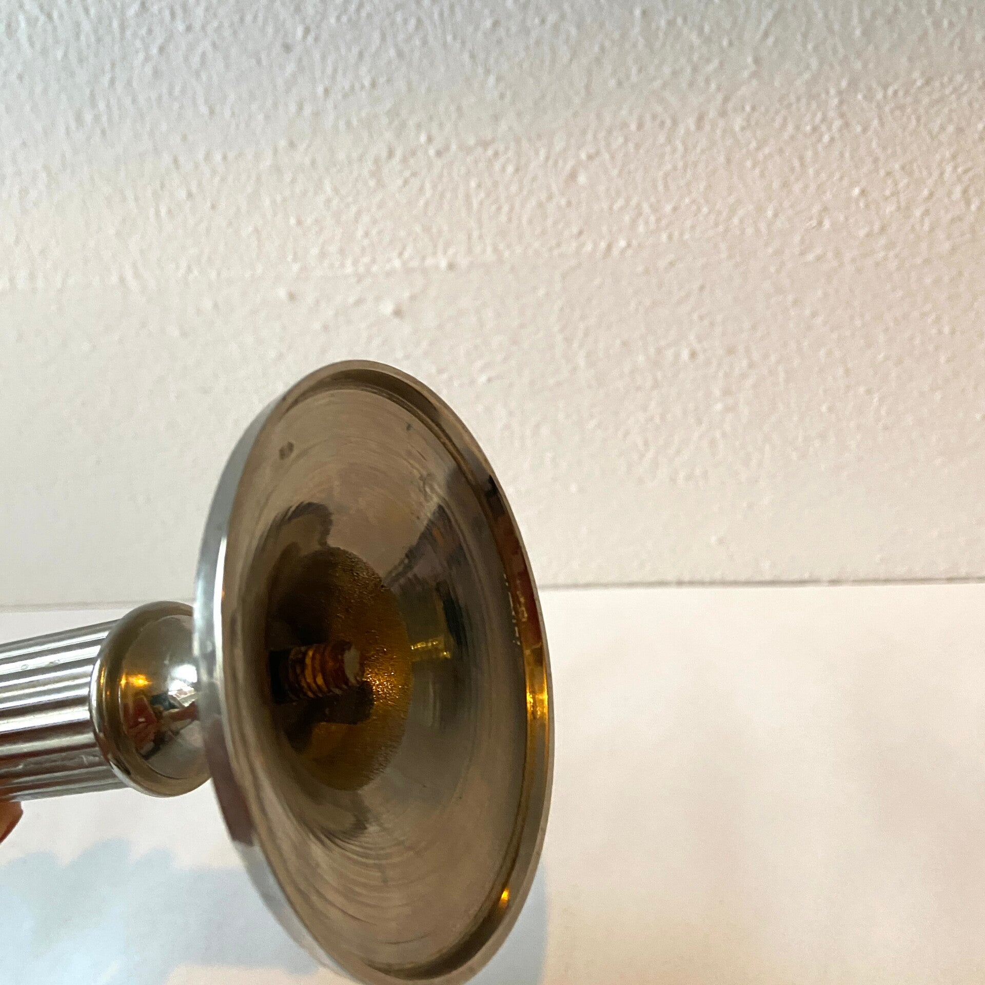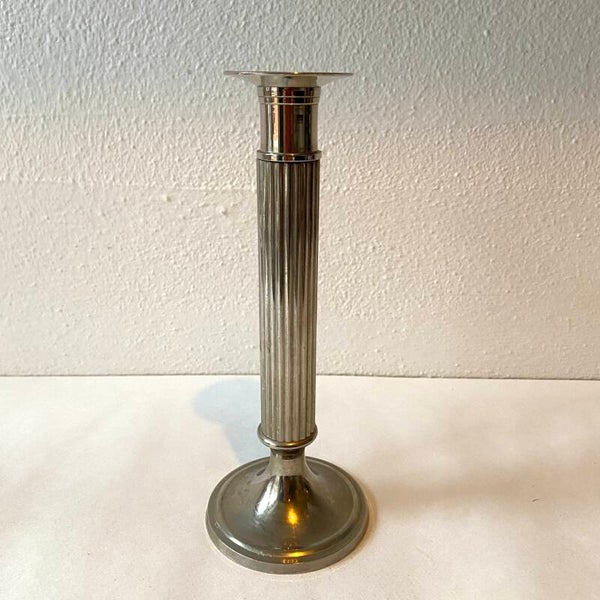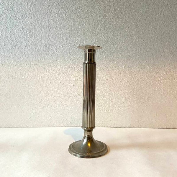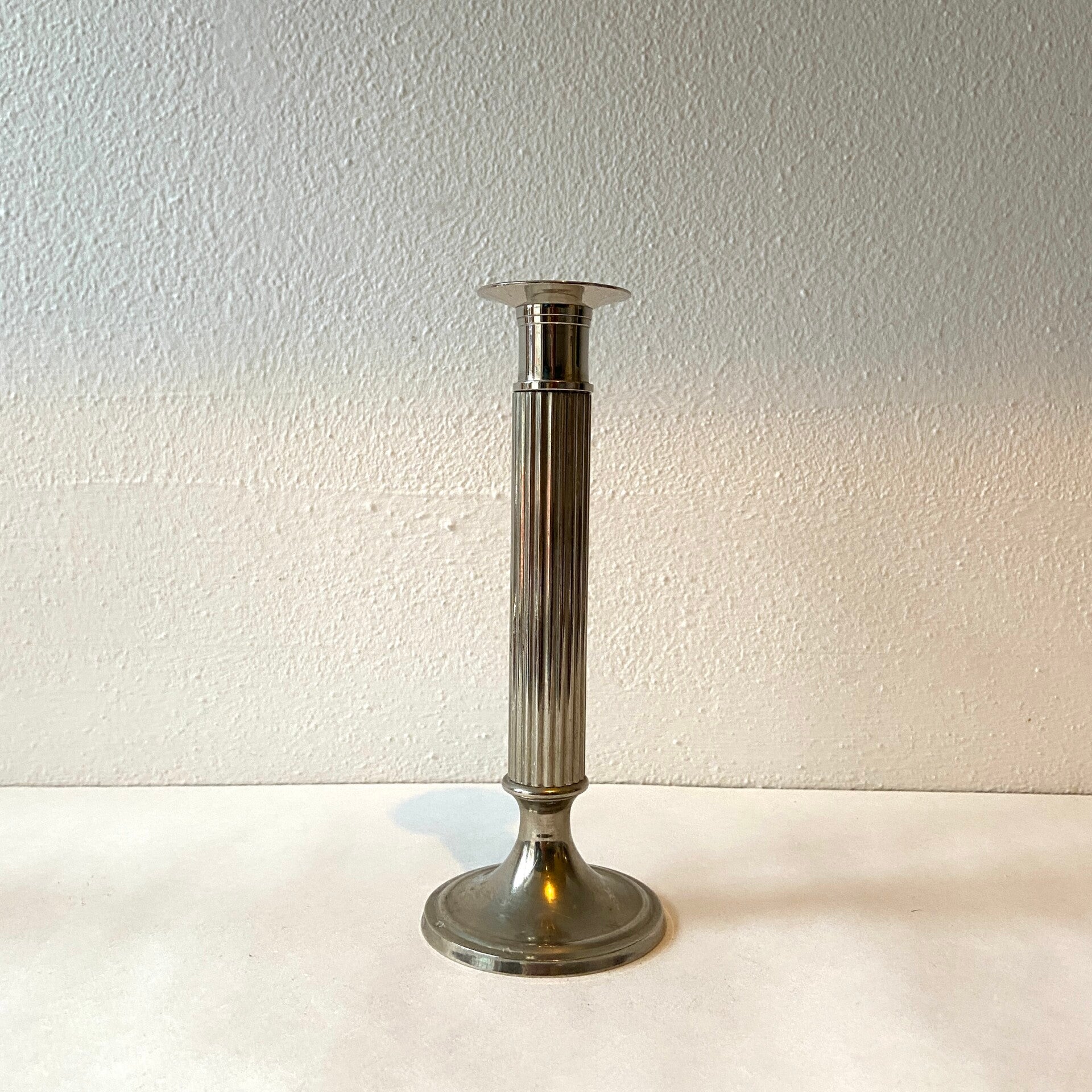 Bijzondere kandelaar met geribbelde zuilvormige steel.