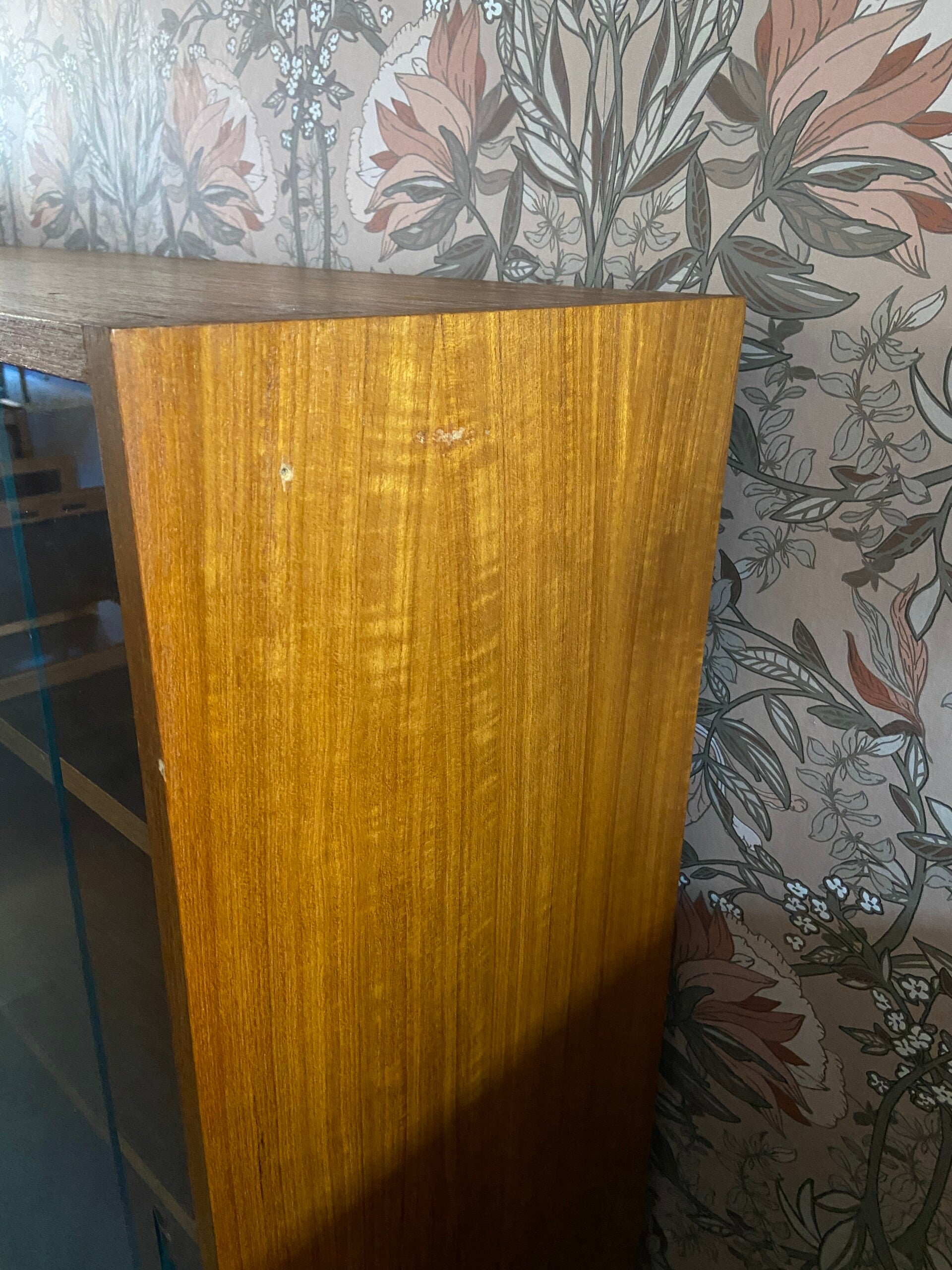 Vintage Deense vitrinekast met 2 schuifdeuren