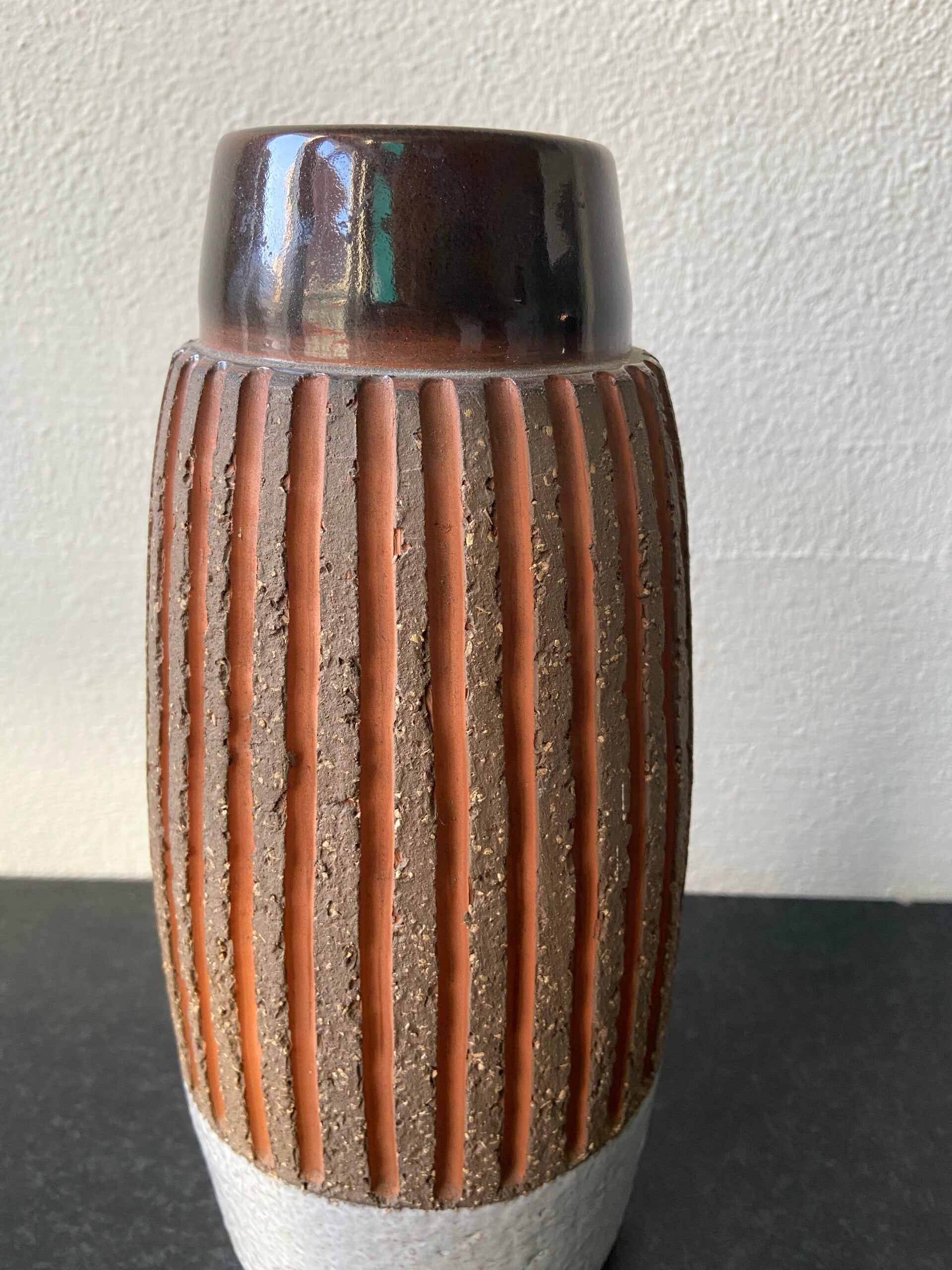 Bijzondere Deense vintage vaas in een combinatie van zowel mat als geglazuurd aardewerk. De conditie van de vaas is goed.