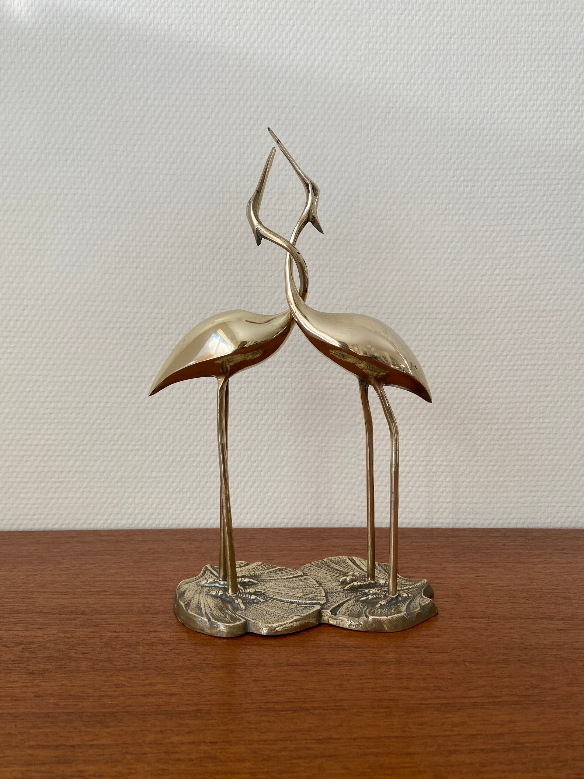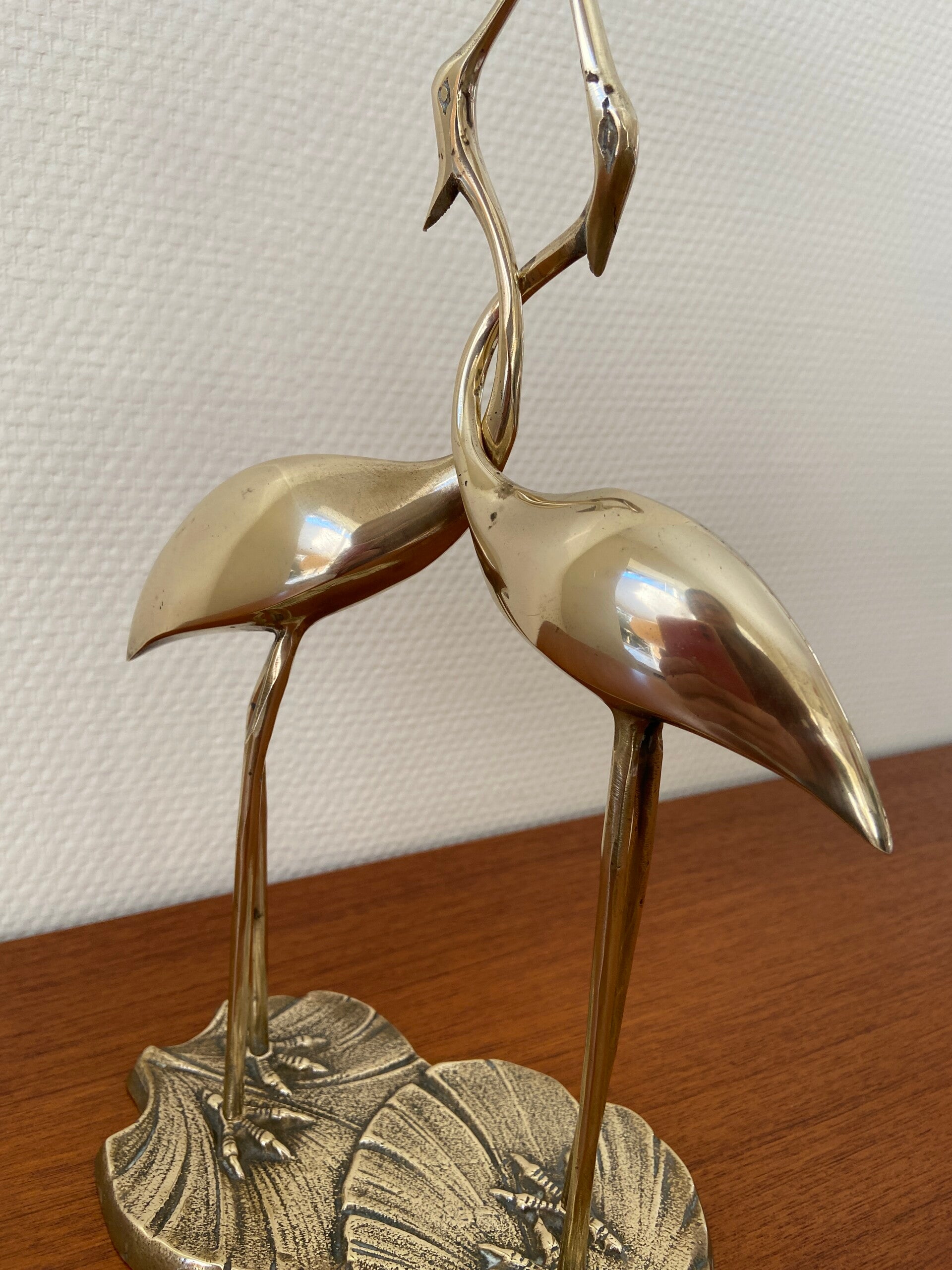 Set van 2 messing kraanvogels in omhelzing (nr.5), H31 cm