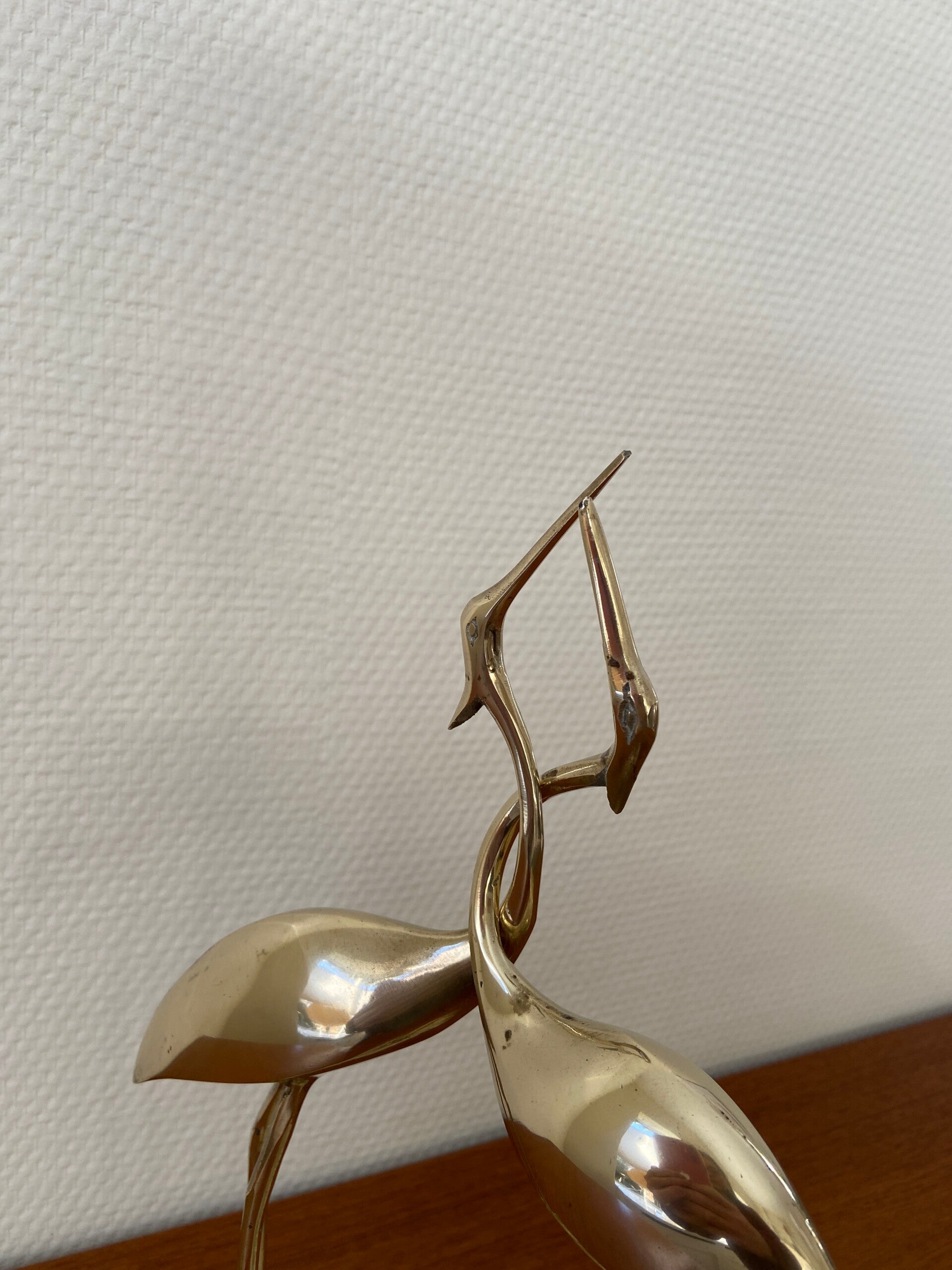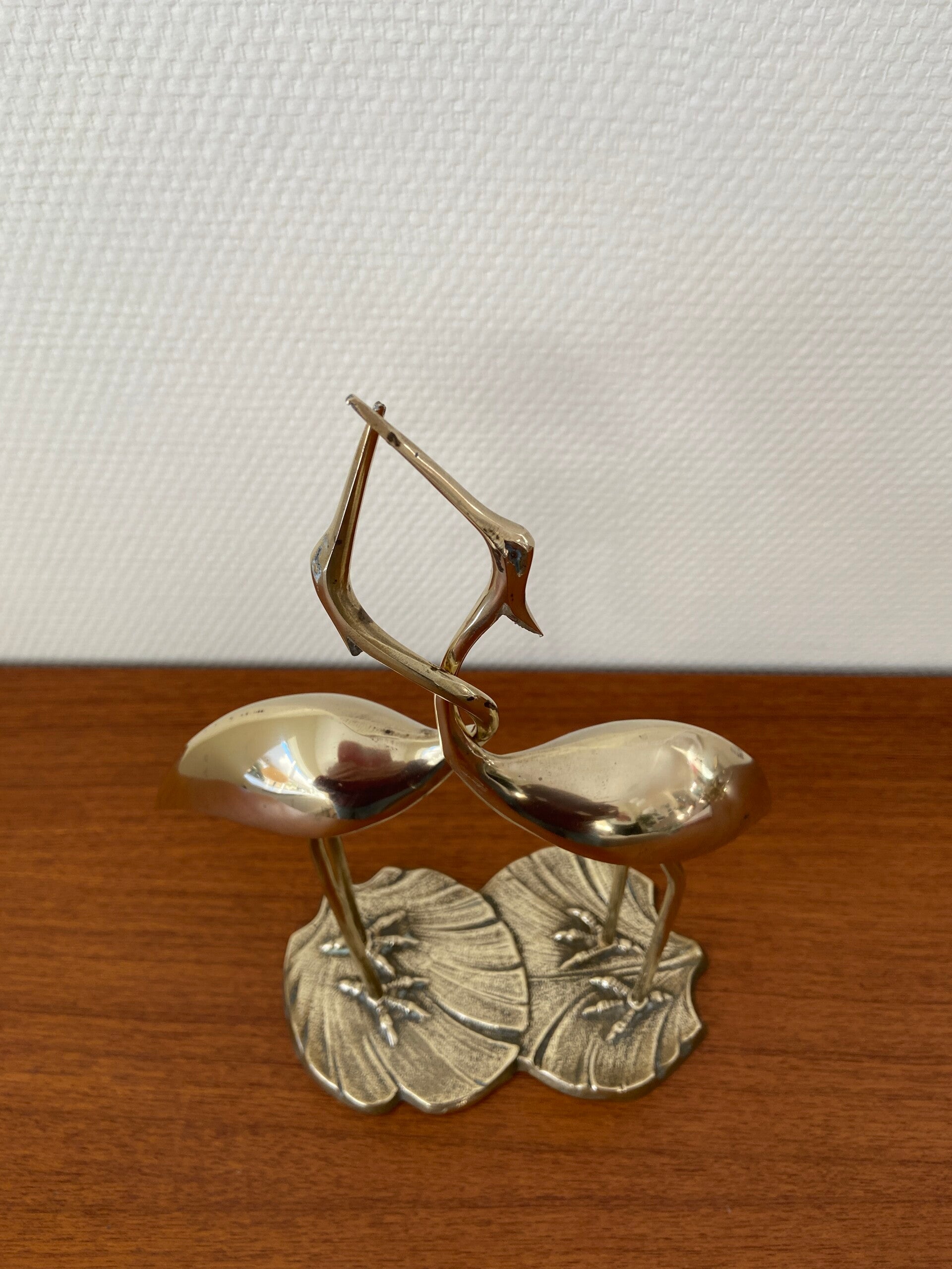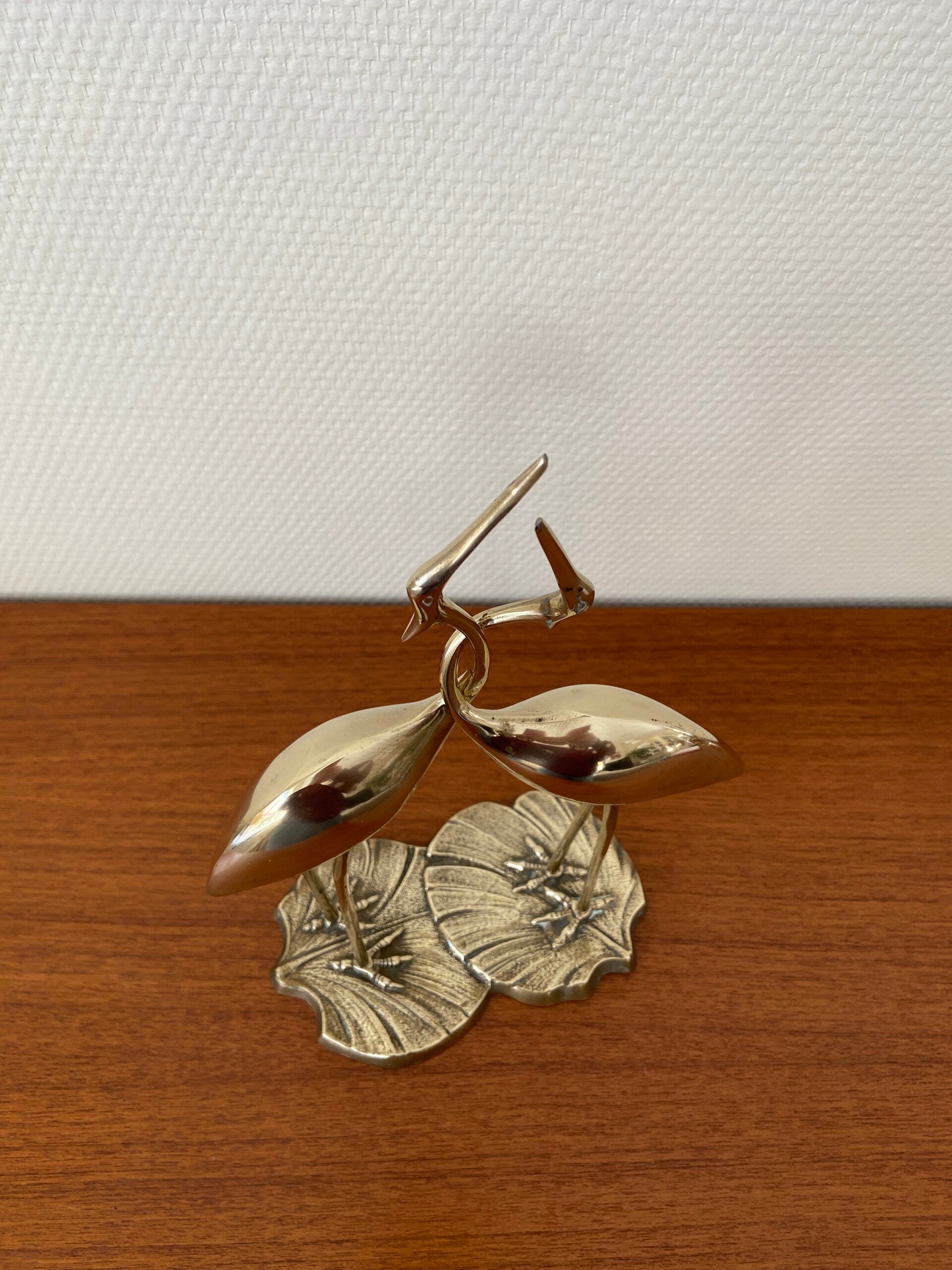 Geweldige set van 2 (vastzittende) messing kraanvogels in omhelzing. Een mooi cadeau voor bijvoorbeeld een huwelijk.