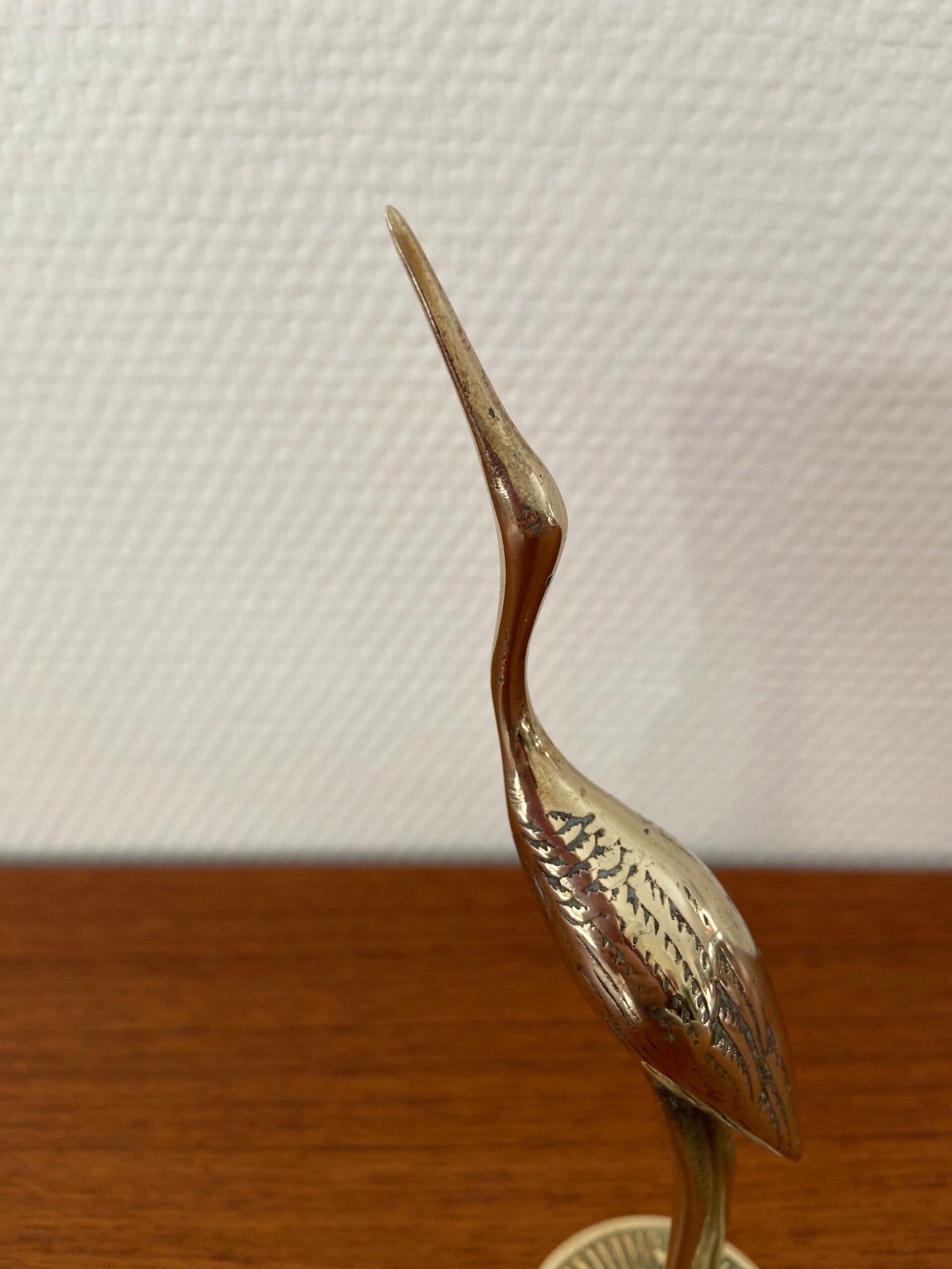 Messing kraanvogel met bewerkte vleugels en voet (nr. 13)