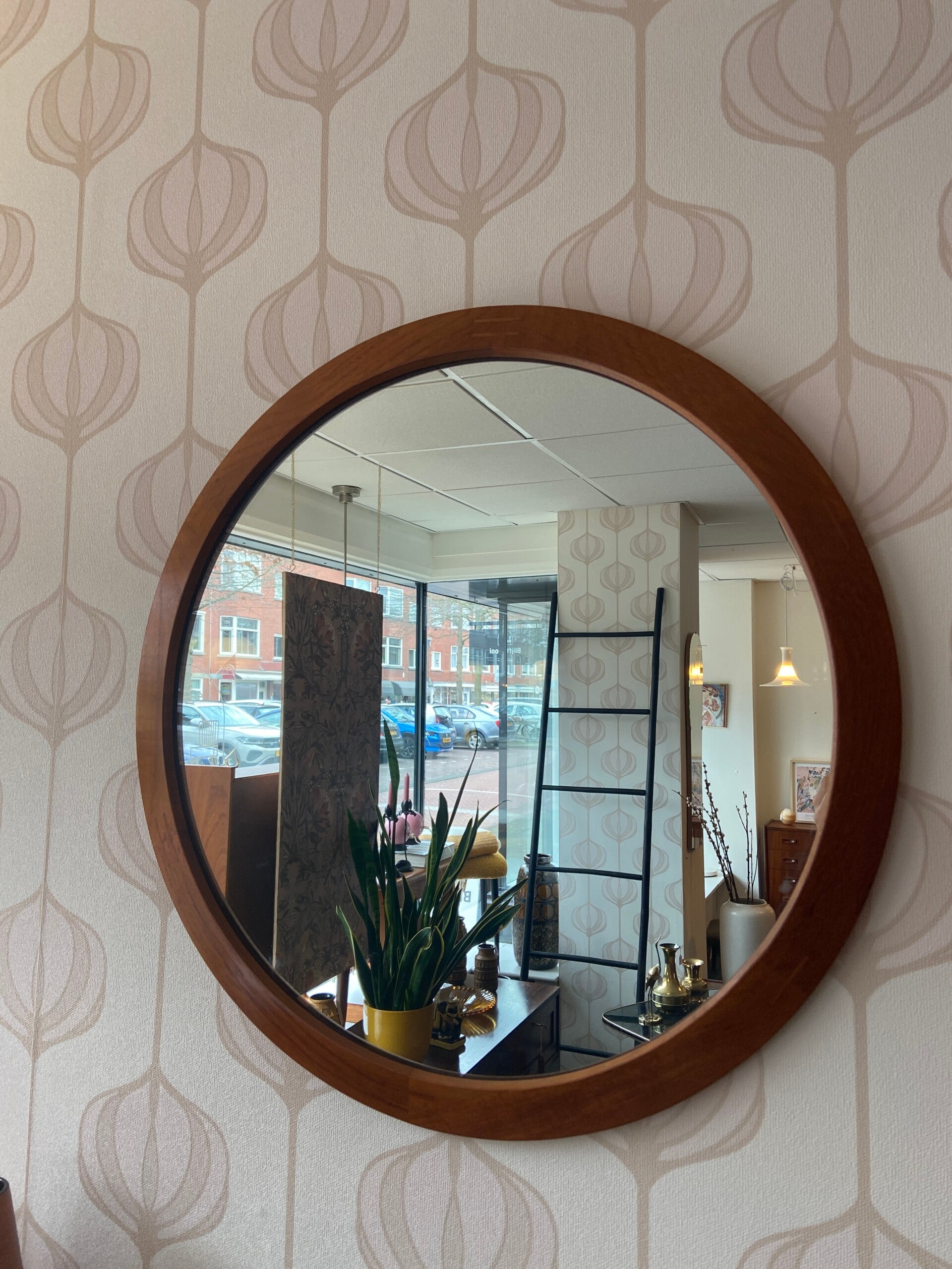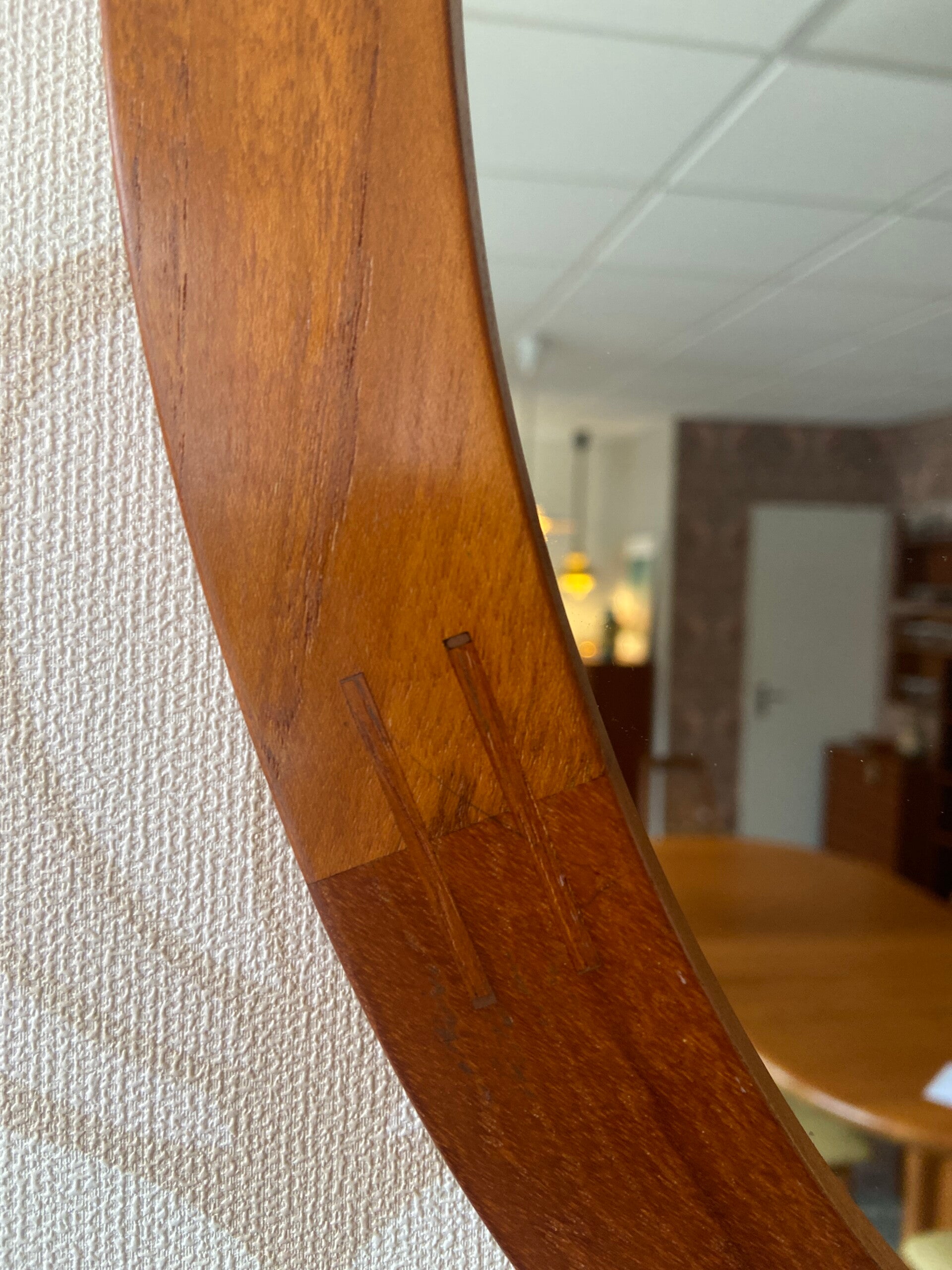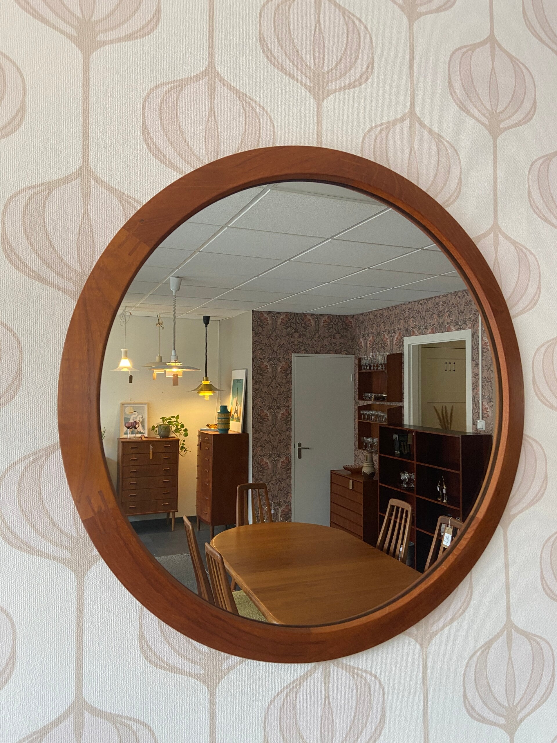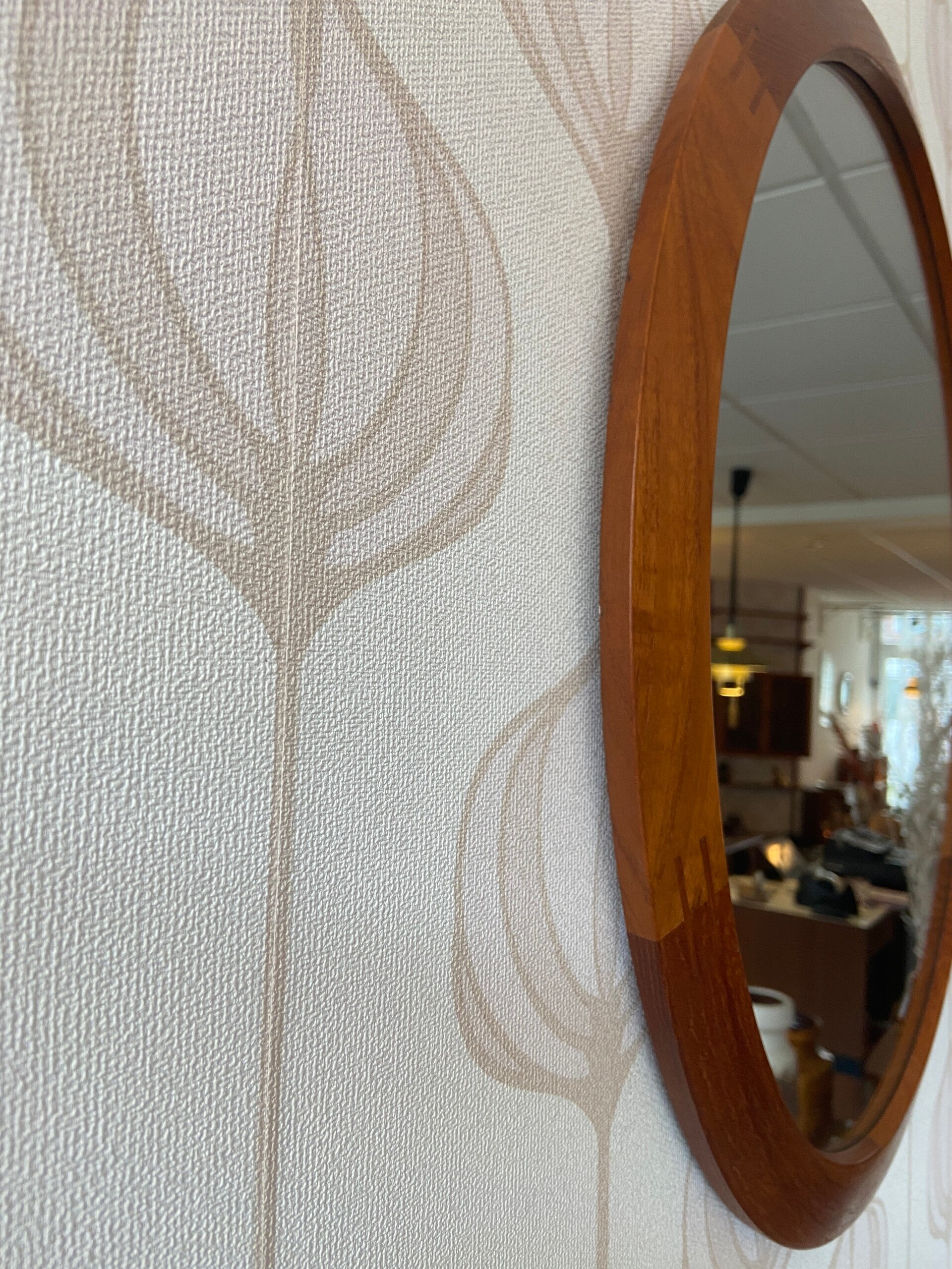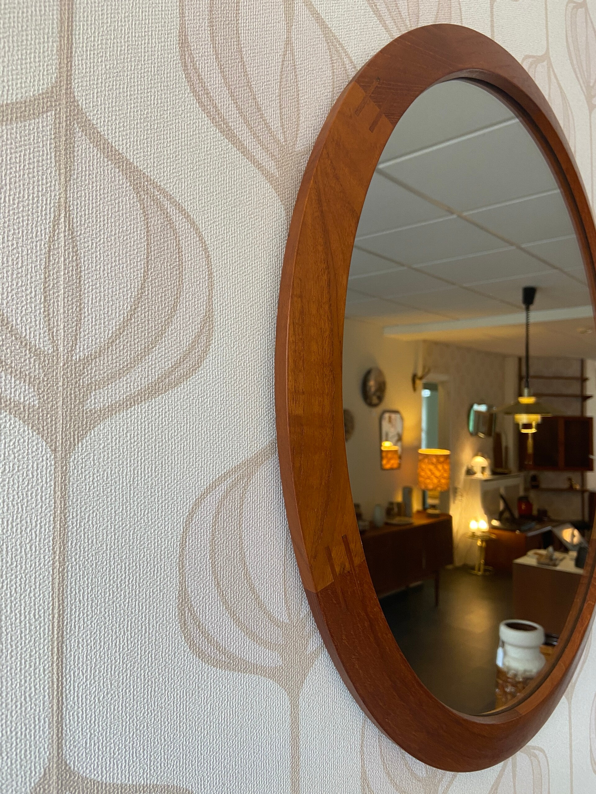 Designspiegel van Aksel Kjersgaard, model 280, voor Odder, jaren '60. De spiegel is uitgevoerd met een teakhouten lijst. Dit model heeft kenmerkende houtverbindingen waaruit het ambachtelijke vakmanschap blijkt. De spiegel verkeert in mooie staat.