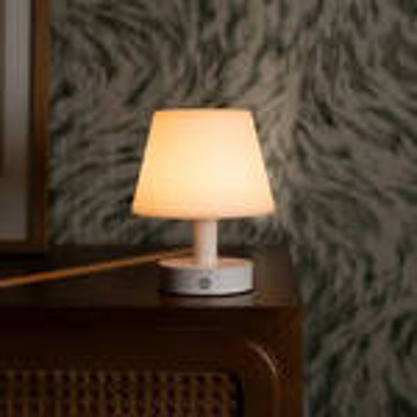 Houten oplaadbare tafellamp wit met witte kap van Tavellio (nieuw)
