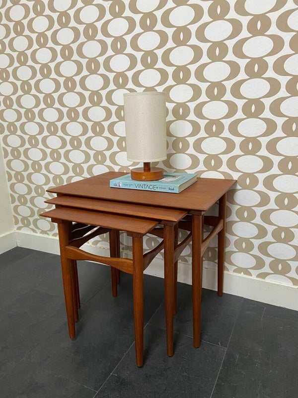 Set van 3 vintage bijzettafels/mimiset van teakhout