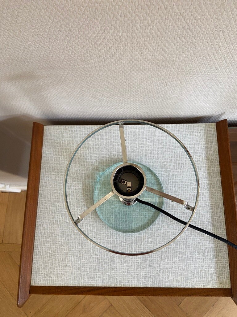 De lampvoet en houder zijn gemaakt van glas met metalen onderdelen en de kap is van opaalglas. De conditie van de lamp is uitstekend.