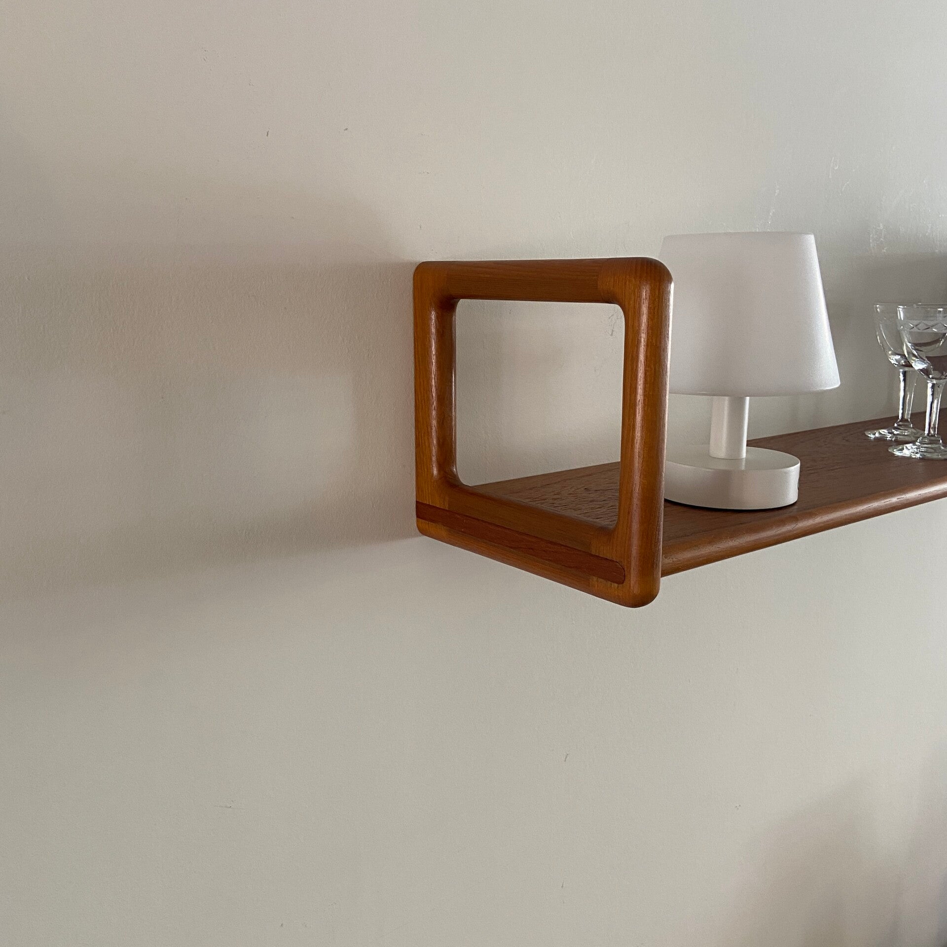 Zeer mooie zwevende wandplank van Dyrlund in teakhout! De plank verkeert in topstaat.