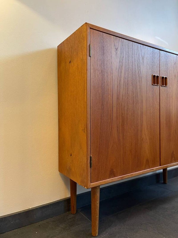 Dit soort mooie drankenkastjes kom je niet vaak tegen! Een strak vormgegeven kastje in teak met verlichting en spiegelwand aan de achterzijde waardoor je mooiste glazen en lekkerste dranken nog beter uitkomen! Let ook op de handgreepjes en de mooie tekening in het houtfineer Een geweldige eye-catcher in de woonkamer, maar dit kastje komt door zijn compacte formaat en geringe diepte ook prima tot zijn recht op andere plekken zoals de hal of de slaapkamer.